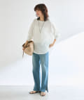 長めのレングスで履くとフレアシルエットような見え方になります。