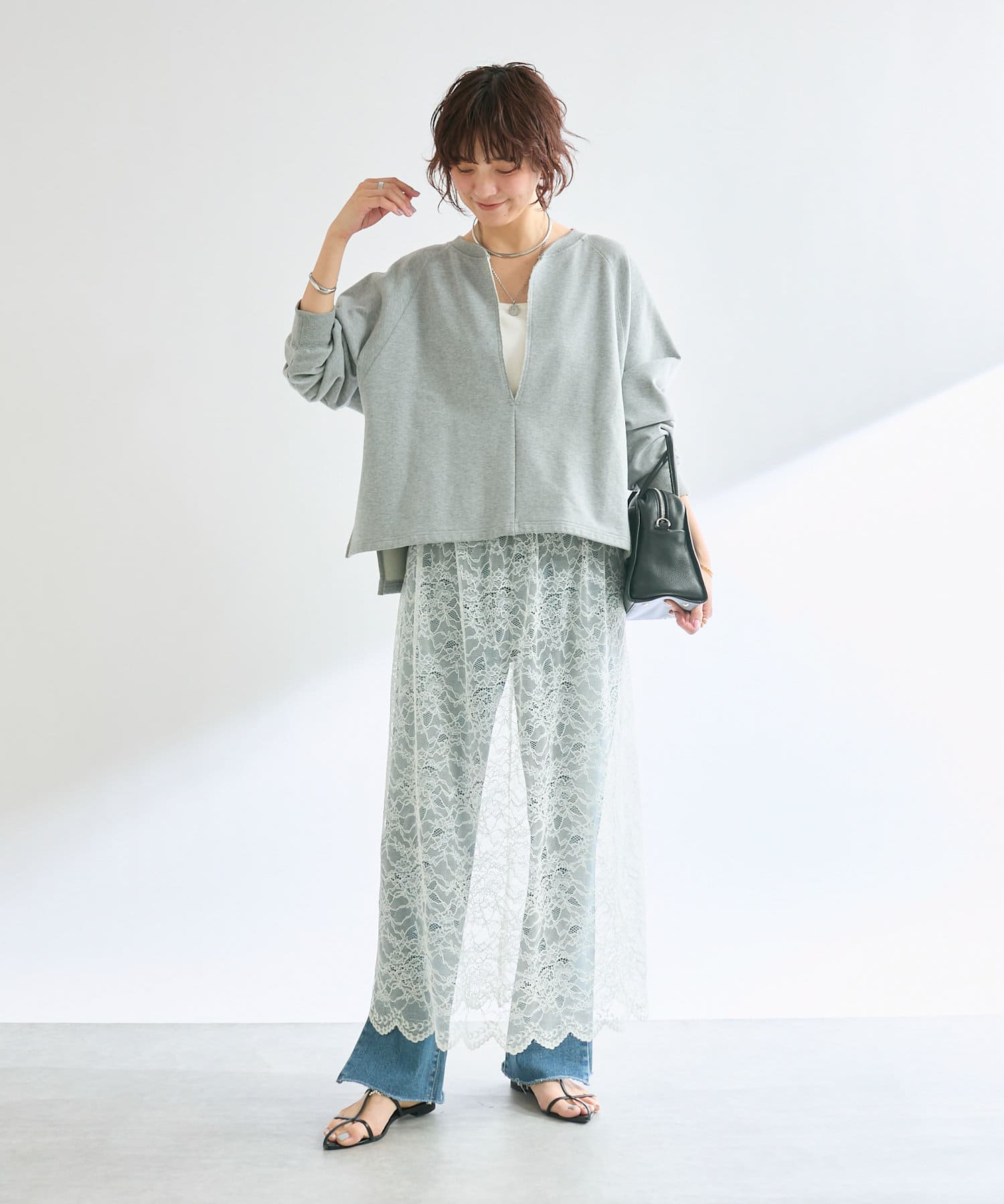 ヒップから太ももにかけては身体にフィットし膝から下にかけては裾のスリットによりすとんと落ち感のでるシルエットに。