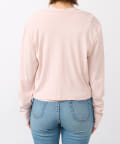 すっきりとした長めの長袖、ざっくりと空いたVネックでカットソーながらもラフな印象にならないデザインに。