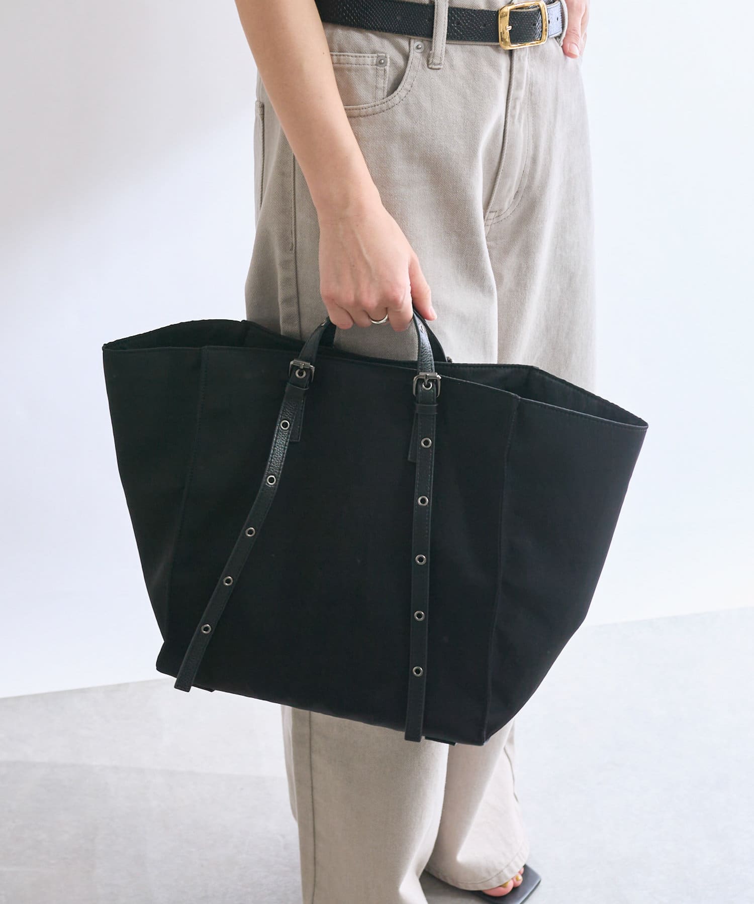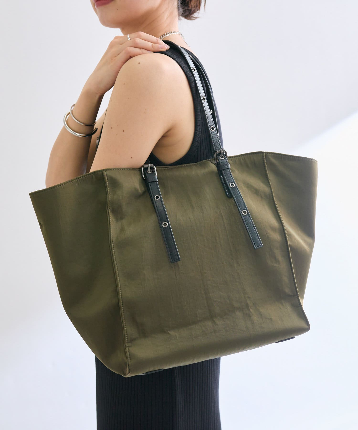 荷物の量やスタイリングに合わせてシルエットを変えられるデザインです。
