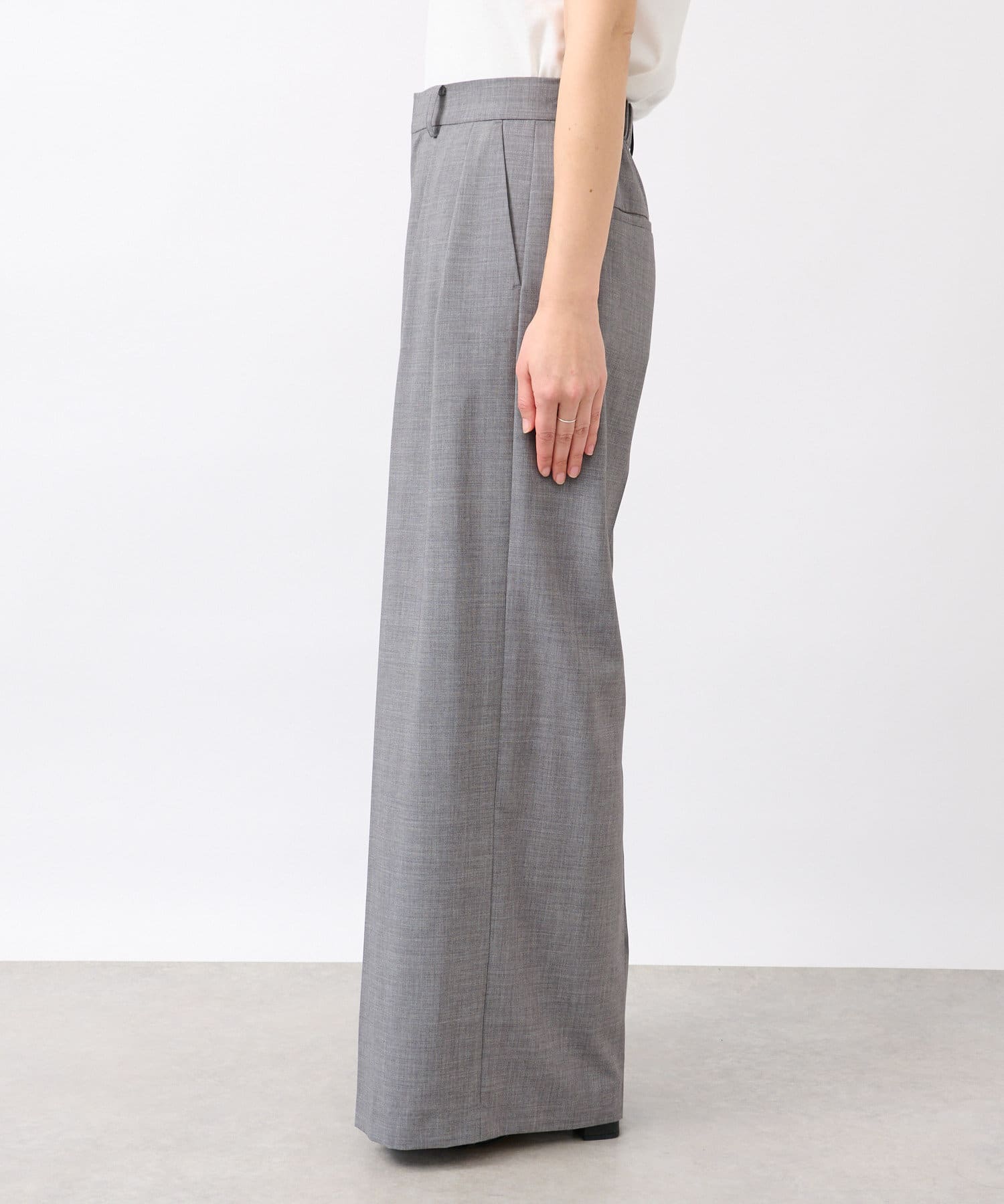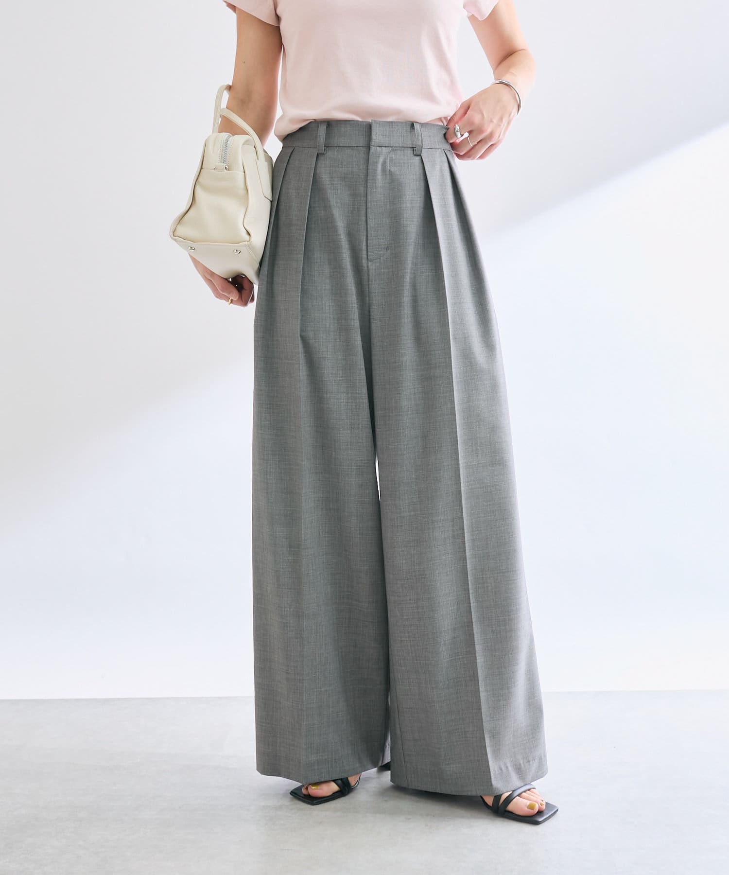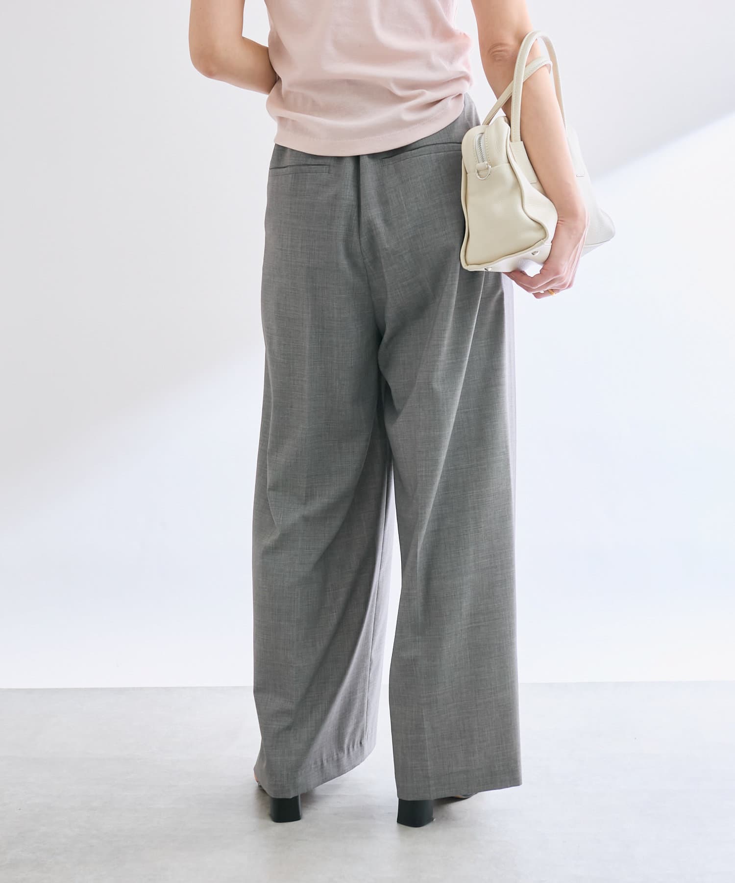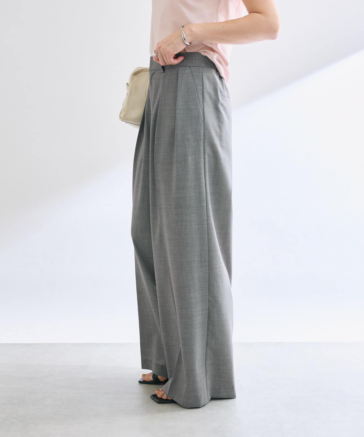 夏に着用しやすい素材感のスラックス。