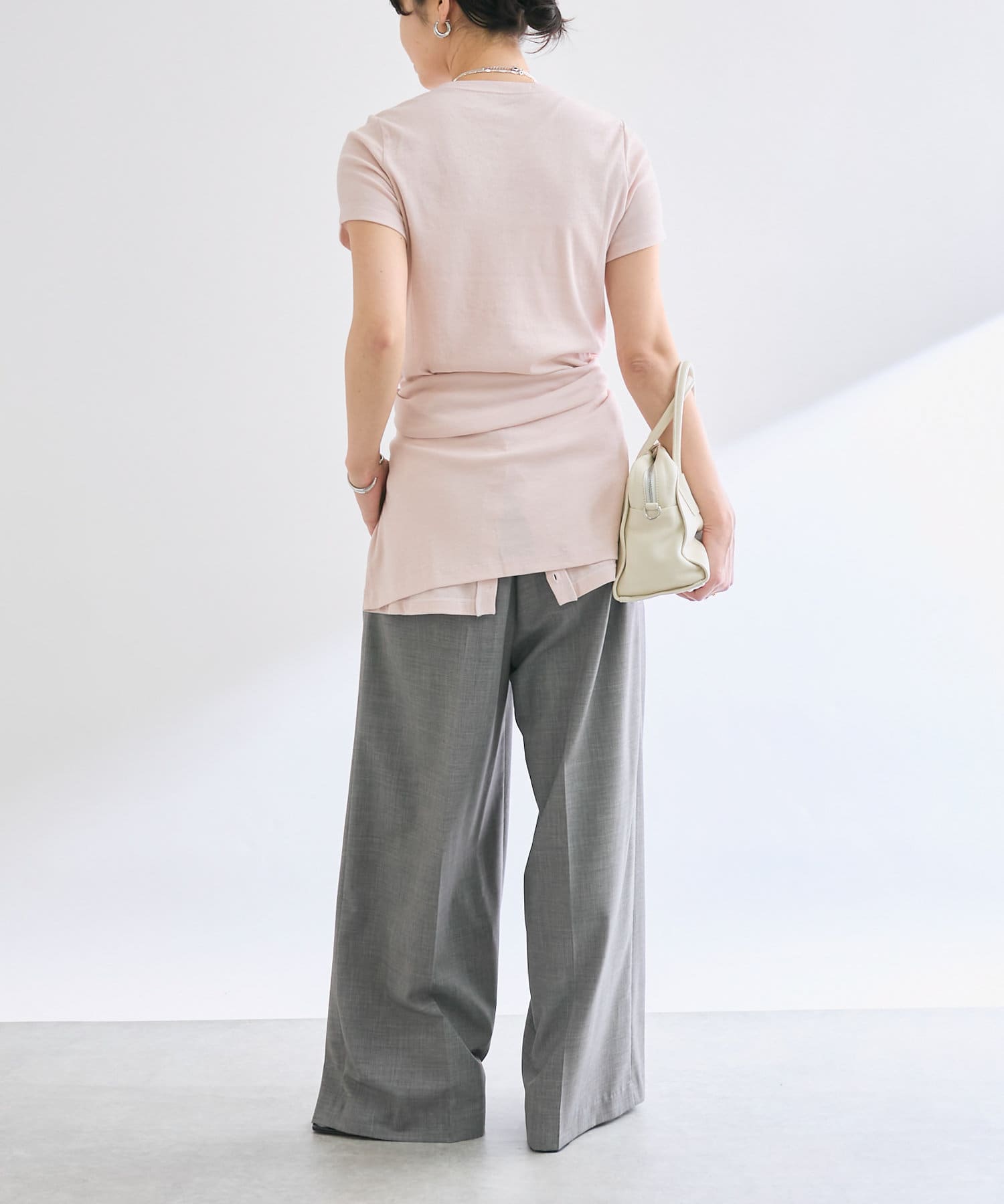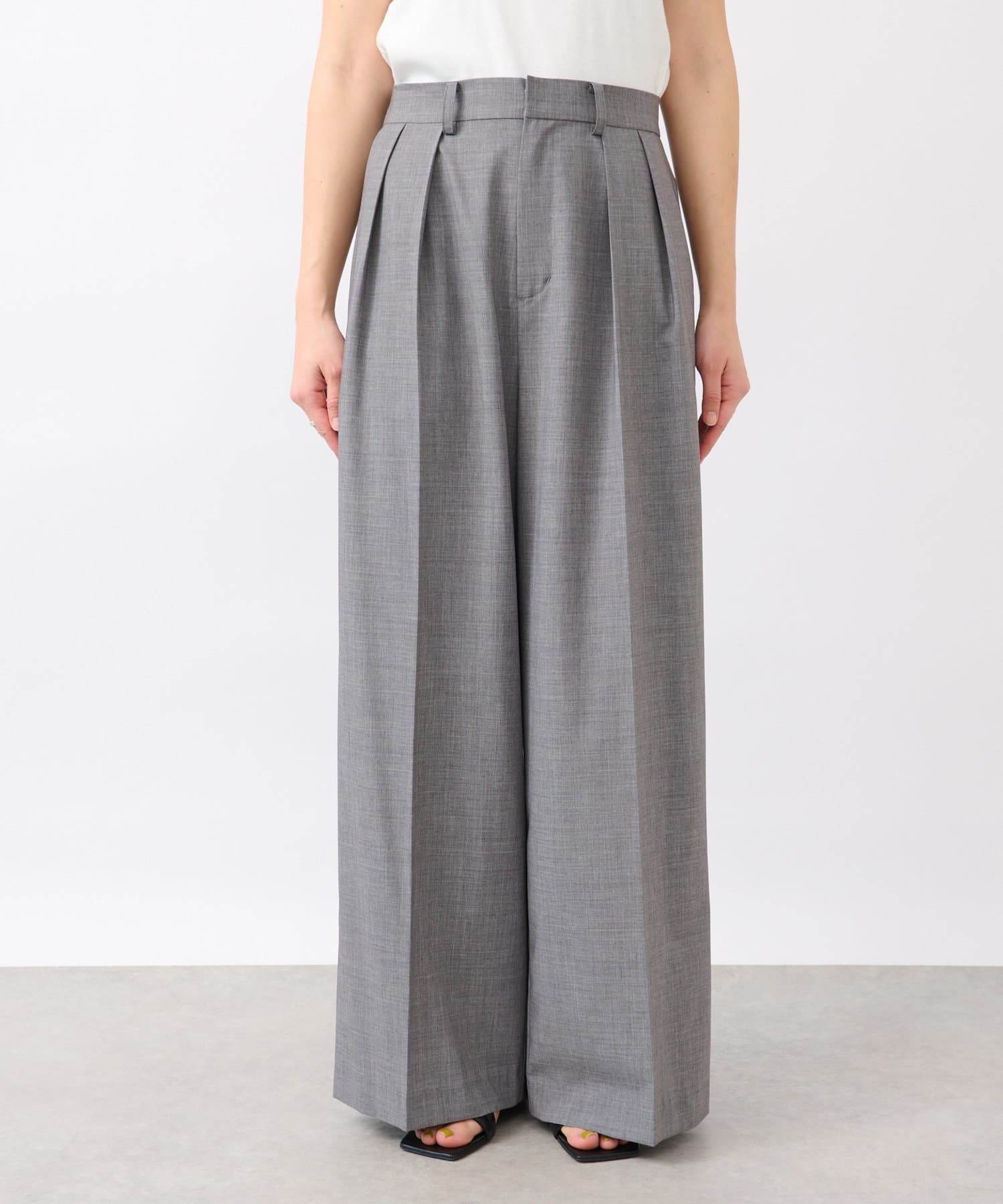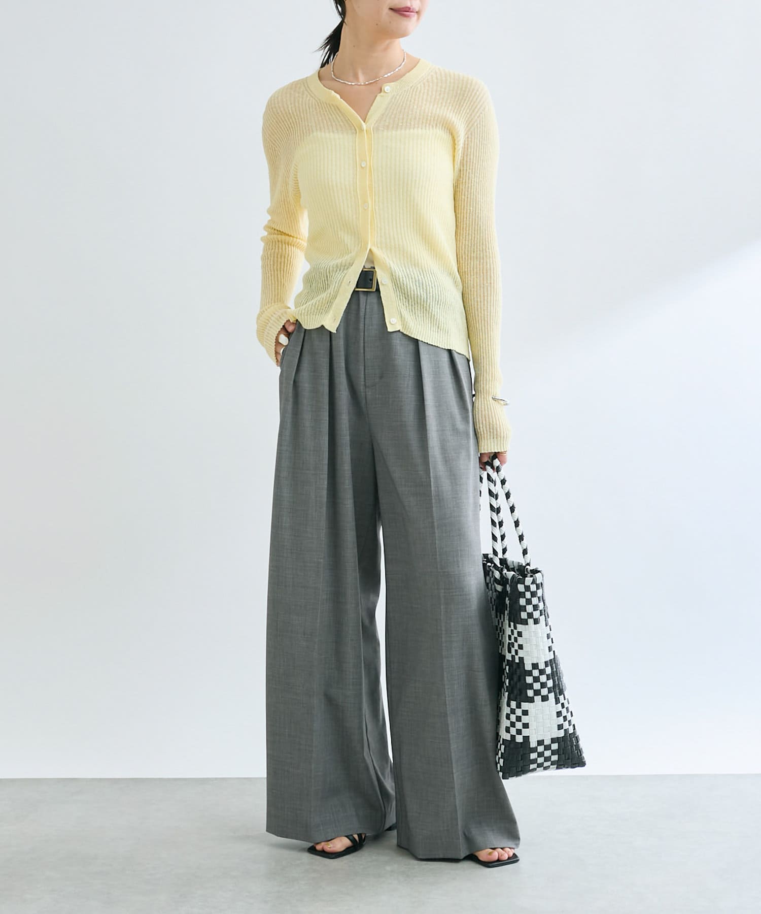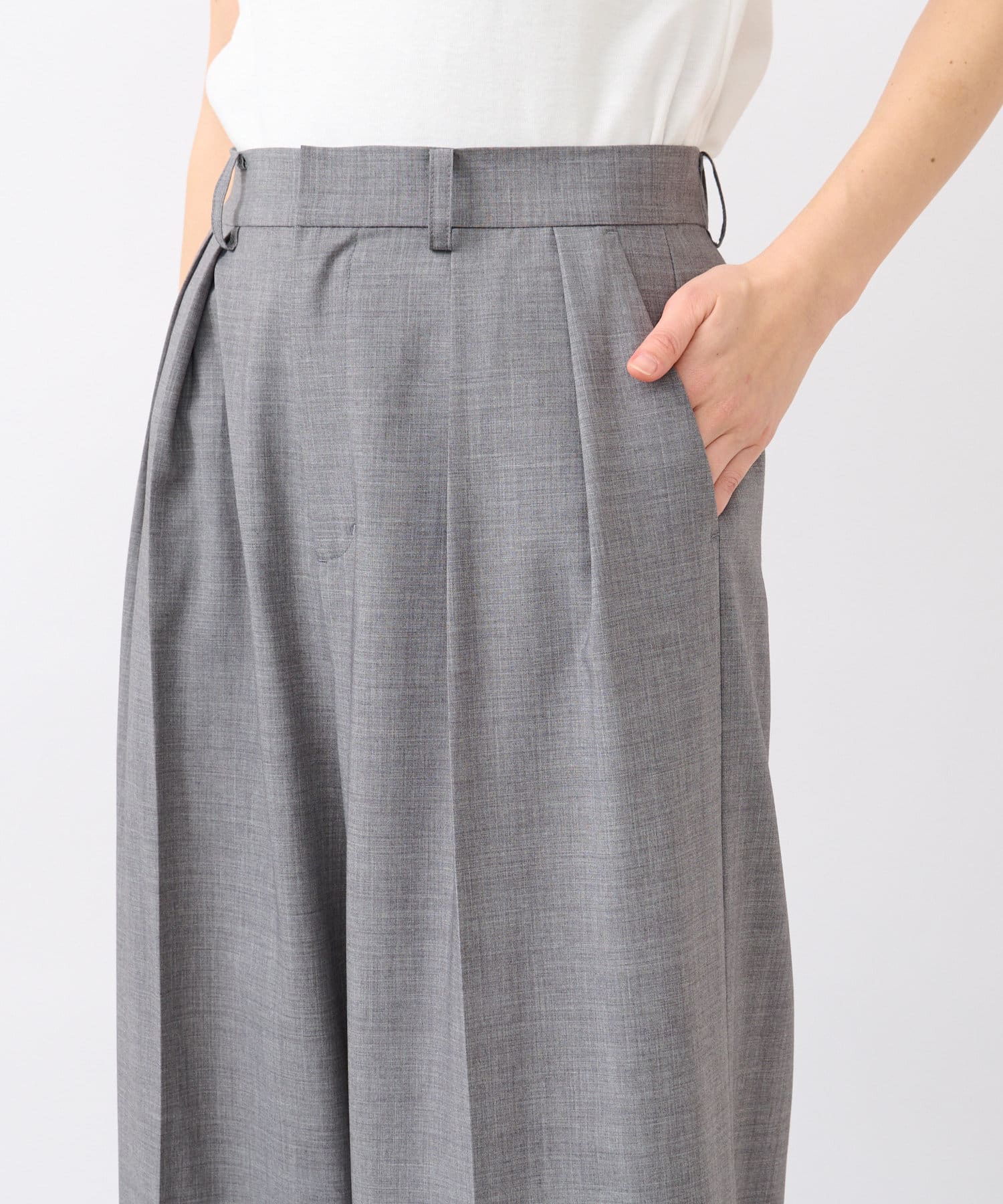 夏に着用しやすい素材感のスラックス。