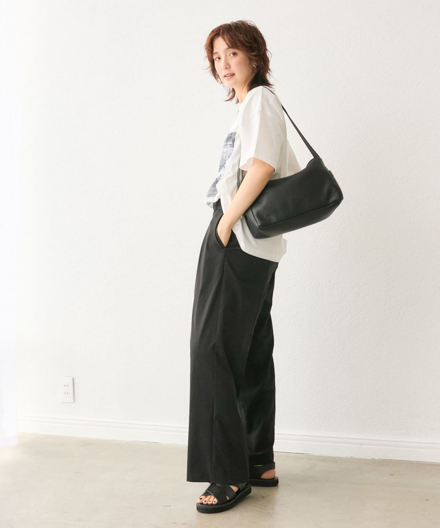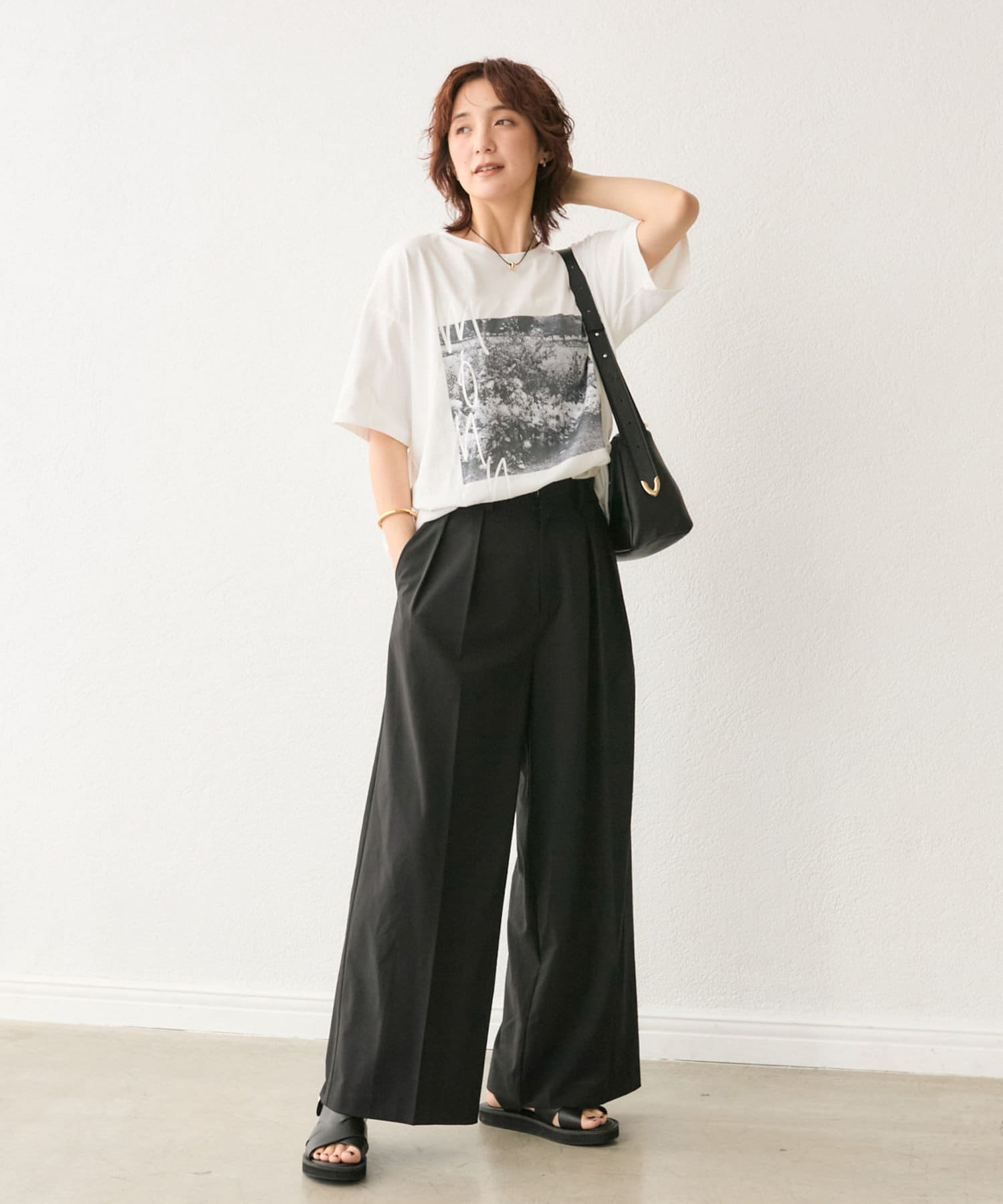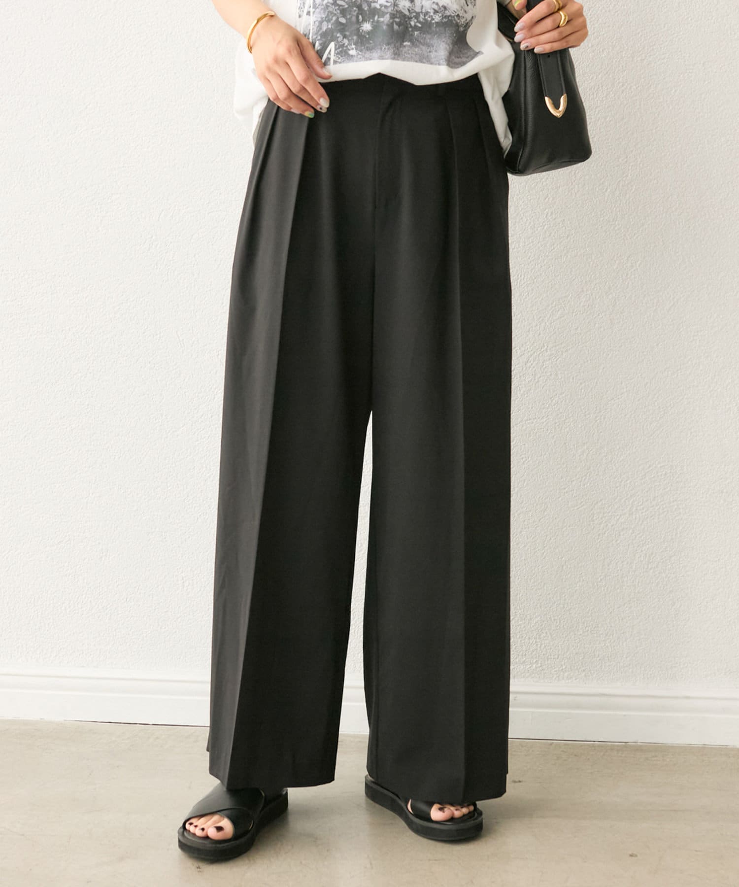 暑い時期にも嬉しい、身体に張り付かず履けるワイドシルエット◎