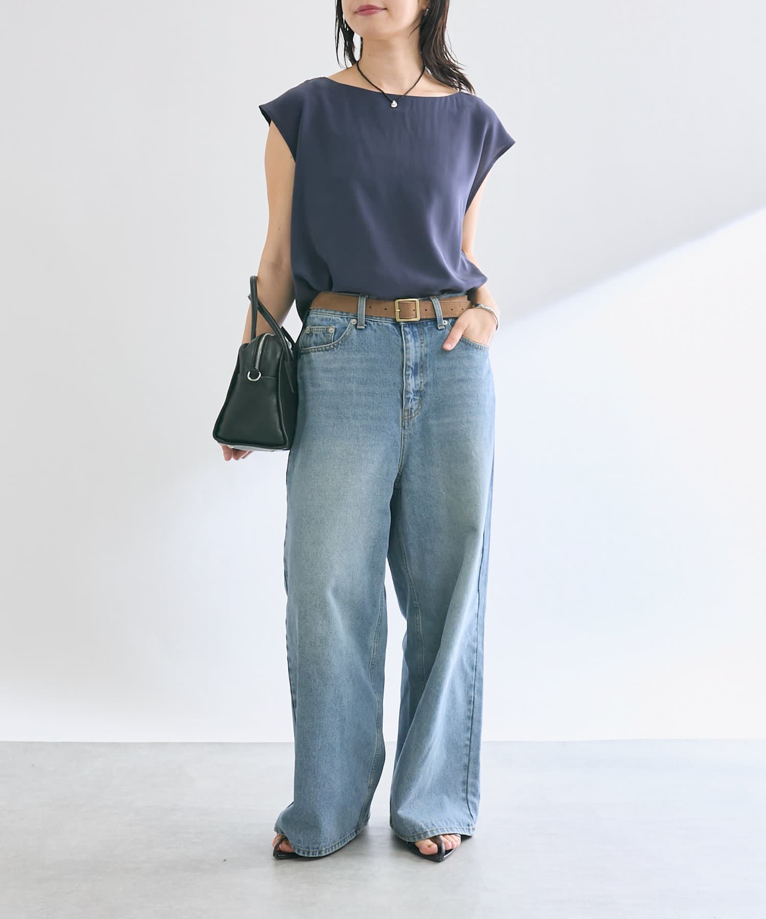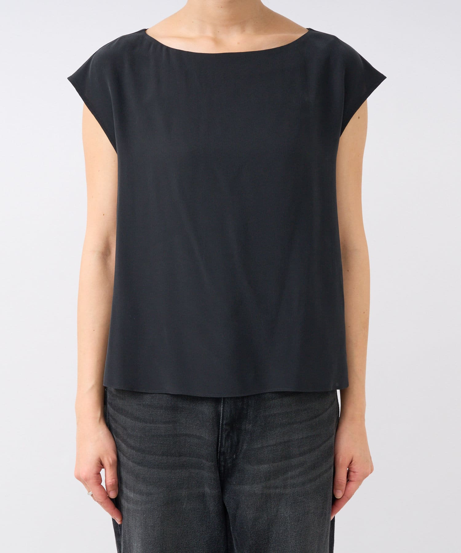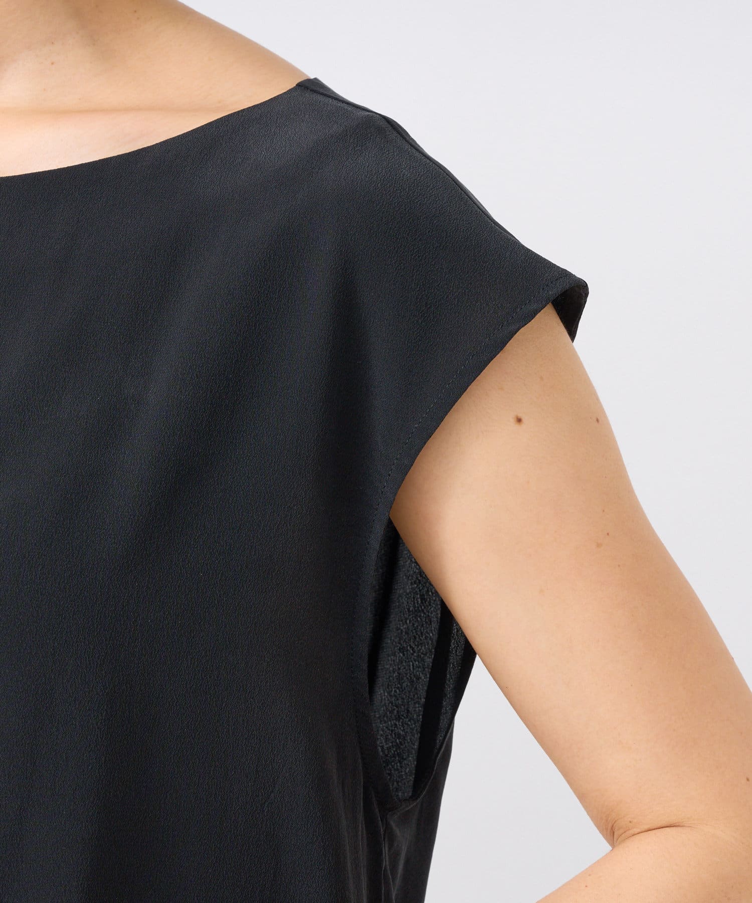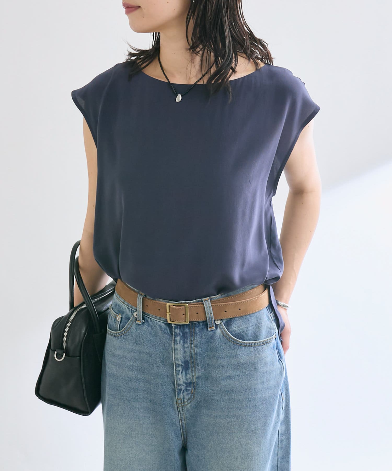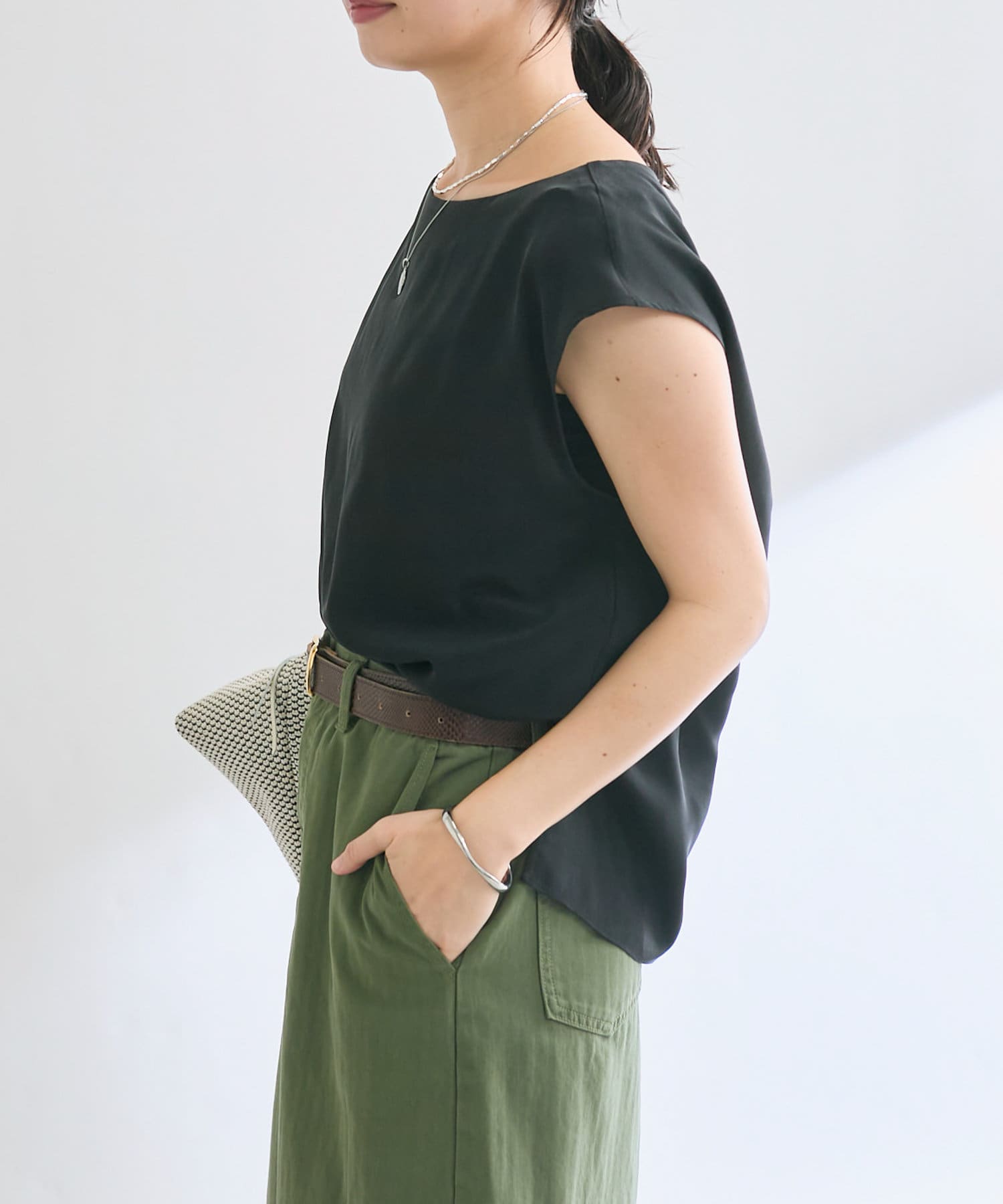 シンプルで上品な印象のフレンチスリーブブラウス。