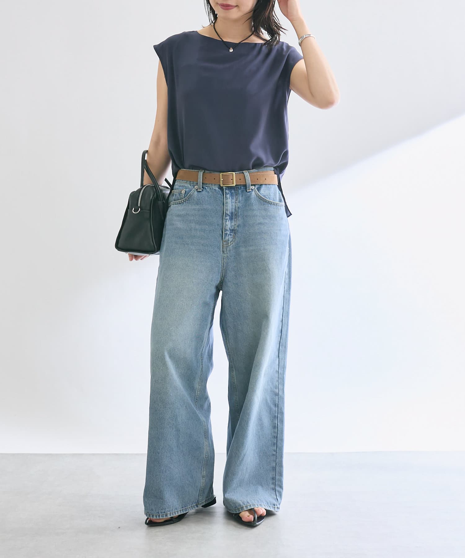 首元はボートネックにし、デコルテがすっきりと見えるデザインに。