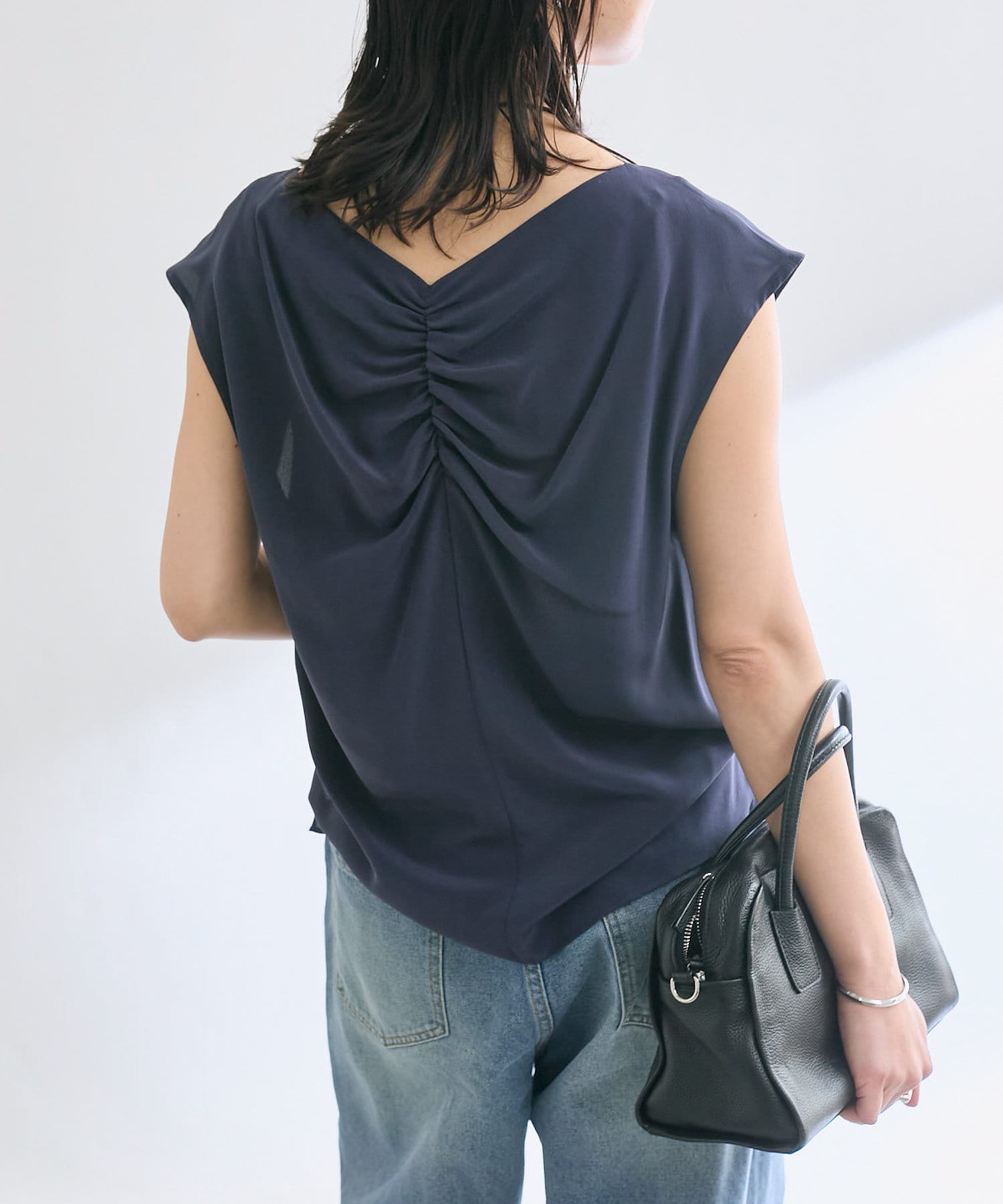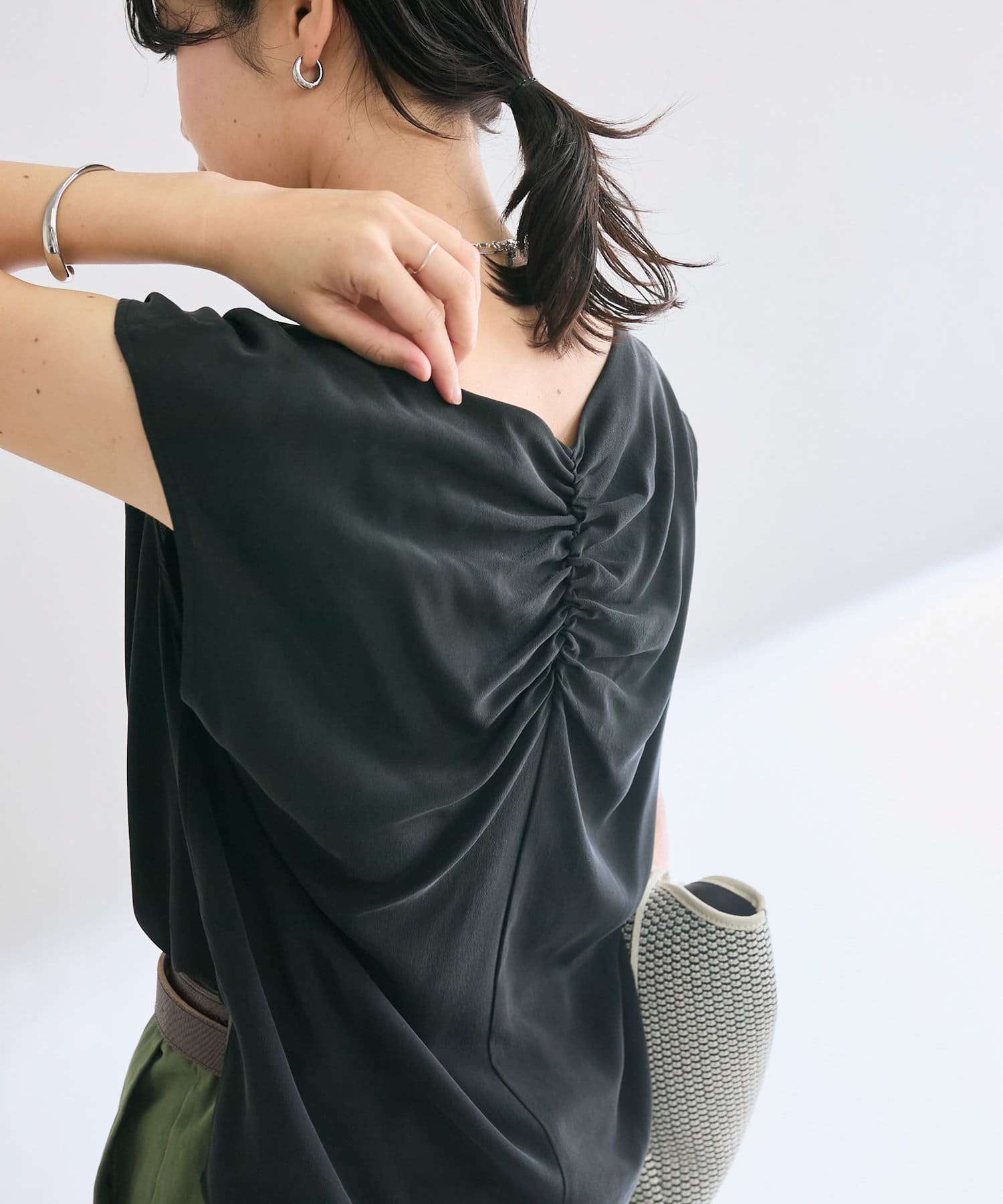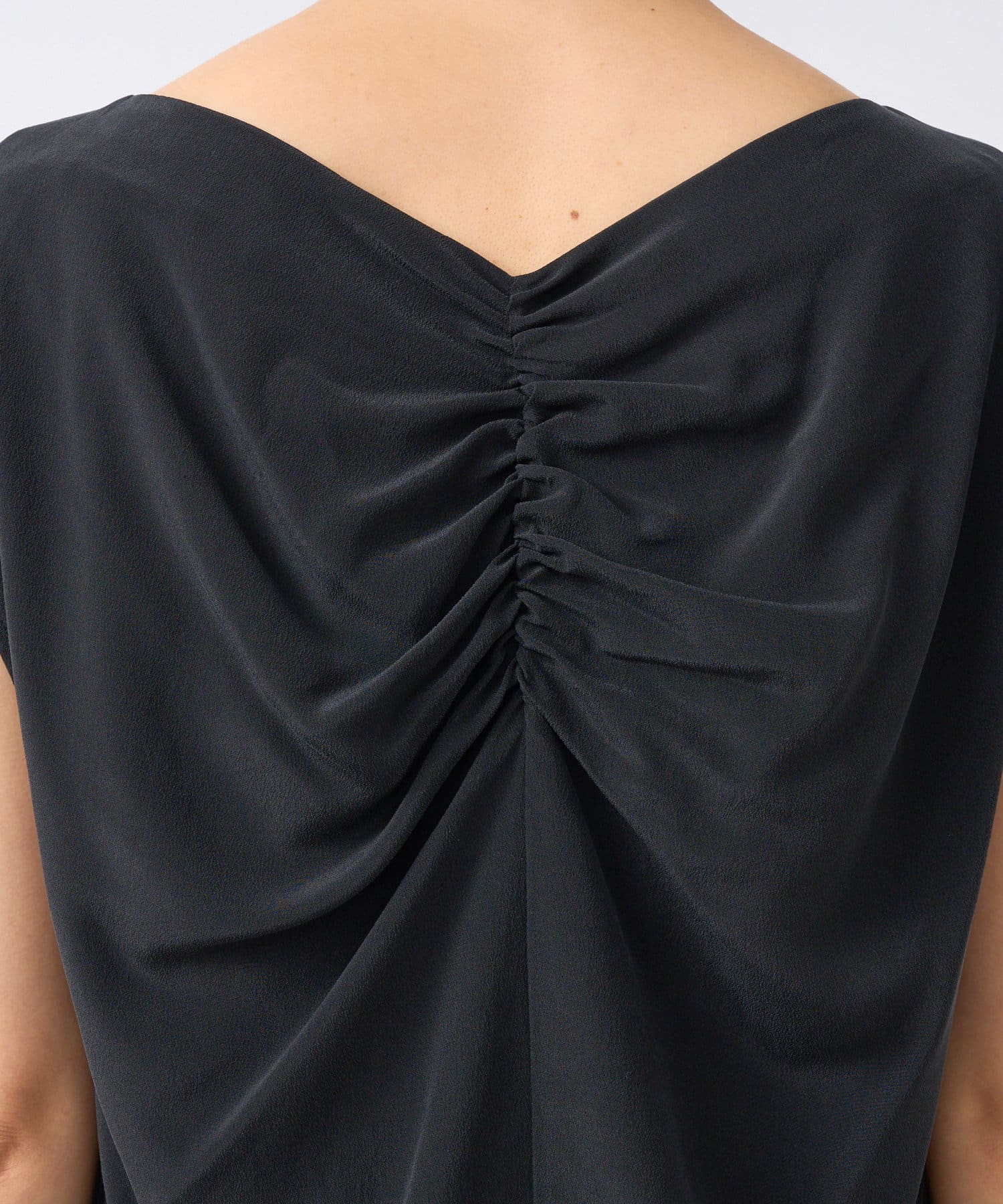 後ろの首元にはギャザーを寄せたデザインディテールを入れています。