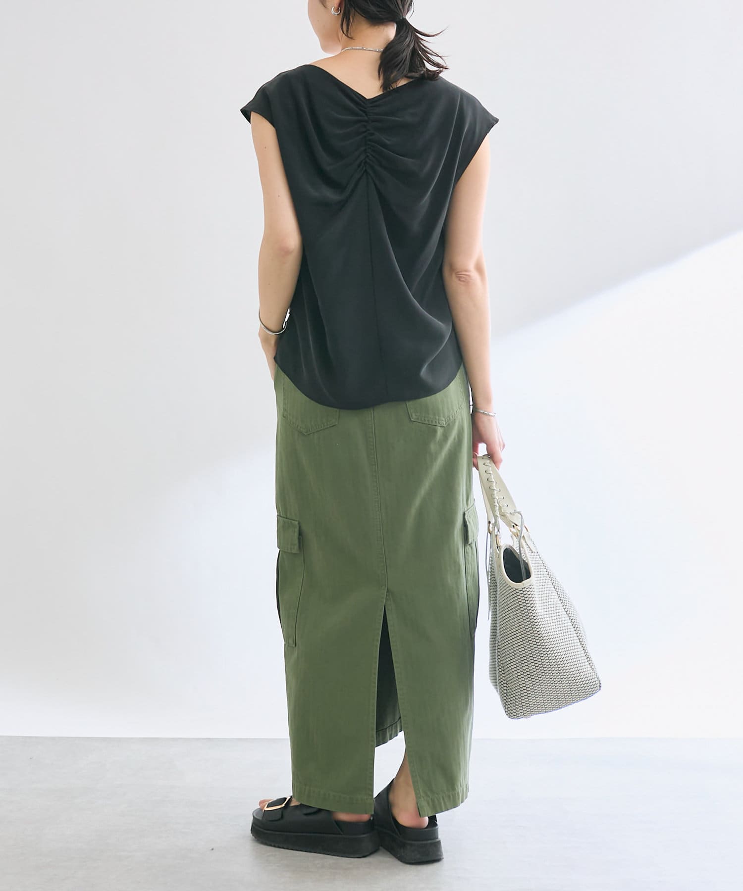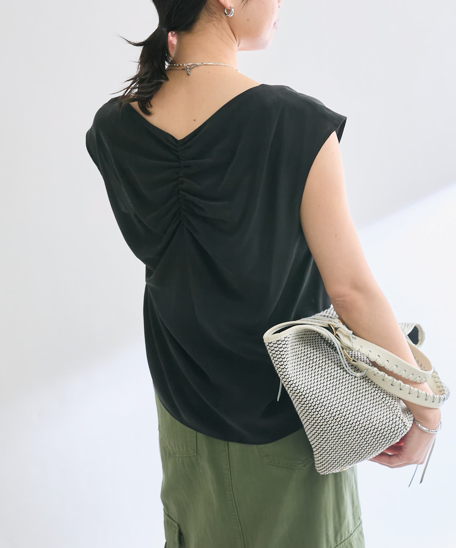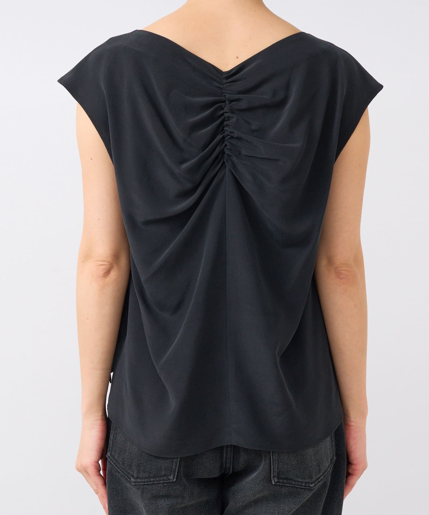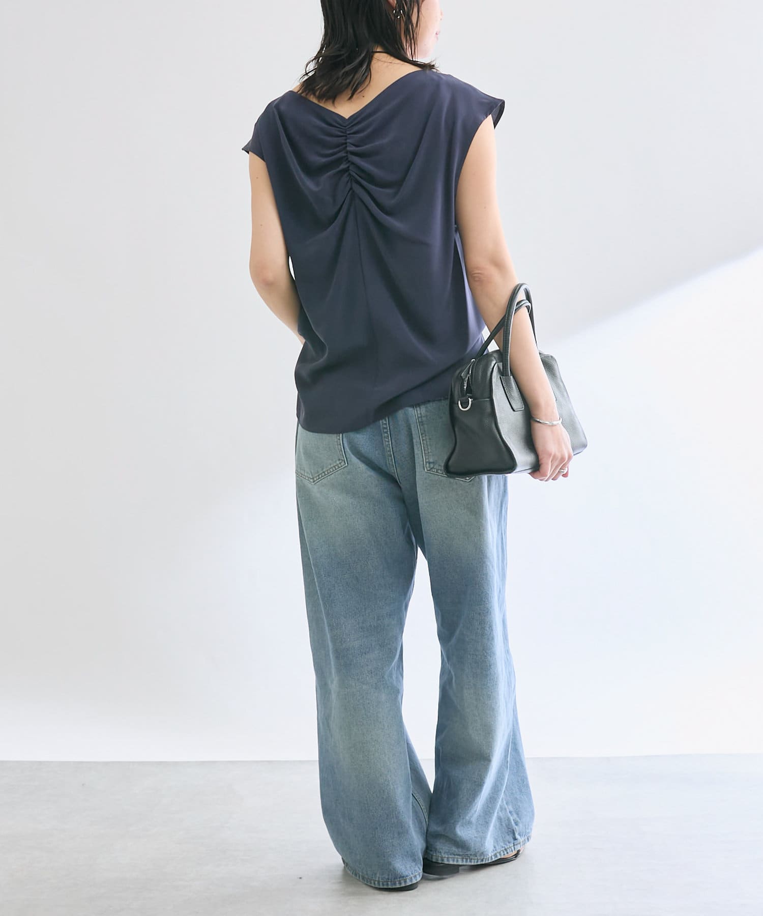 後ろの首元にはギャザーを寄せたデザインディテールを入れています。