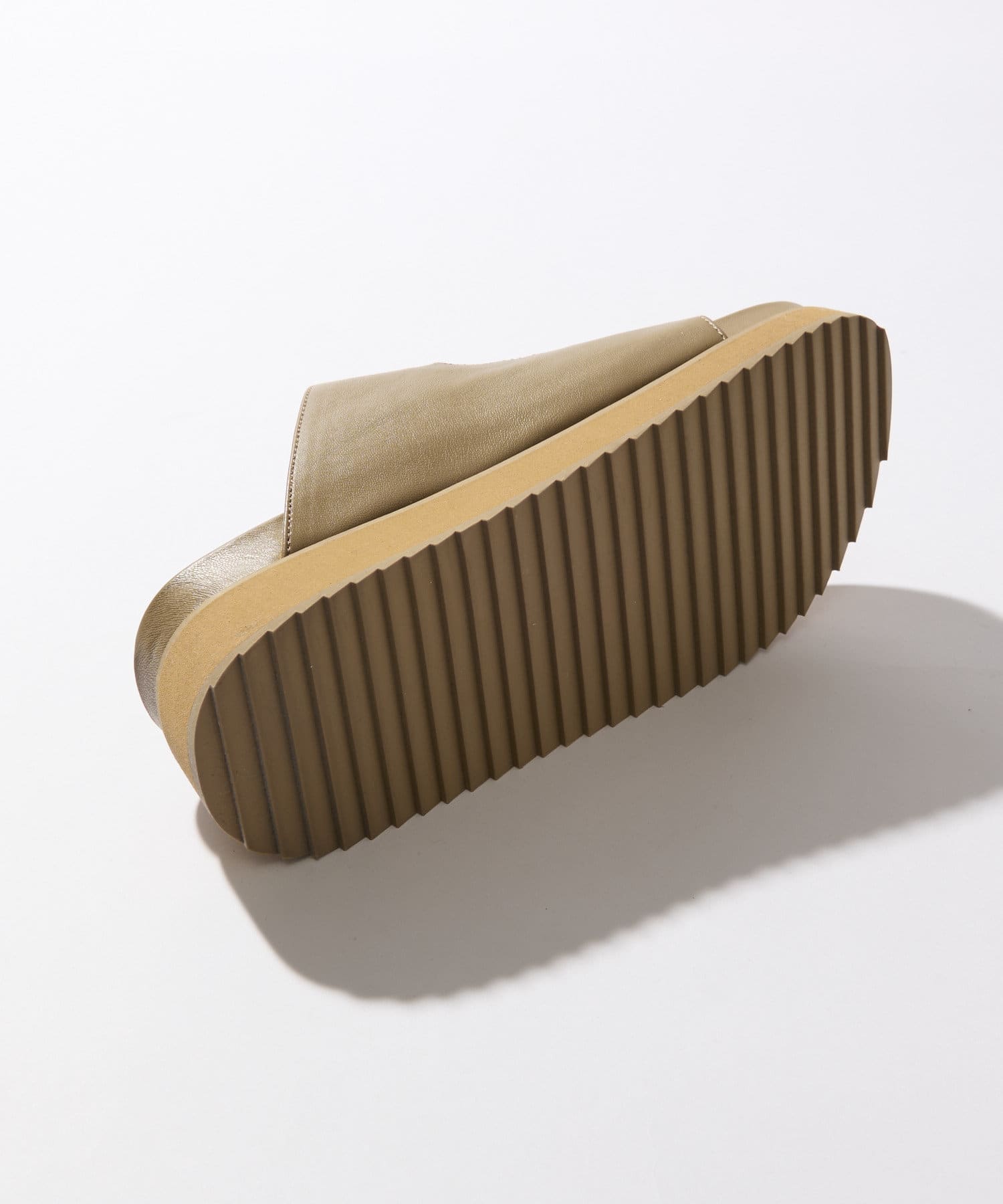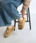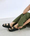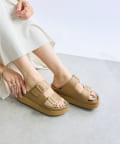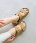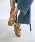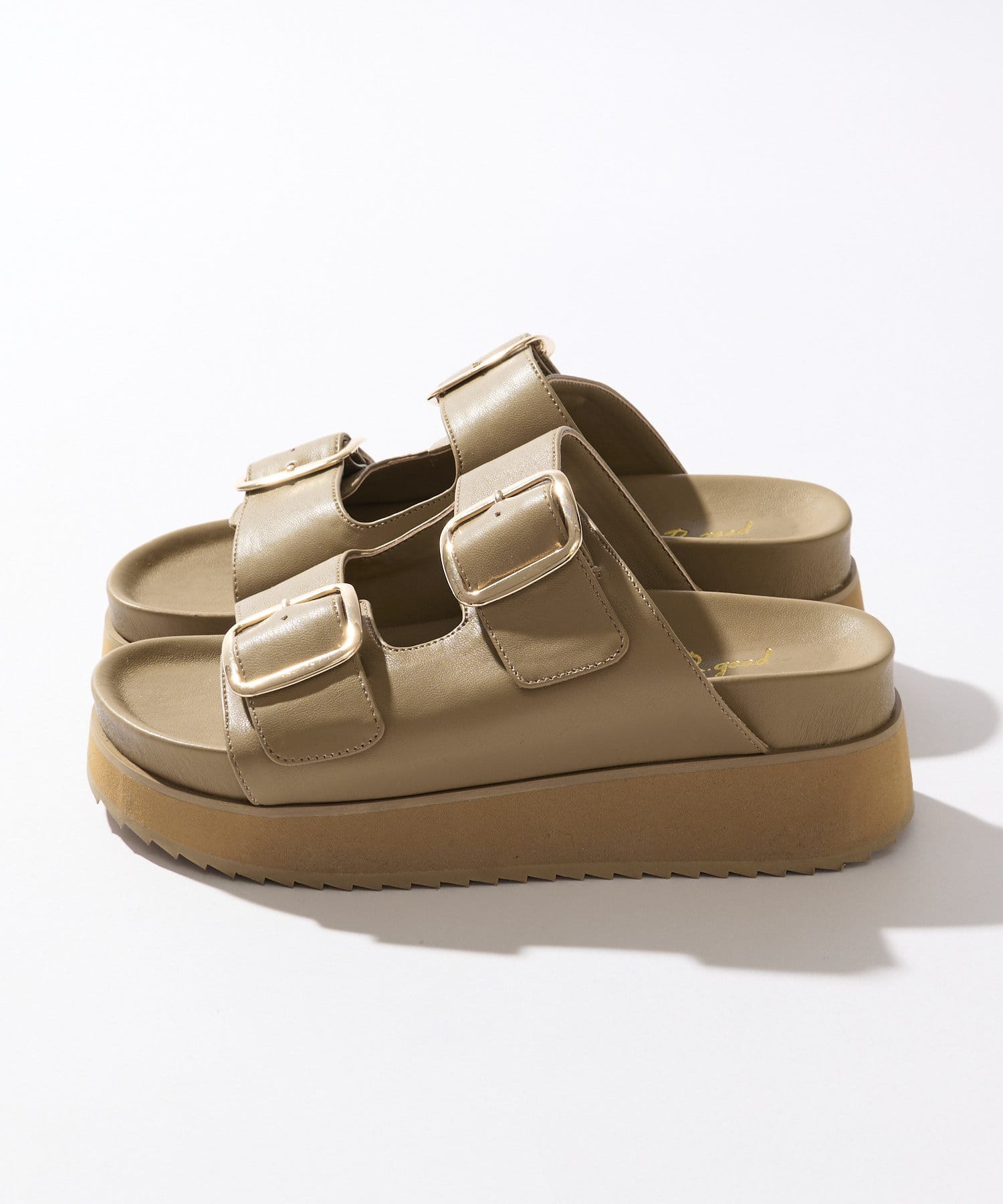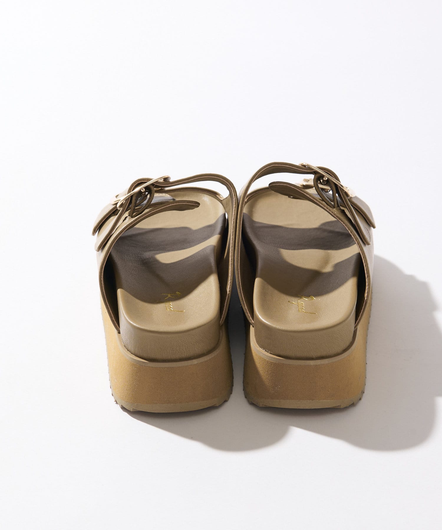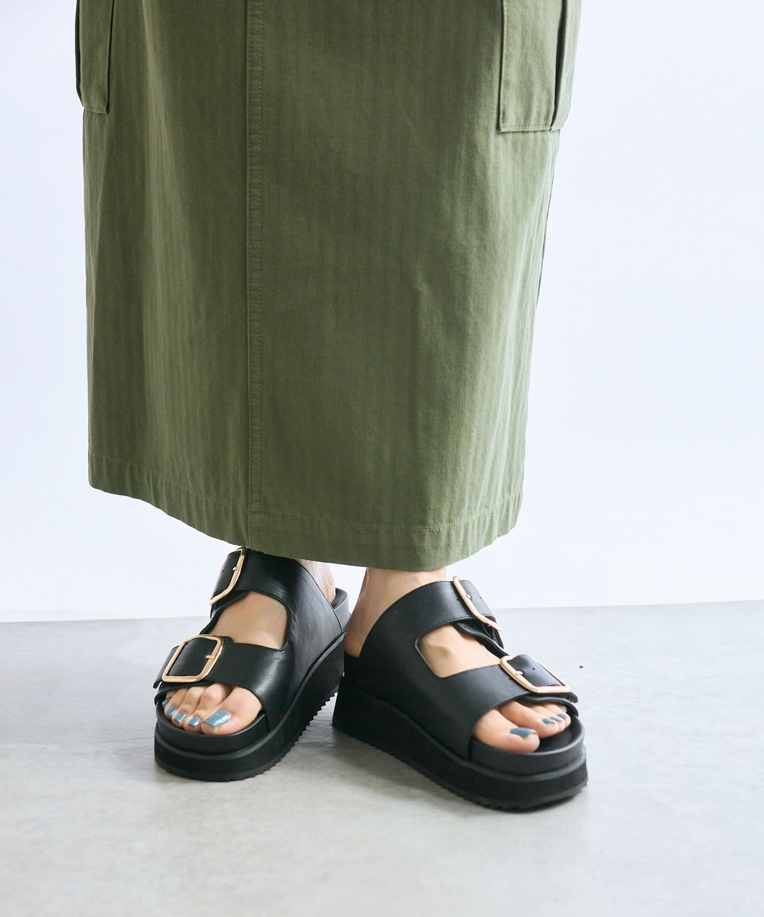 程良いボリュームの厚底ソールと、Wバックルが印象的なサンダル。