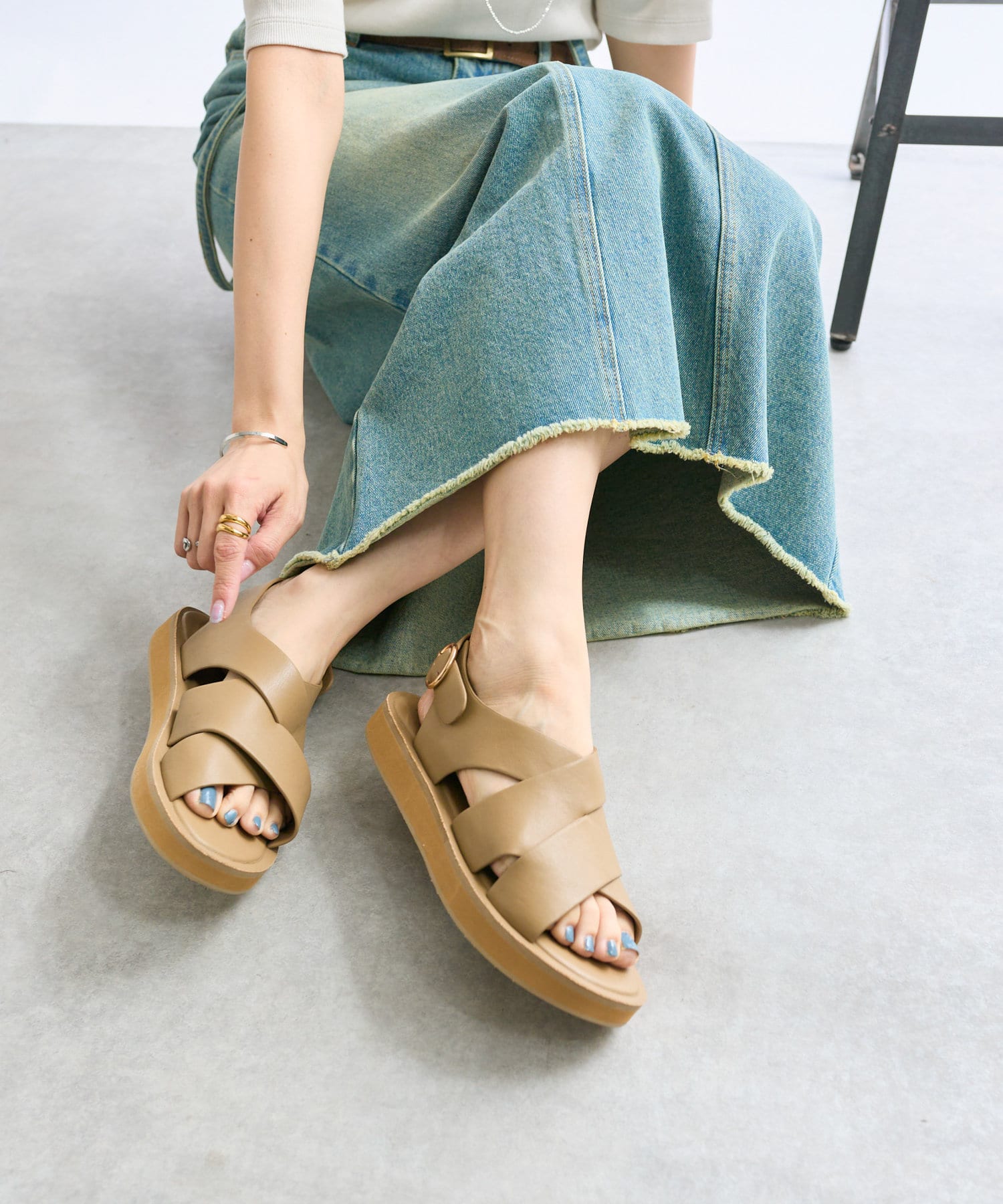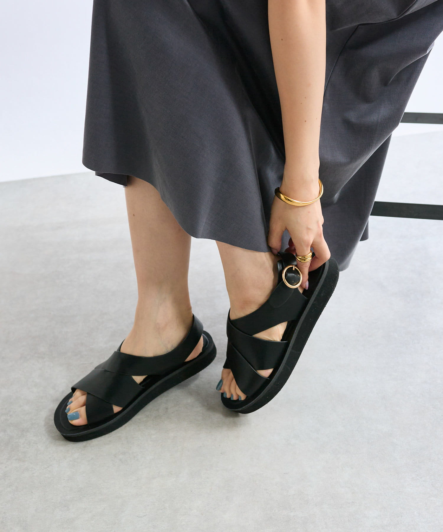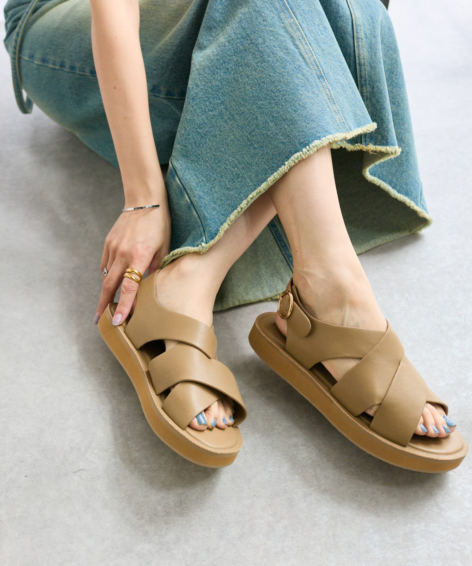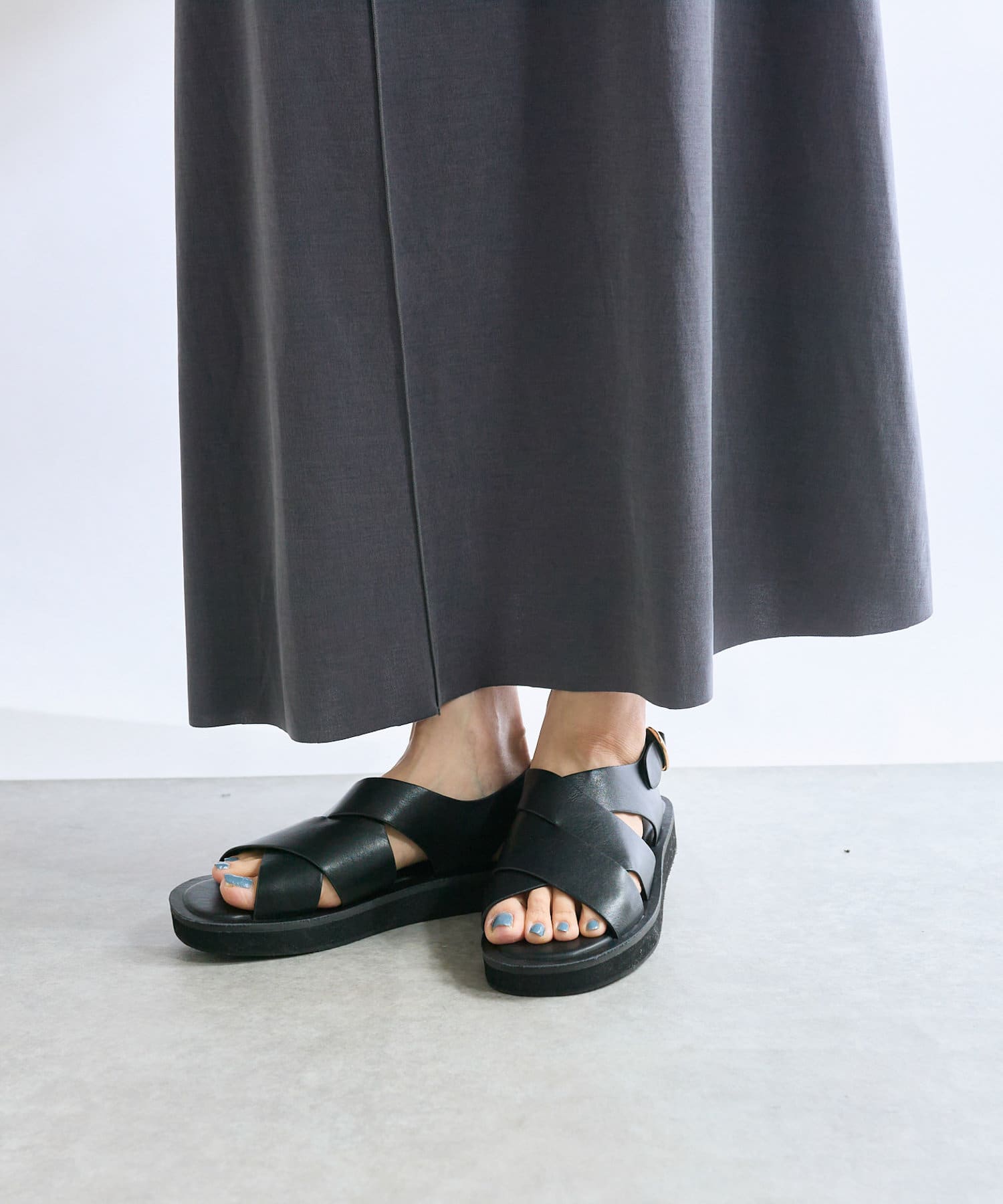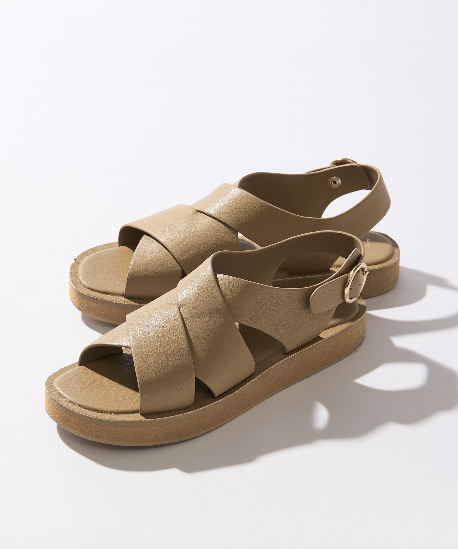 フロント部分のクロスとバックストラップがポイントのサンダル。