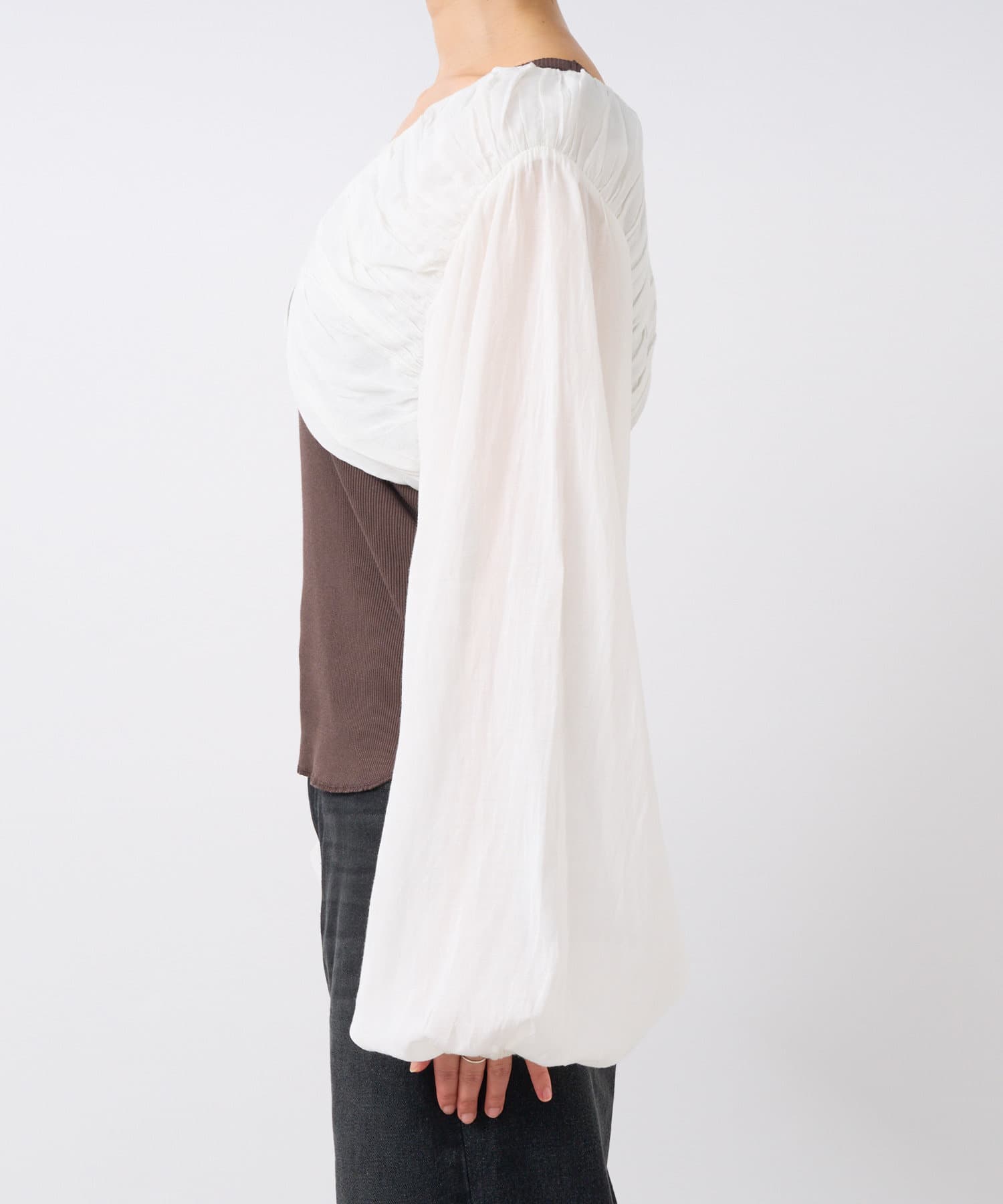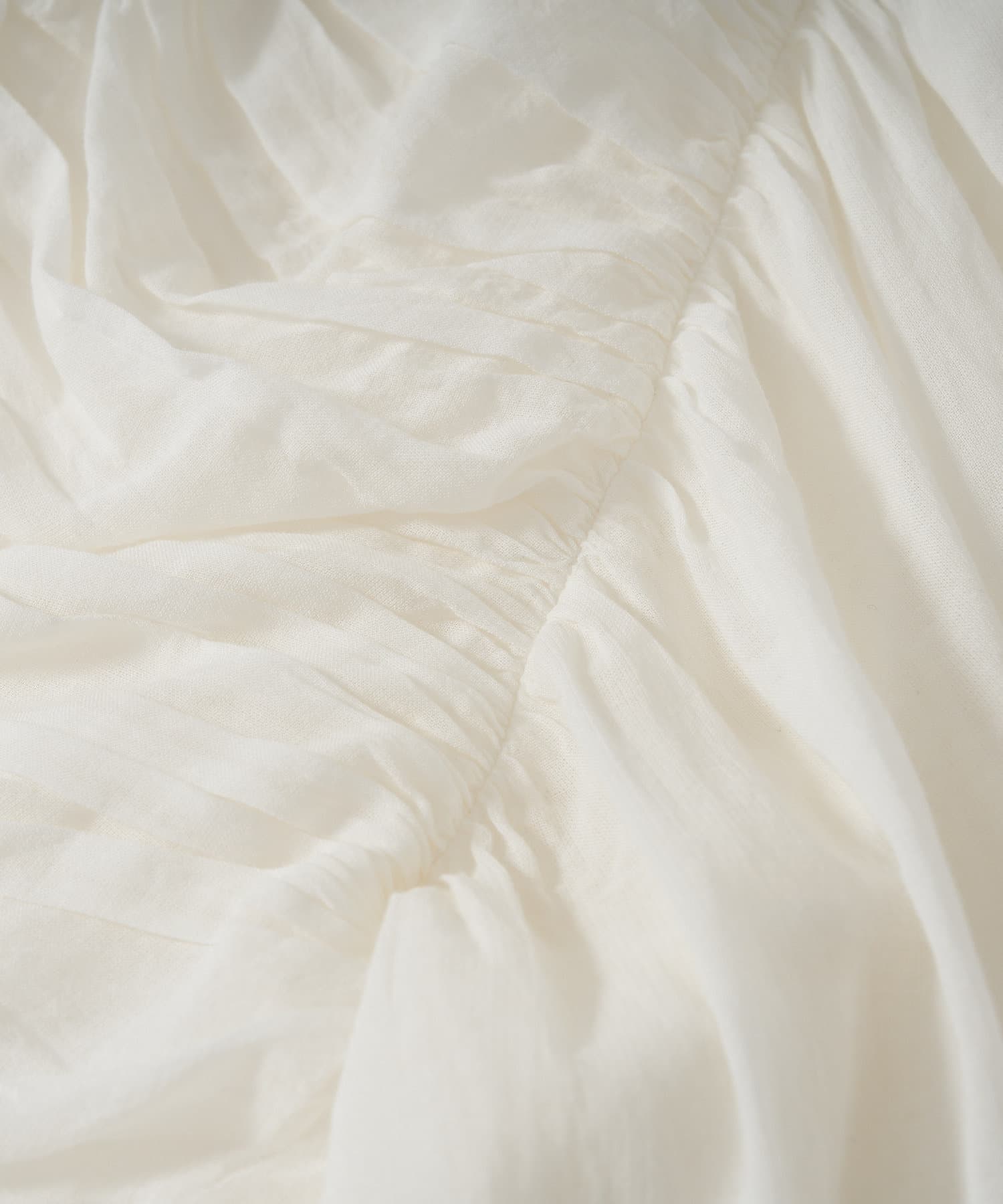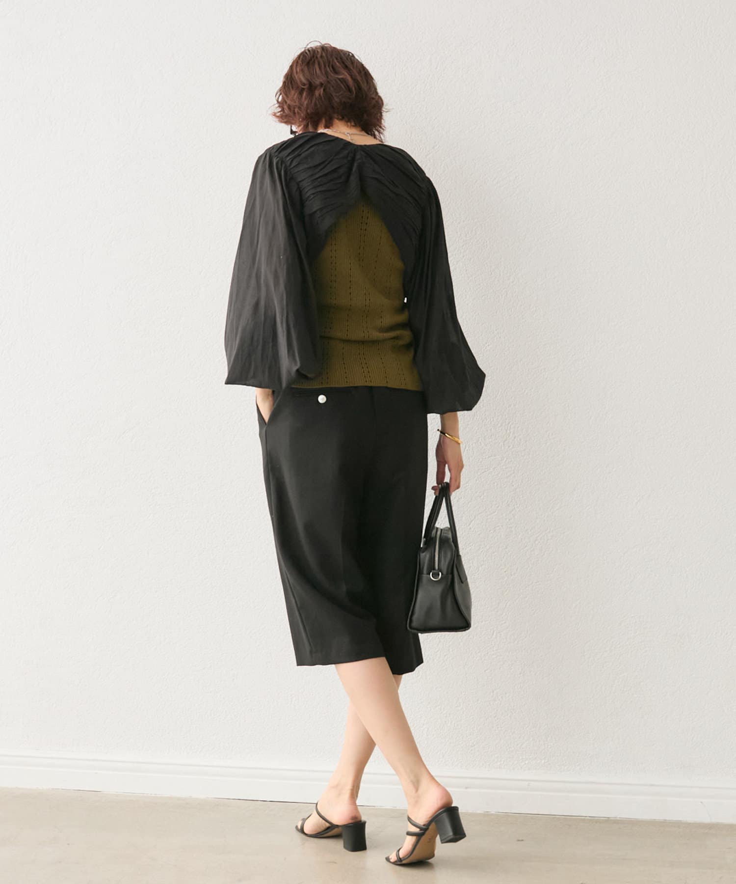 身頃のギャザーや袖のボリューム感がこなれ感を演出してくれます。