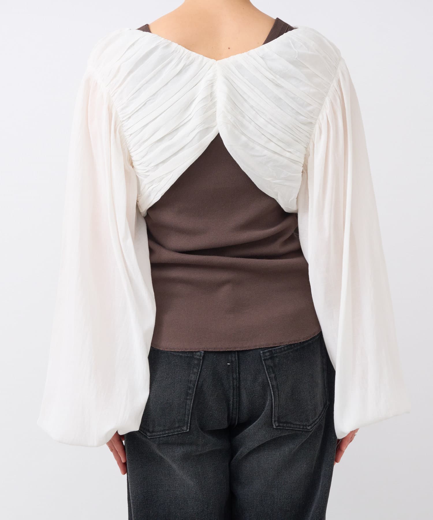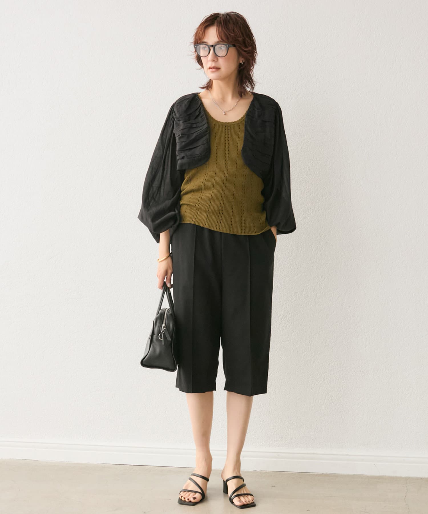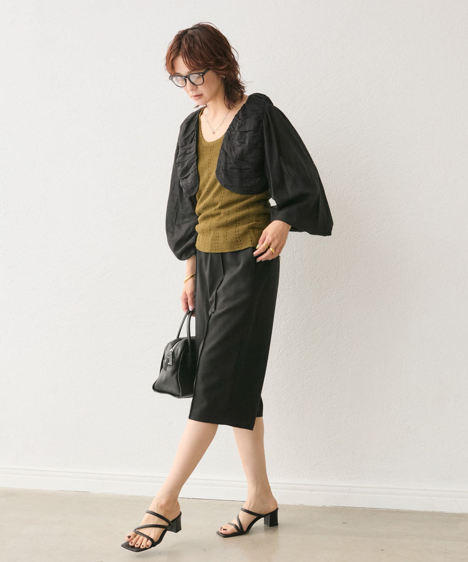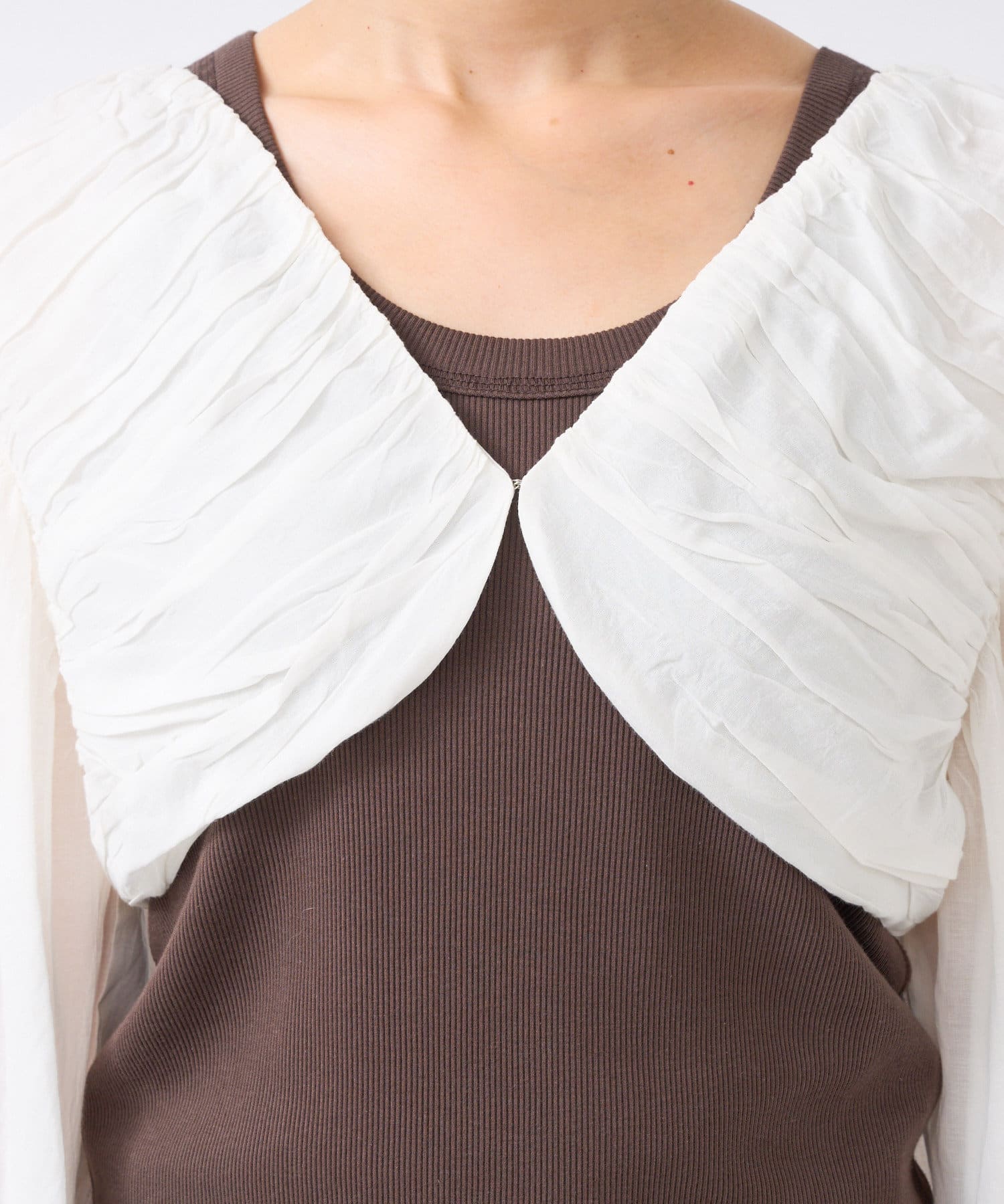 たっぷりとギャザーを寄せたデザインが目を惹くボレロ。