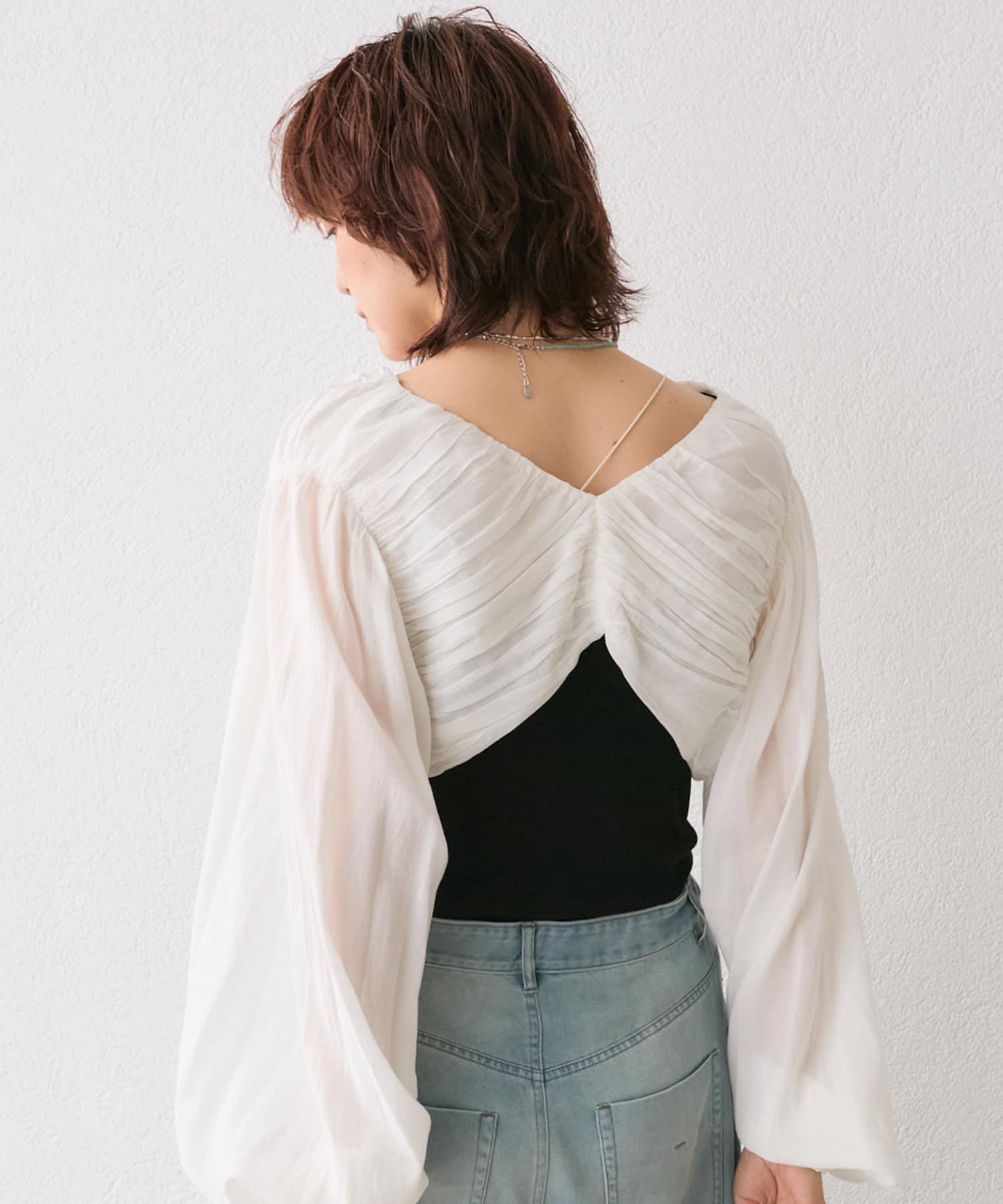 • 身頃のギャザーや袖のボリューム感がこなれ感を演出