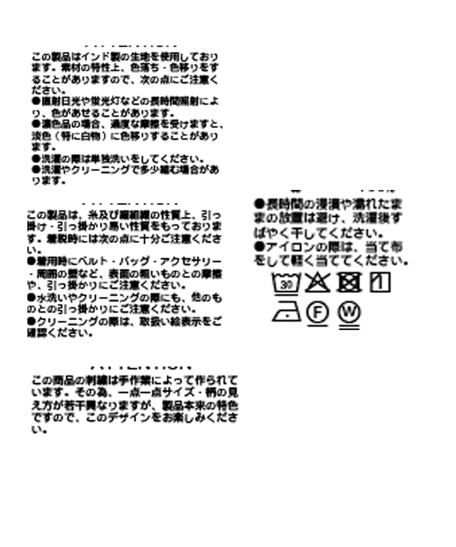 手洗い可能ですが、刺繍も入っていて繊細な素材感なので、ひっかけ等にはご注意下さい。