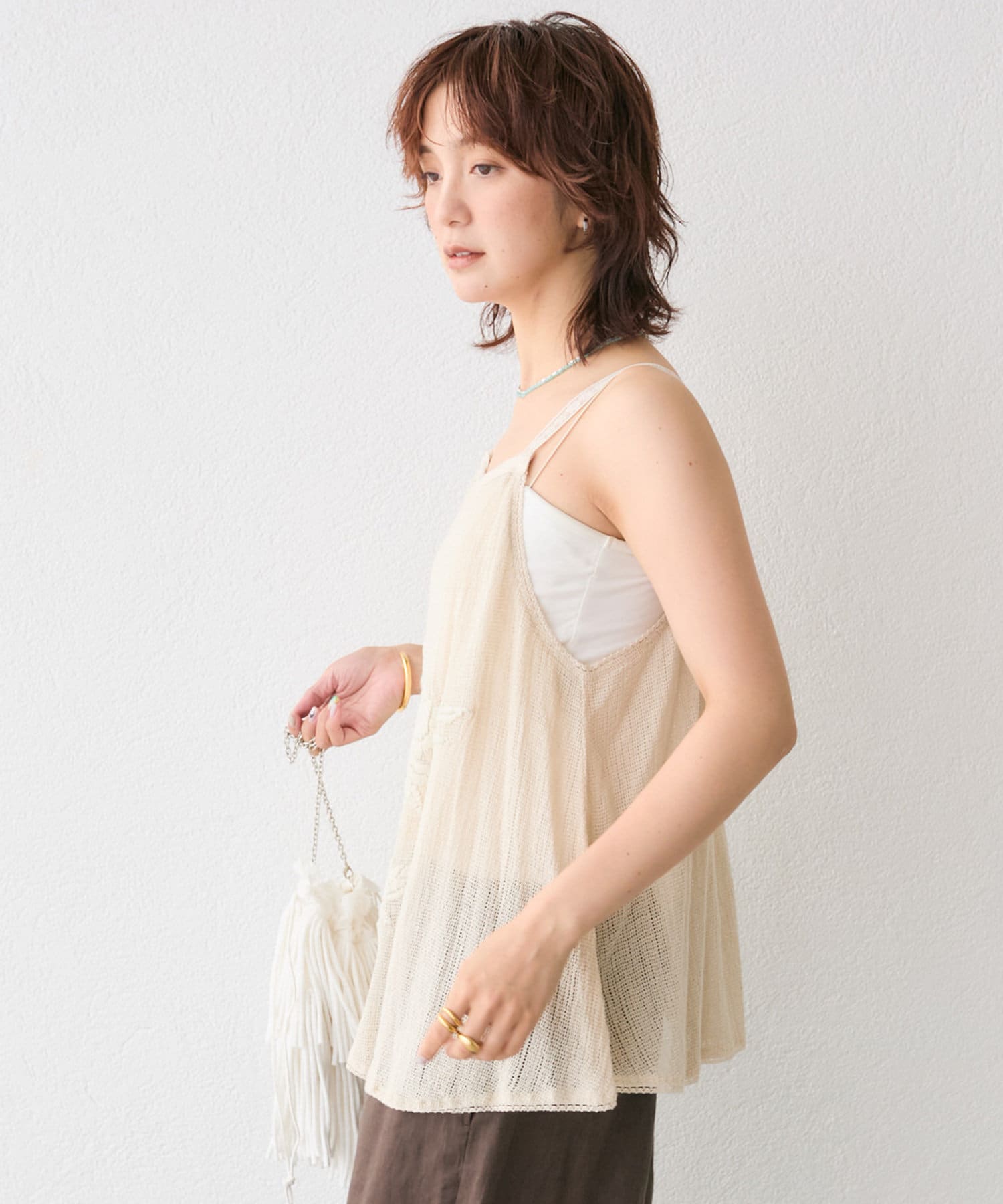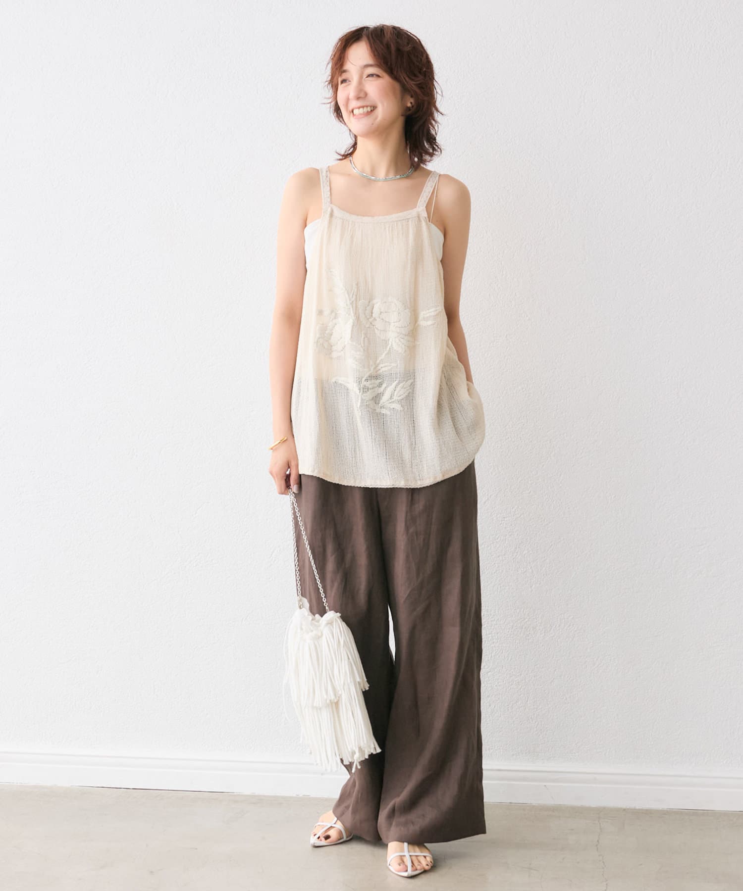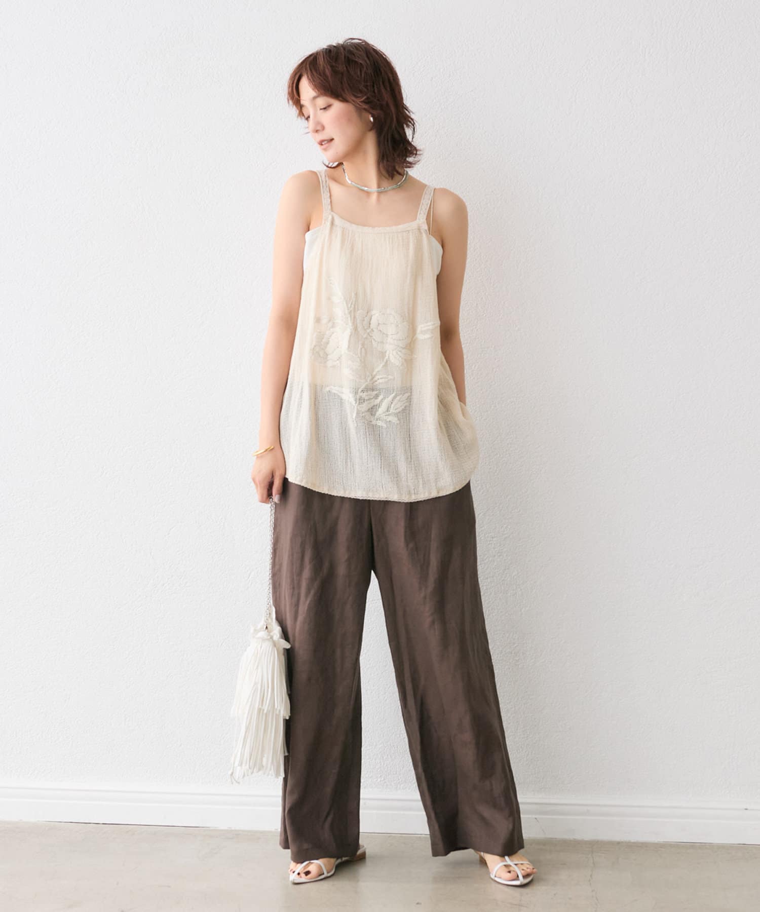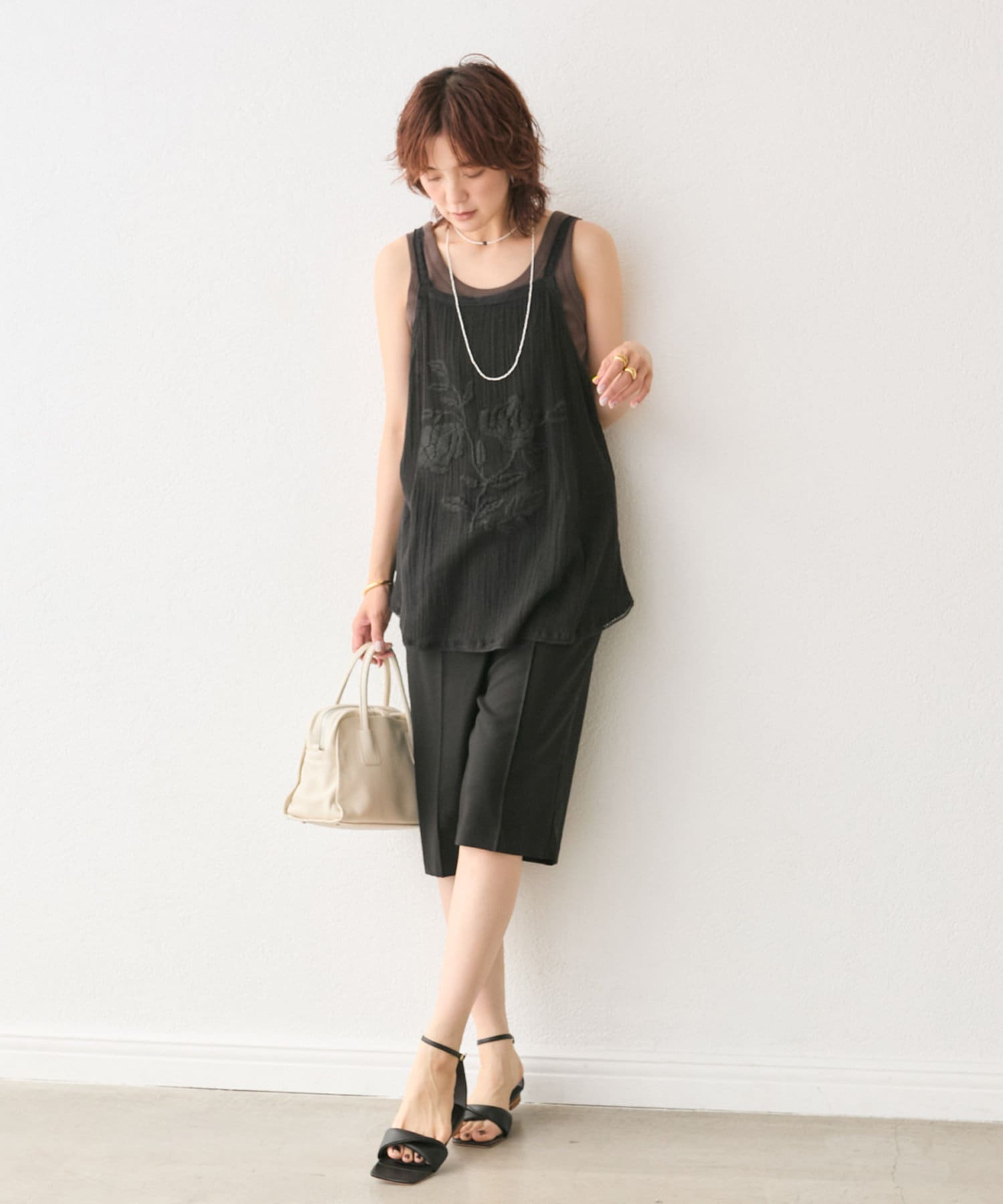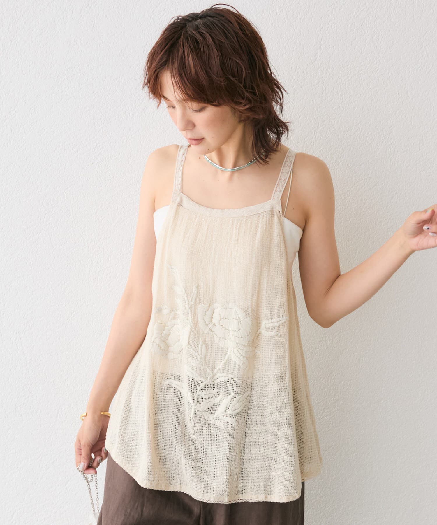 大人の肌に映える、華やか刺繍キャミソール