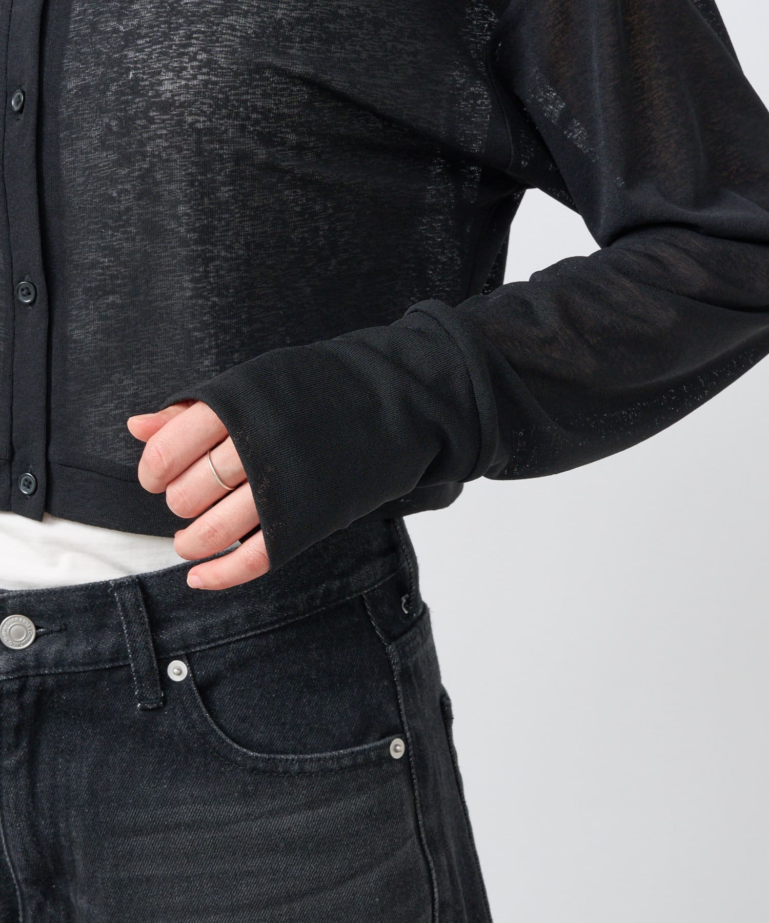 日焼けや冷房対策にカーディガンが欲しくて探していたところ、丈短め袖長めの(手の甲がすっぽり隠れる!)気の利いたこちらを見つけて即購入