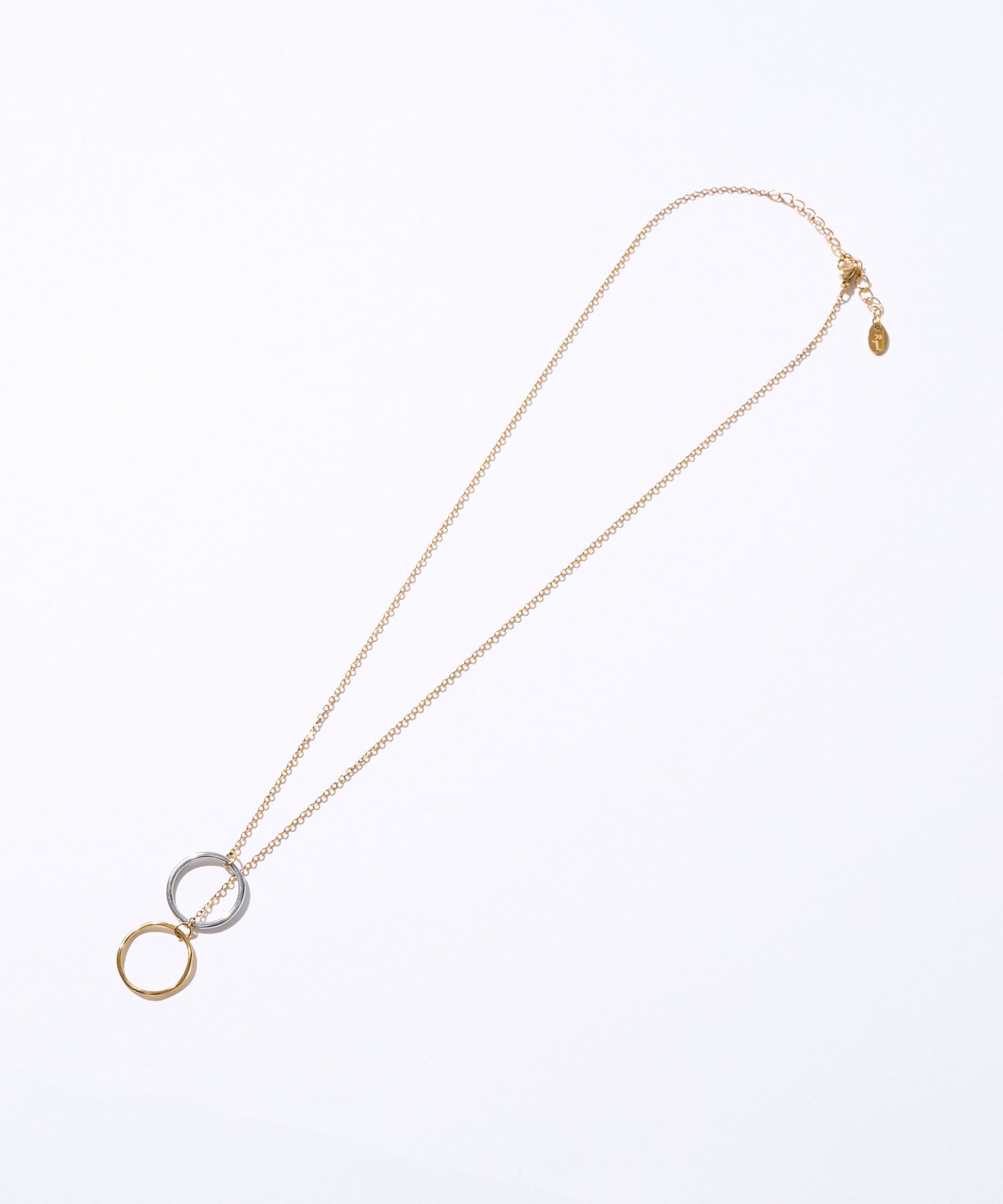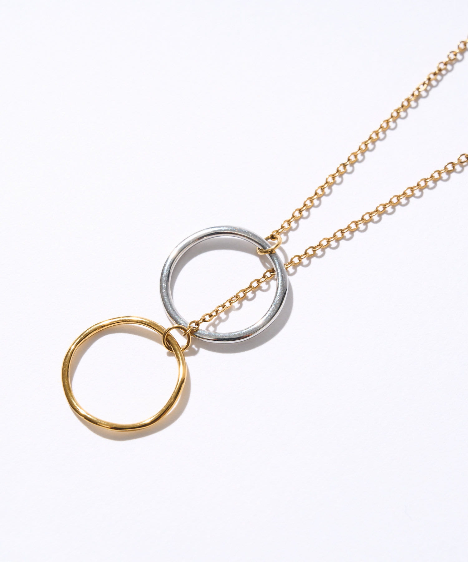 ゴールドとシルバーの2つのサークルがポイントのネックレス。