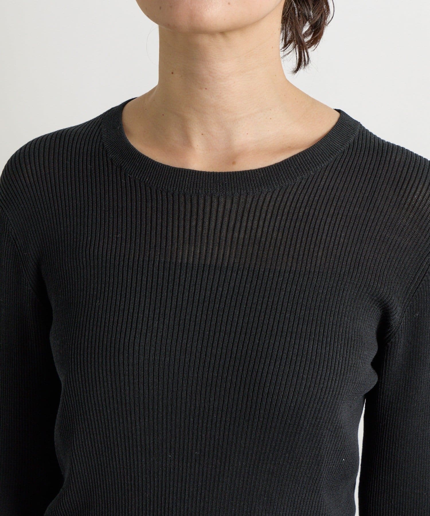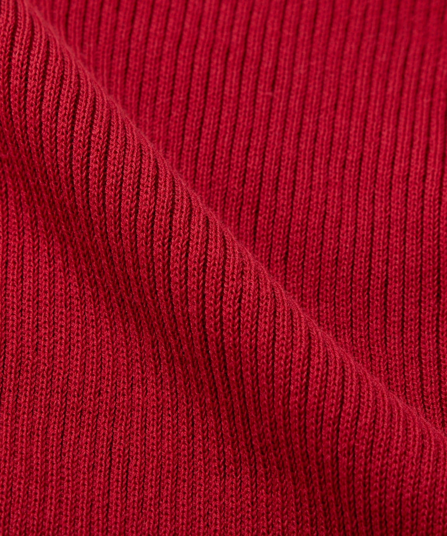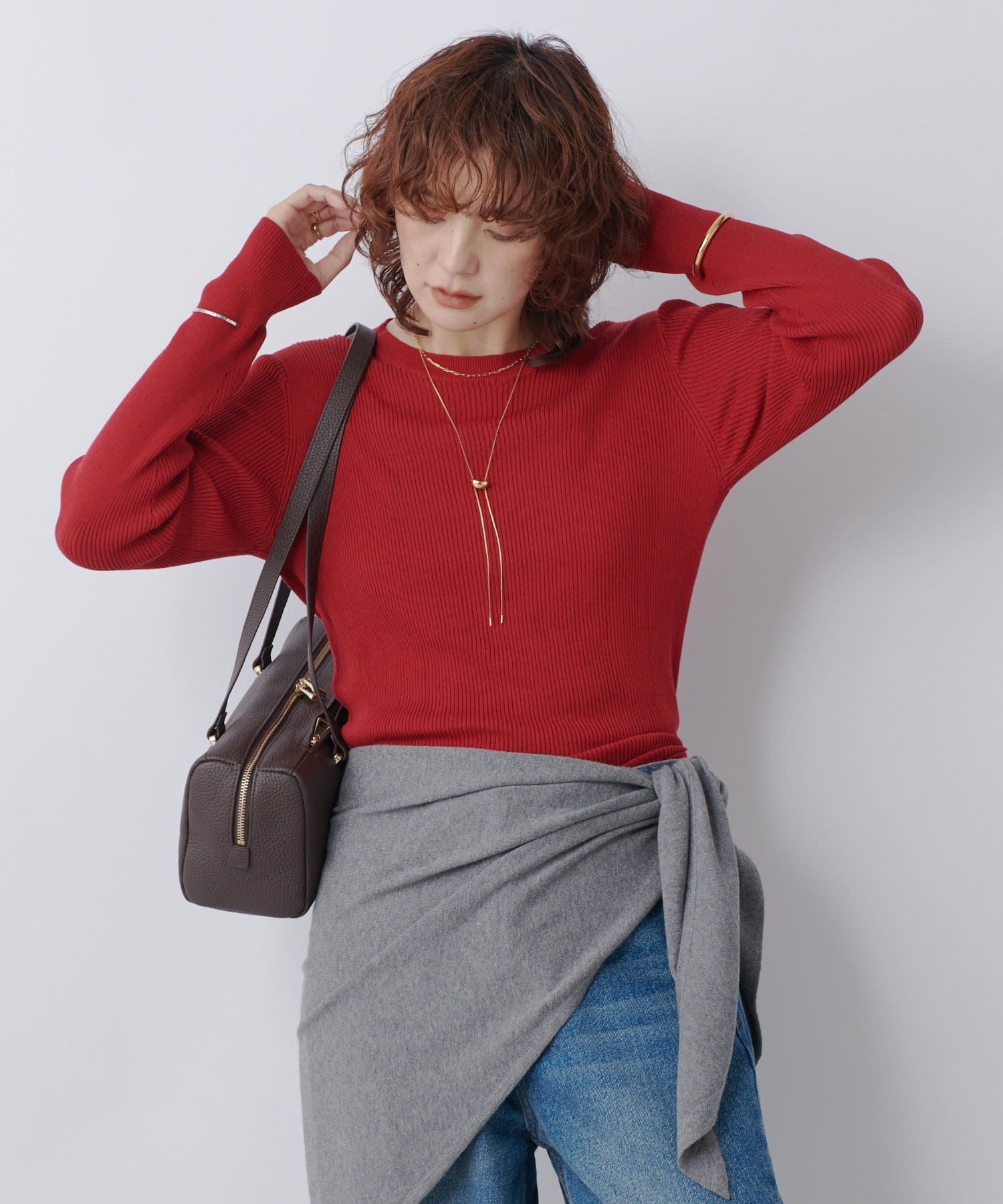 身体のラインを綺麗に見せる縦リブで大人の気品漂う一枚です。