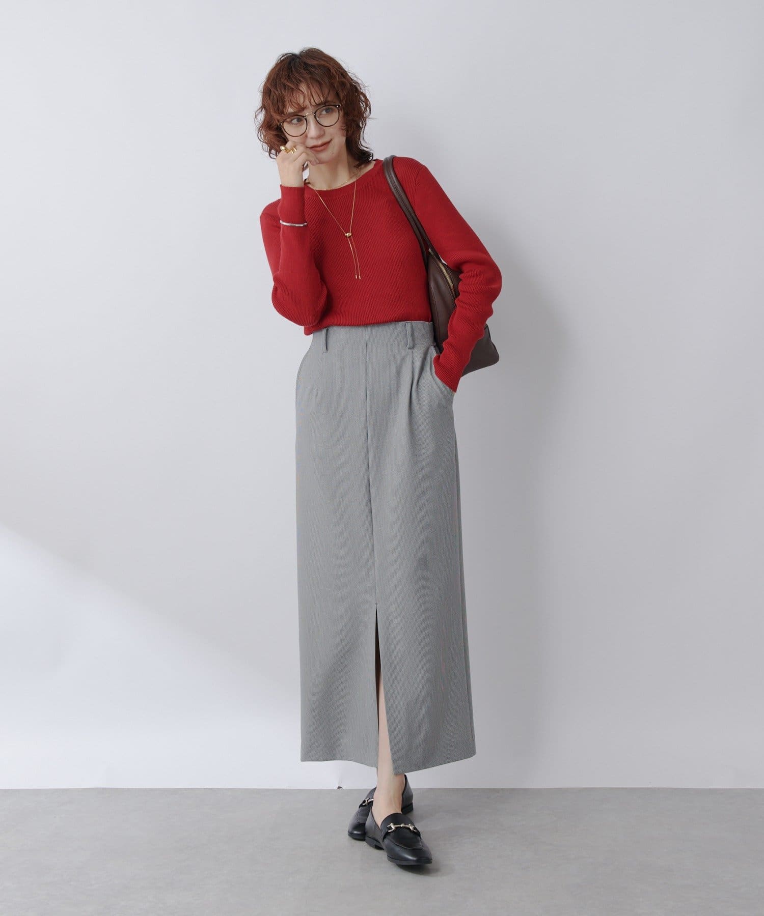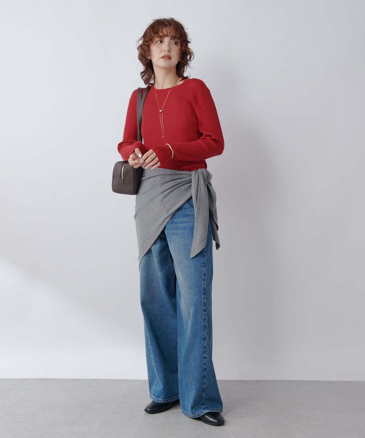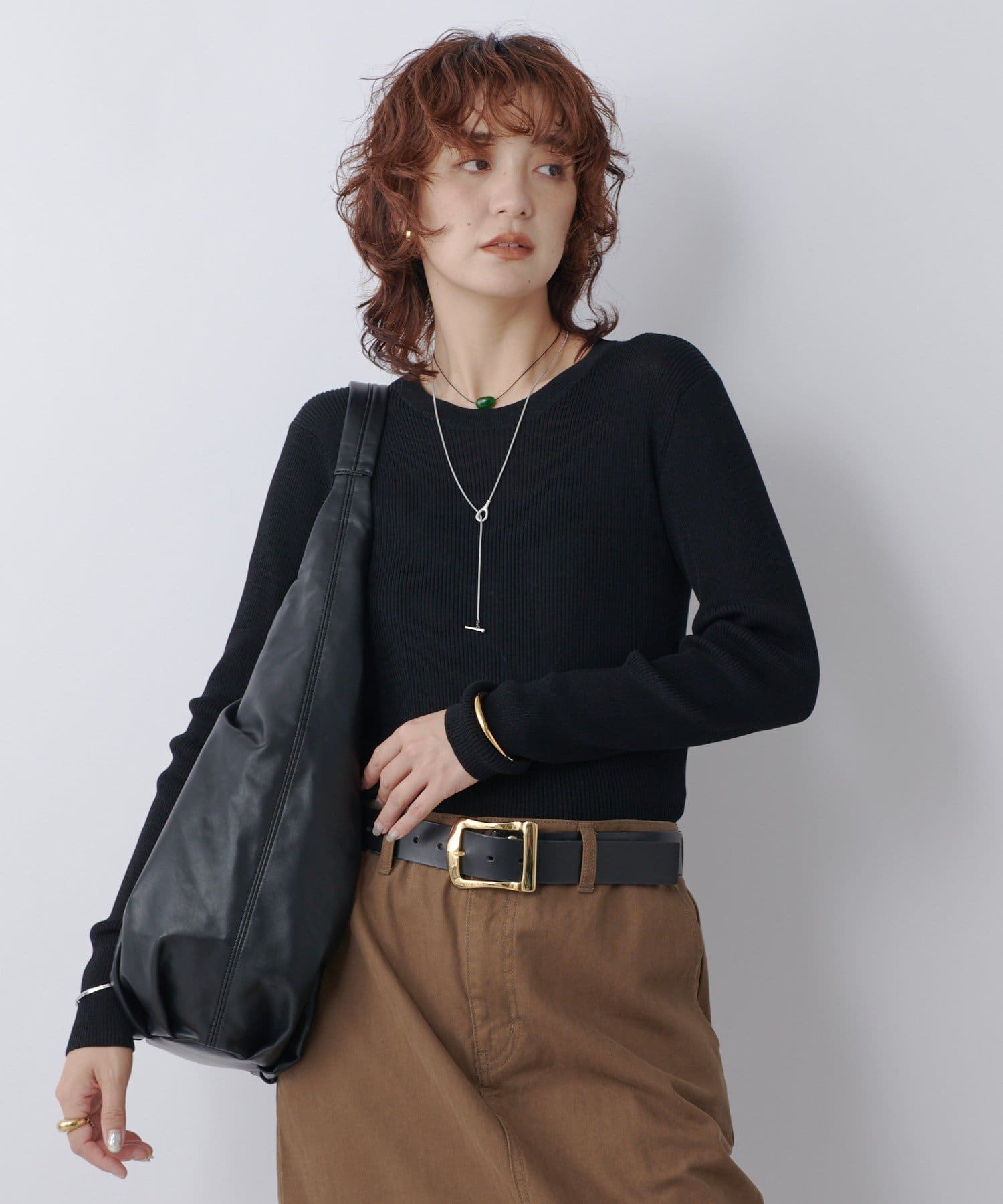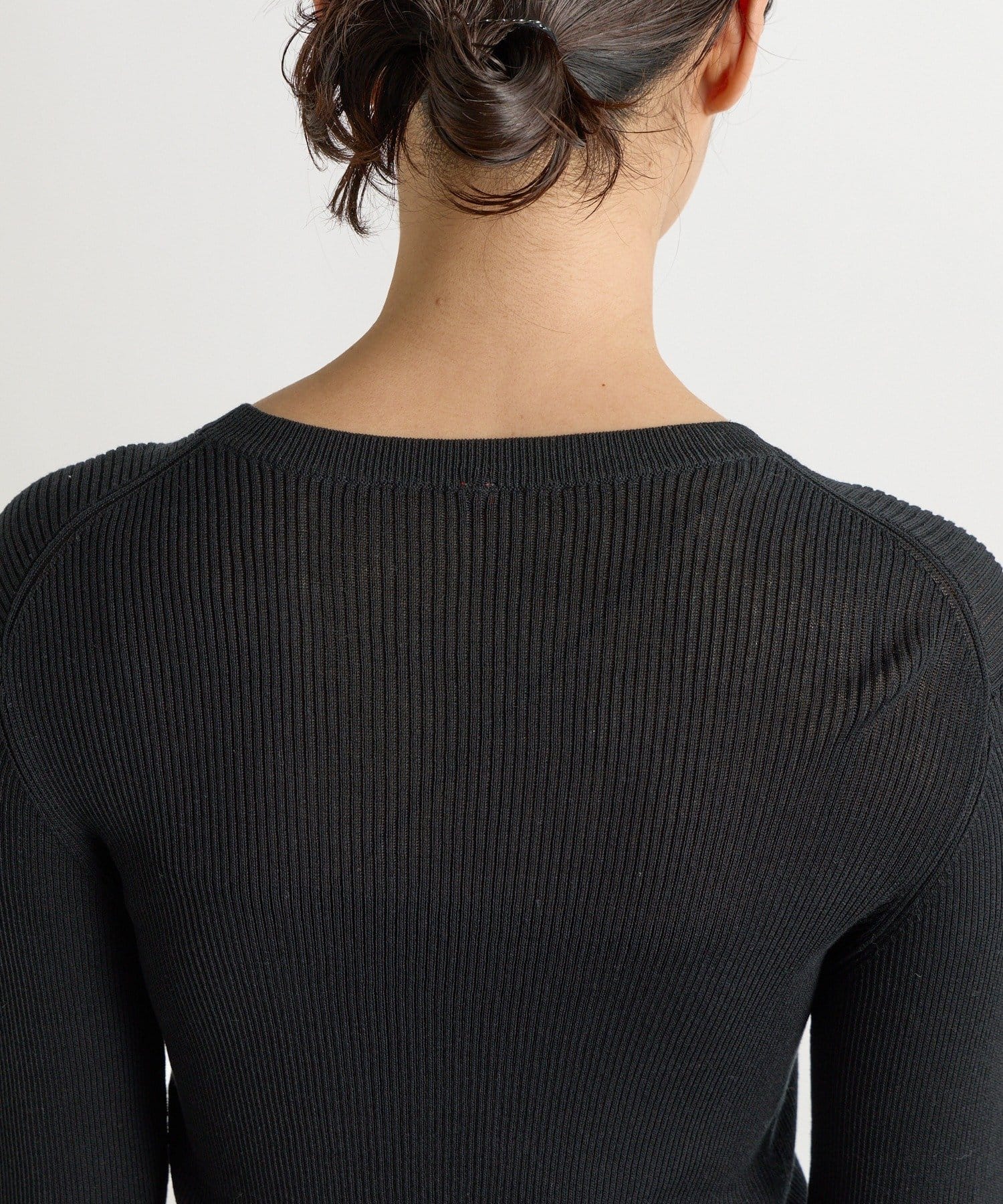 身体のラインを綺麗に見せる縦リブで大人の気品漂う一枚です。