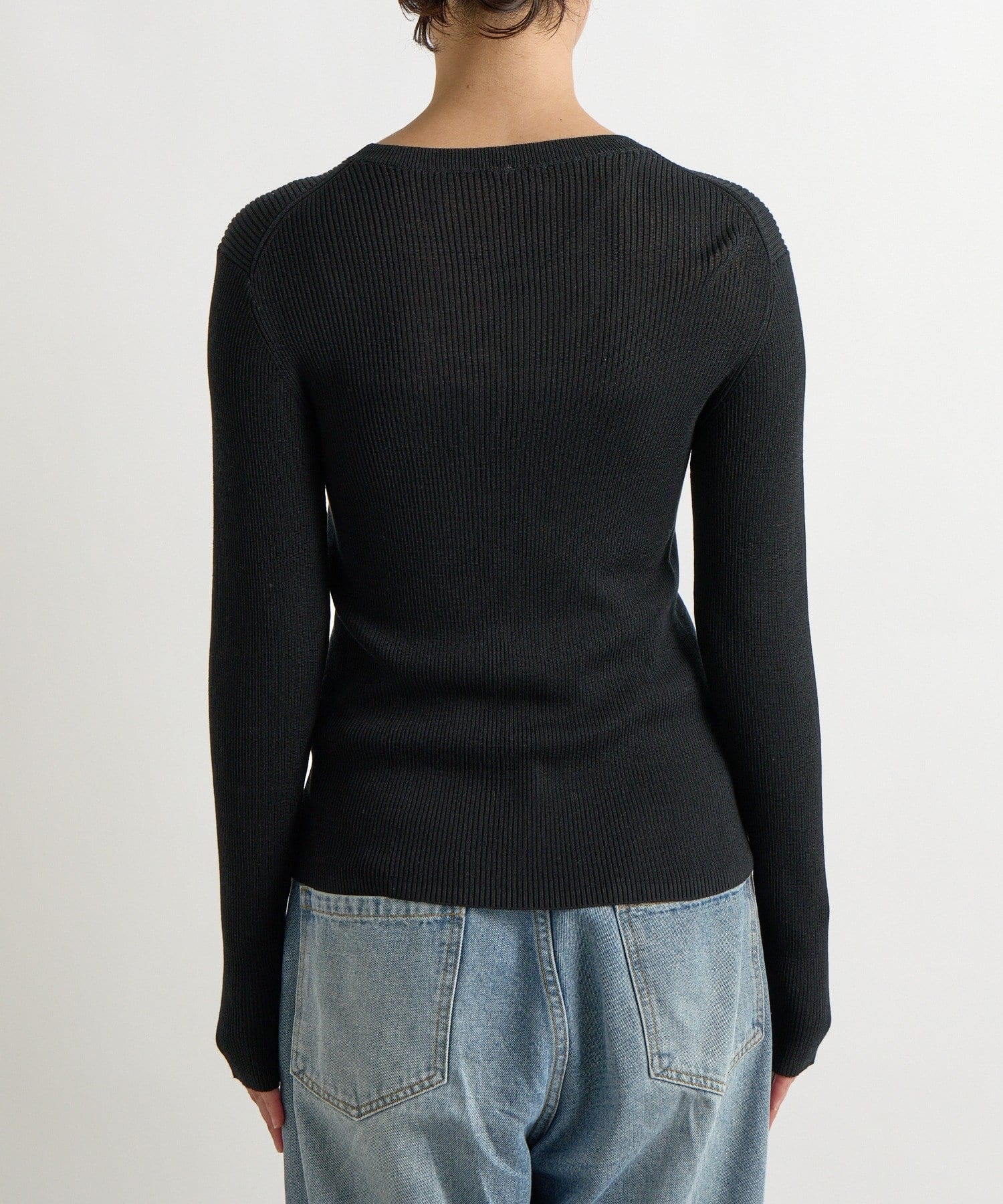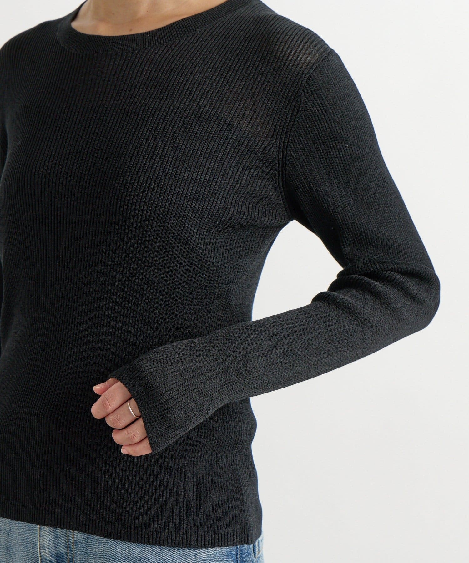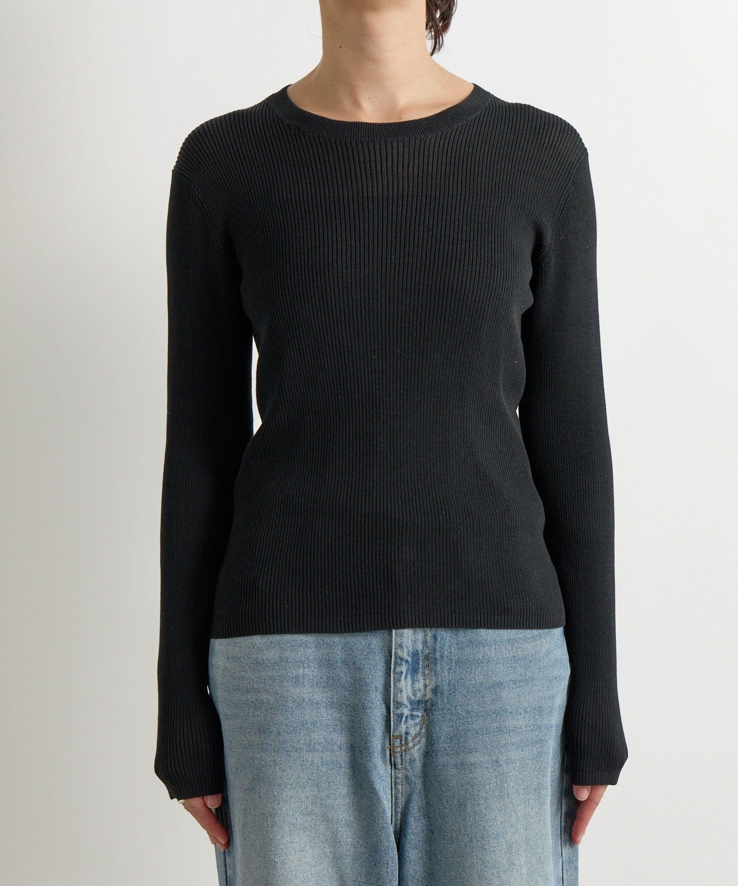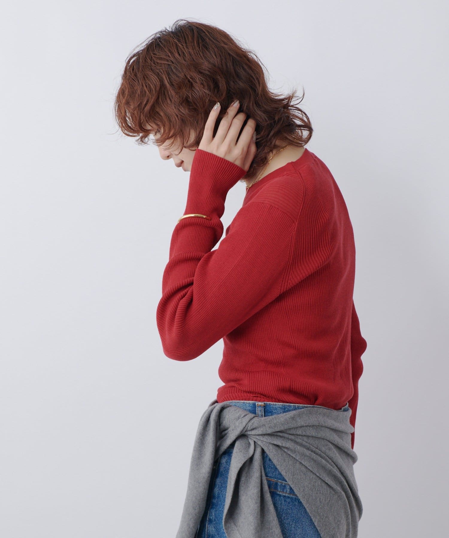 リブ編みのシンプルで普遍的なデザインのニットトップス。
