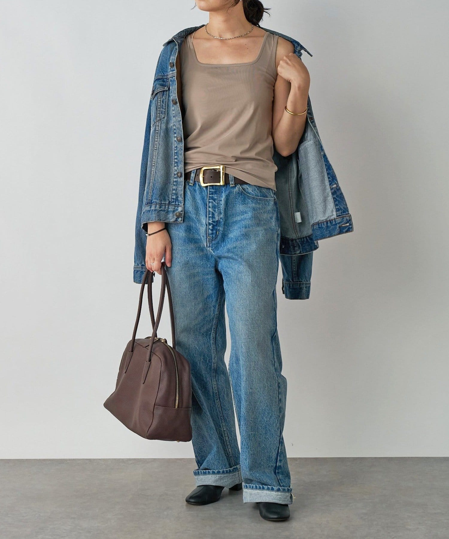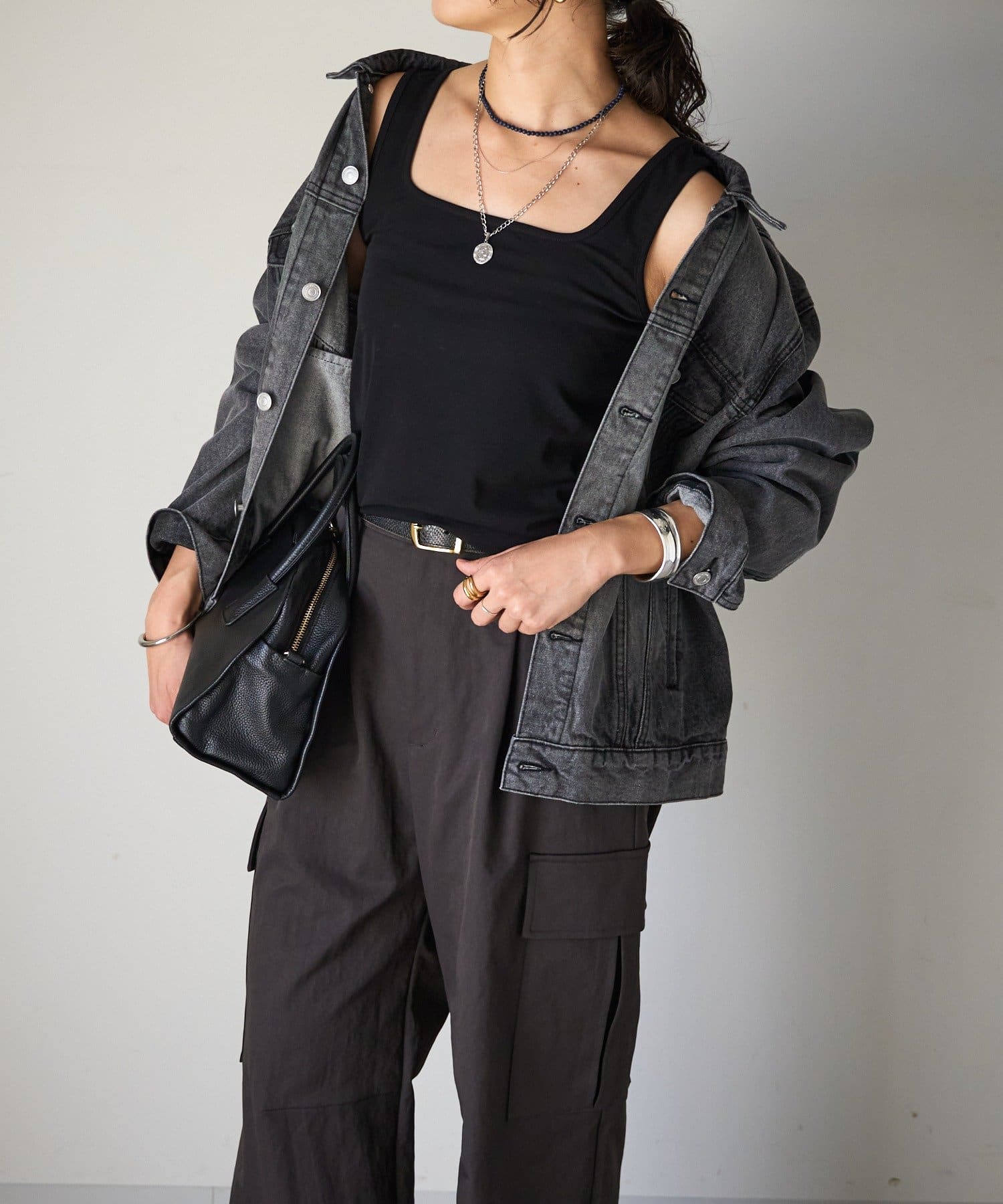 使いやすいスクエアネックで首元に抜け感を