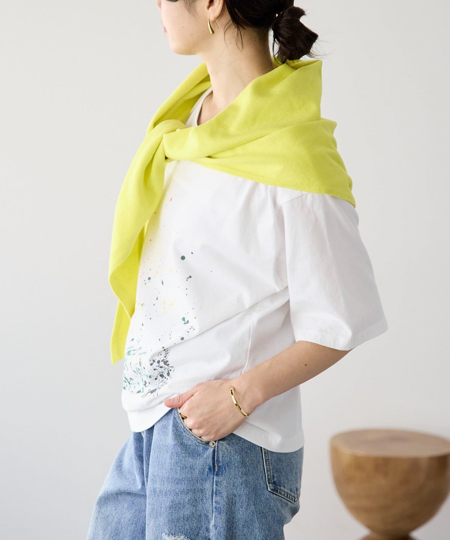 肩にかけたり、結び目を作って軽く巻いたり、頭に巻き付けたり、