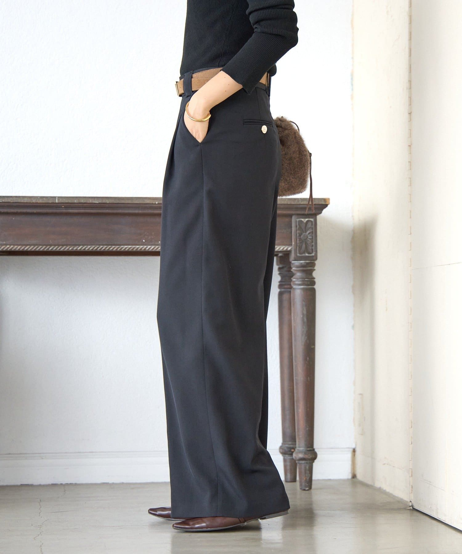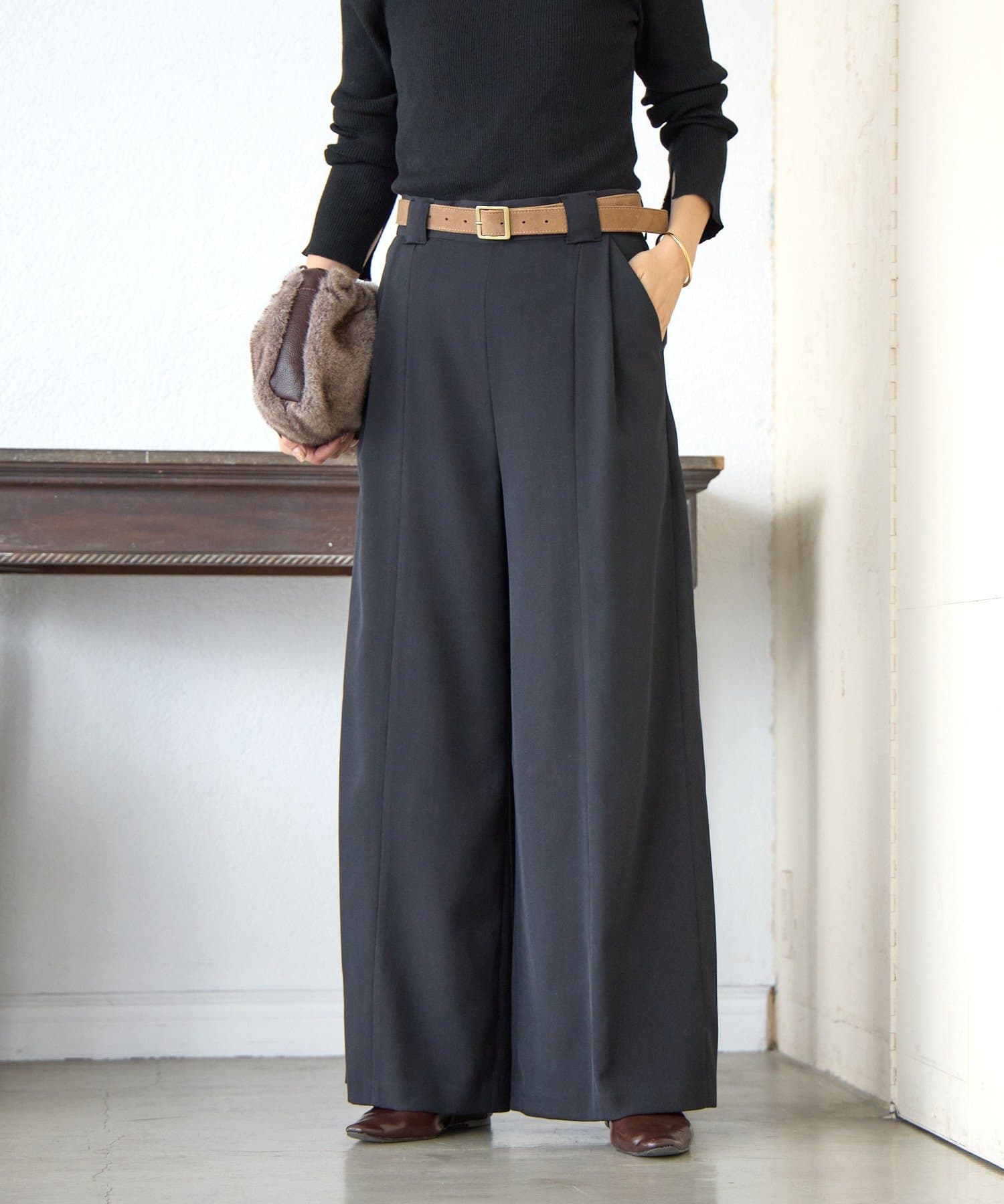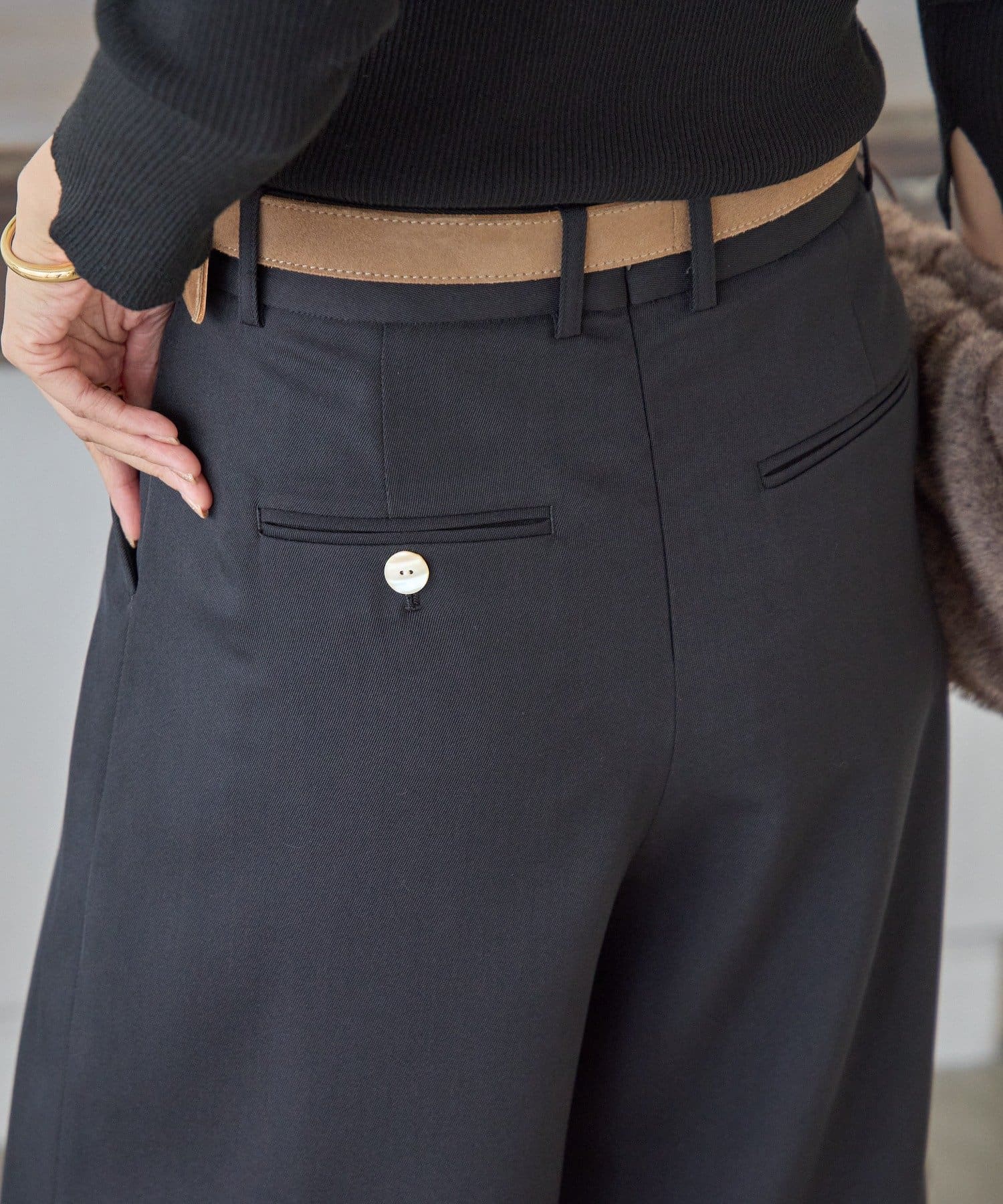 ・素材の良さが引き立つワイドシルエットで着映えする1本