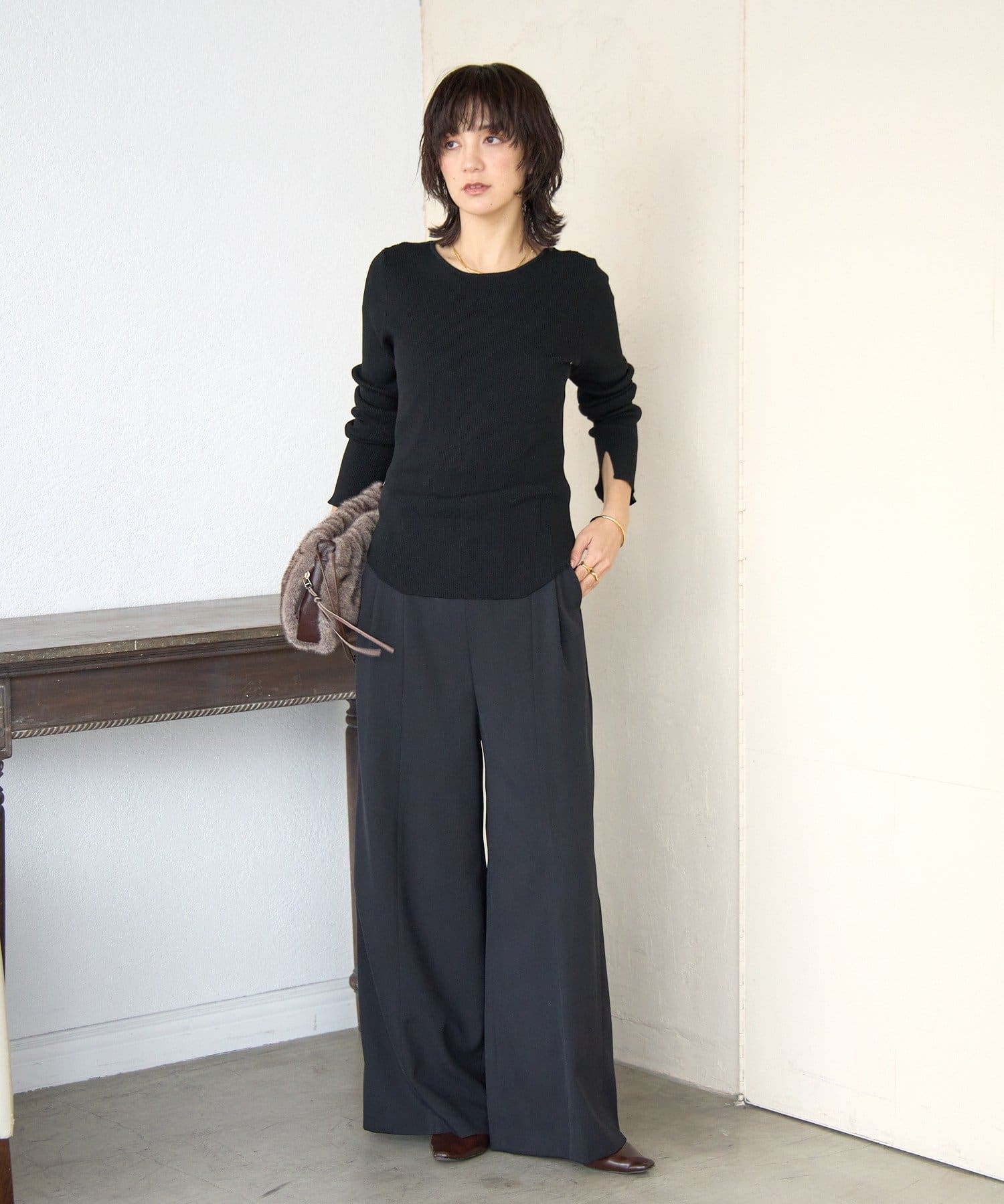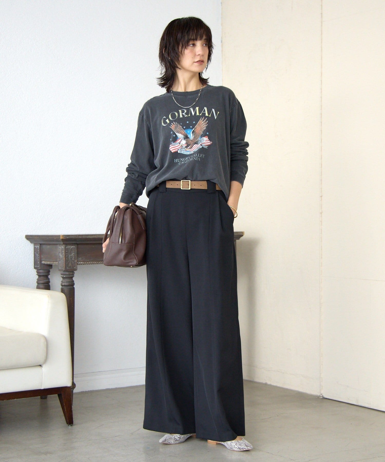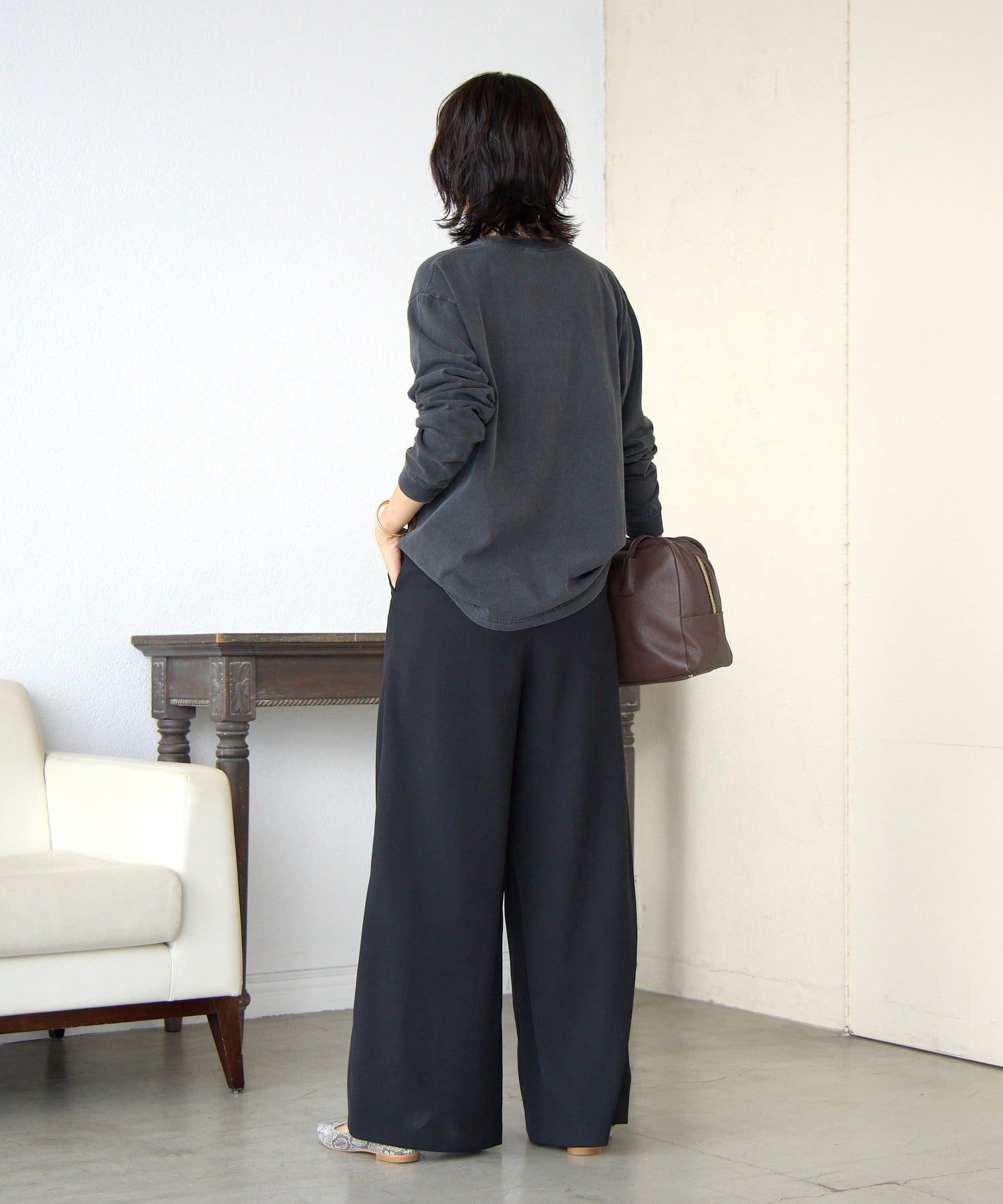 ・素材の良さが引き立つワイドシルエットで着映えする1本