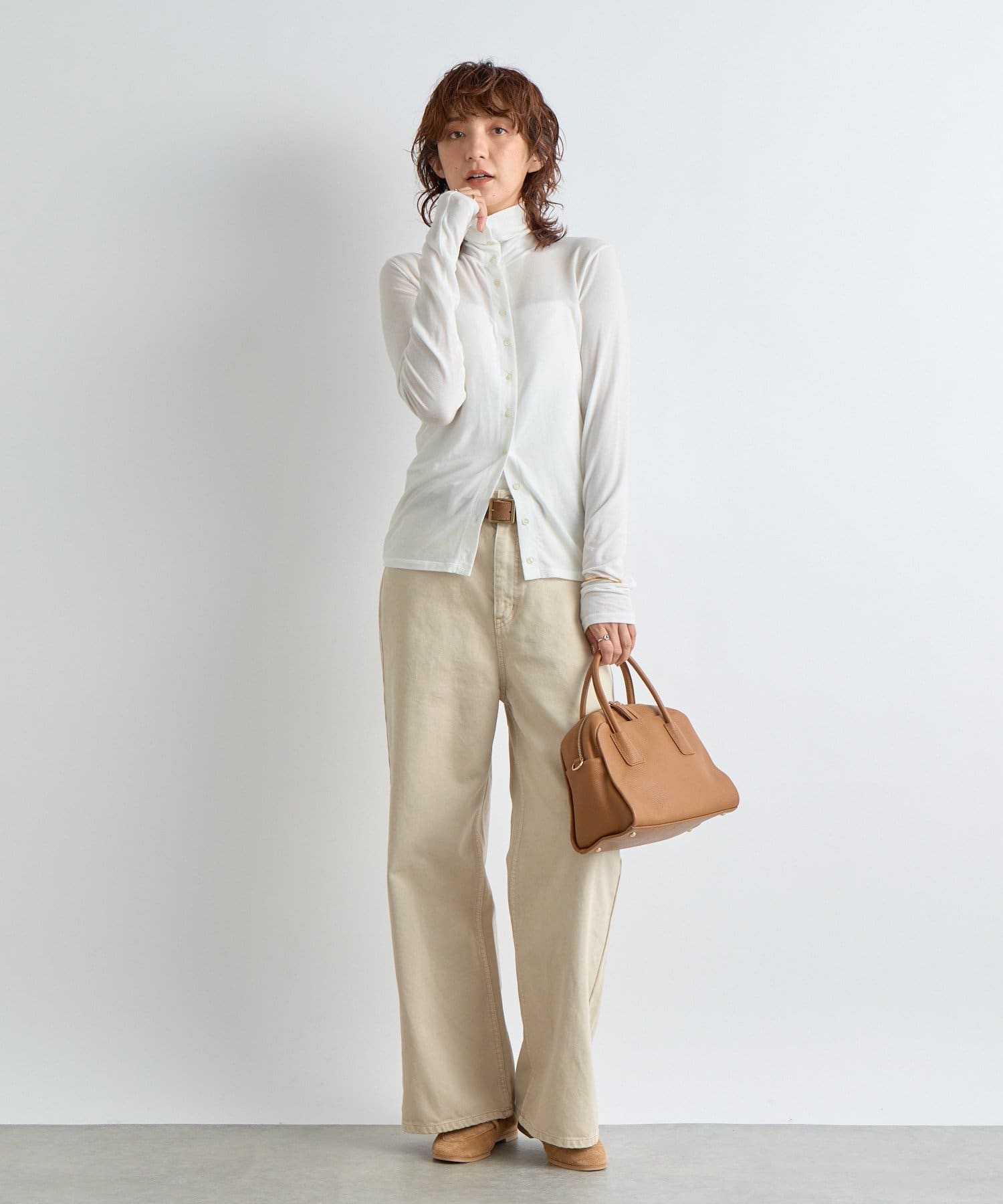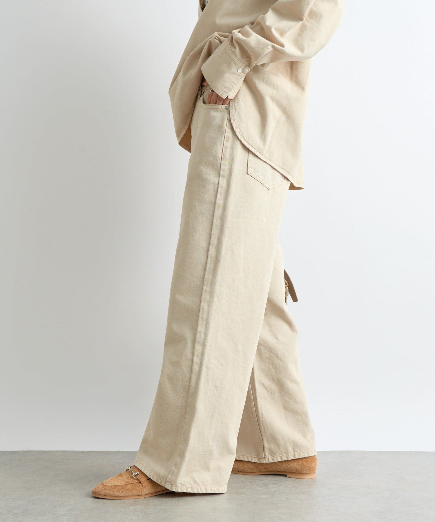 ・落ち感がある生地感でワイドシルエットでもすっきりとしたライン