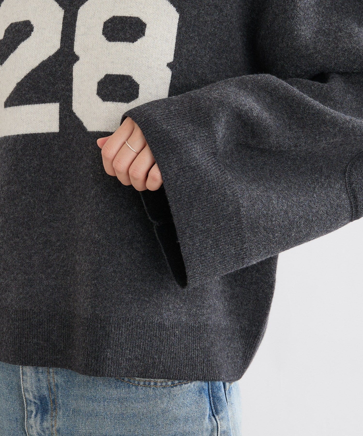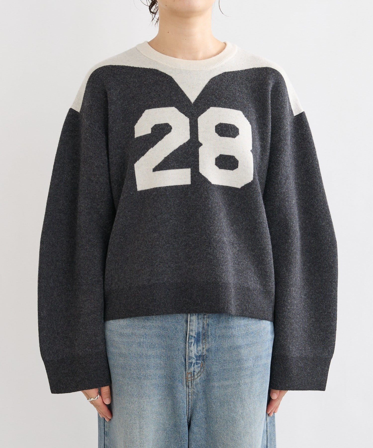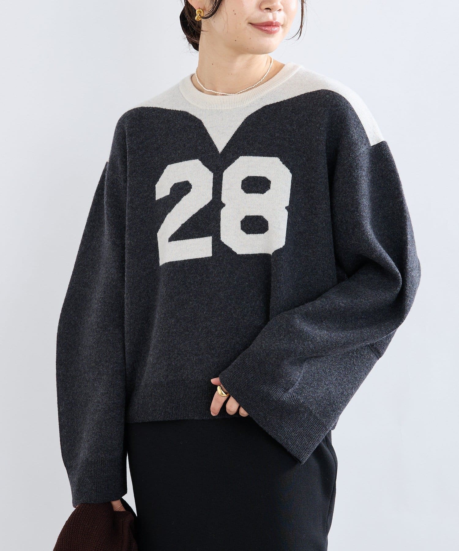 ヴィンテージ感あるキャッチーなナンバリングニット