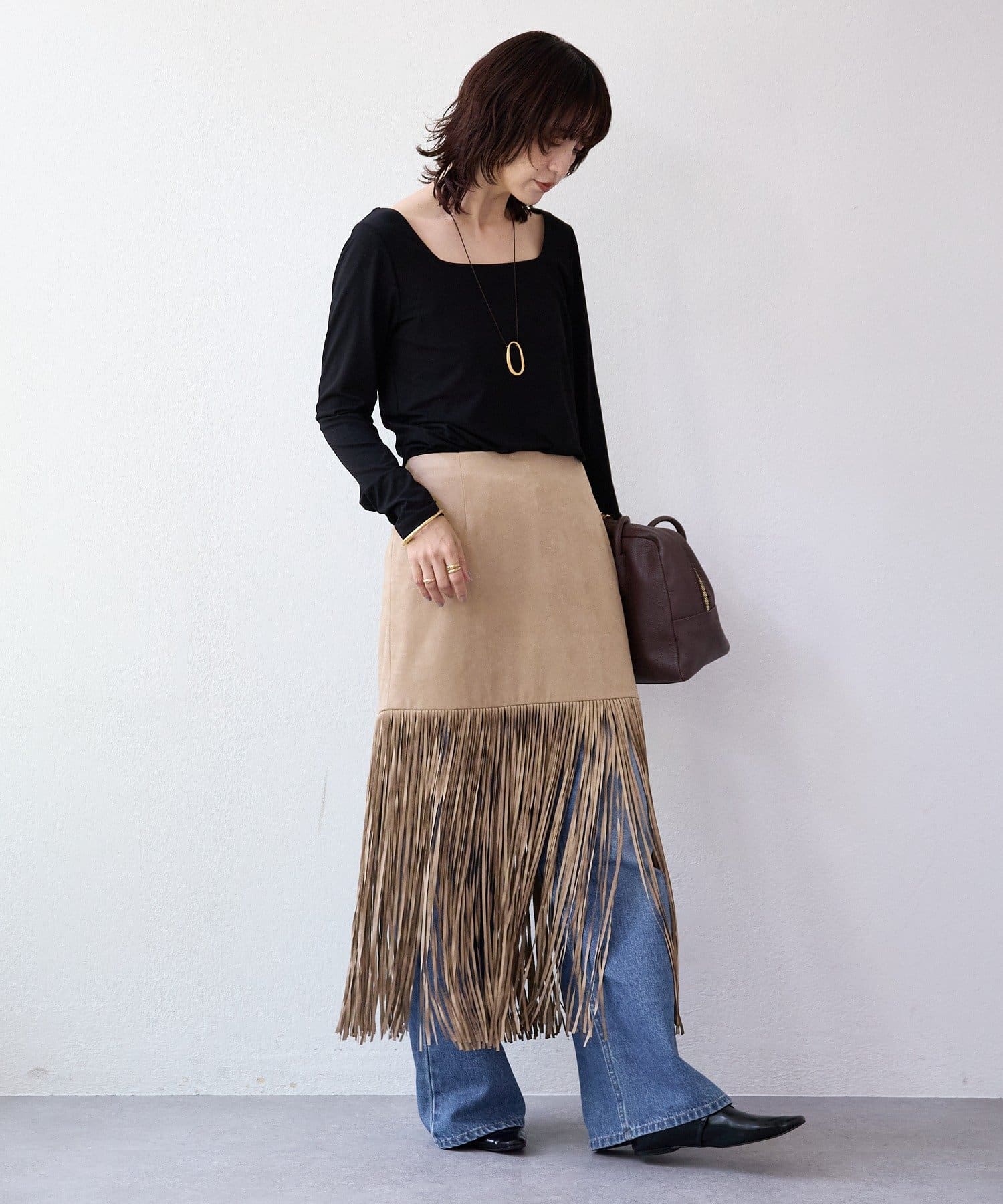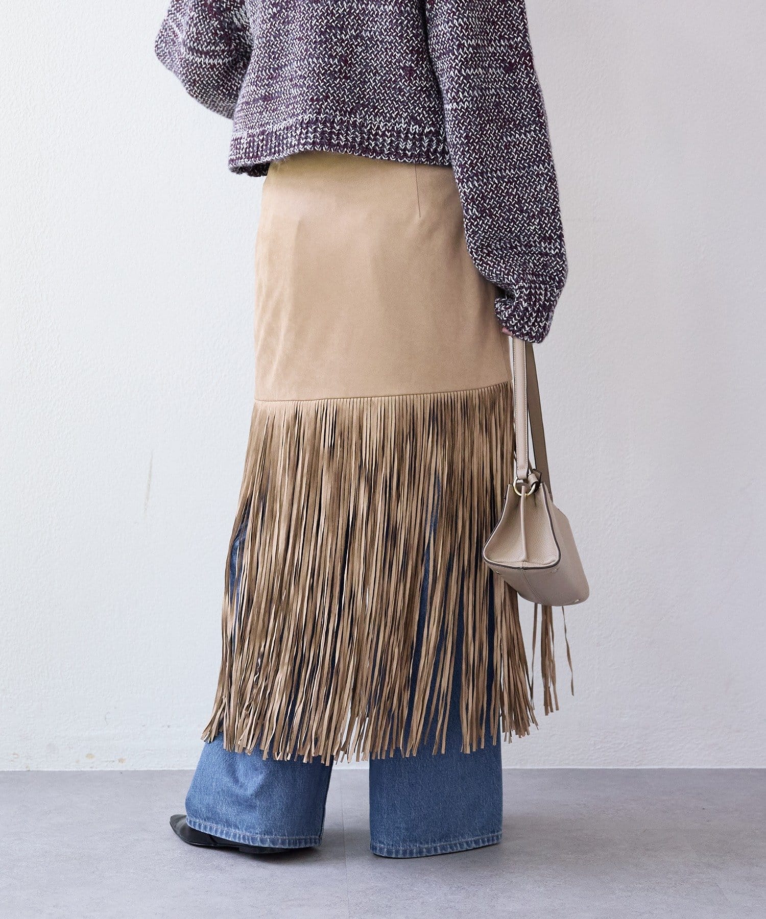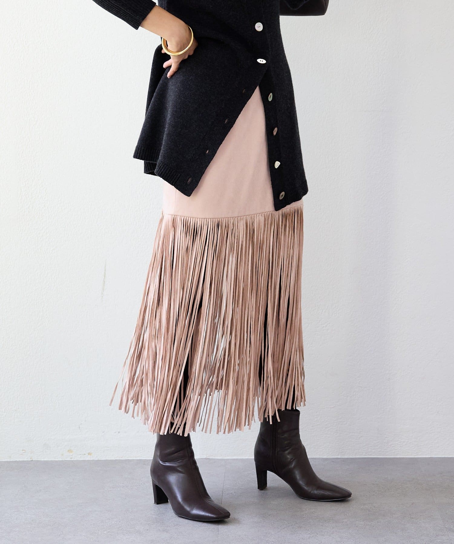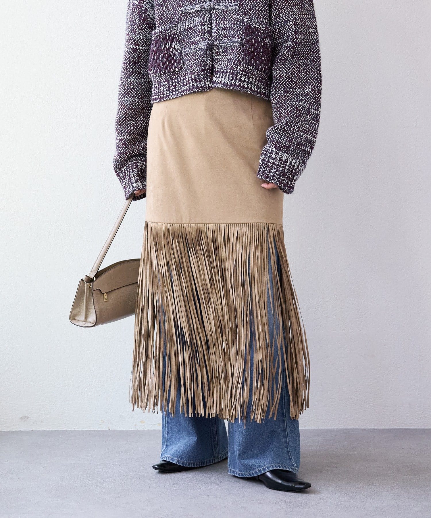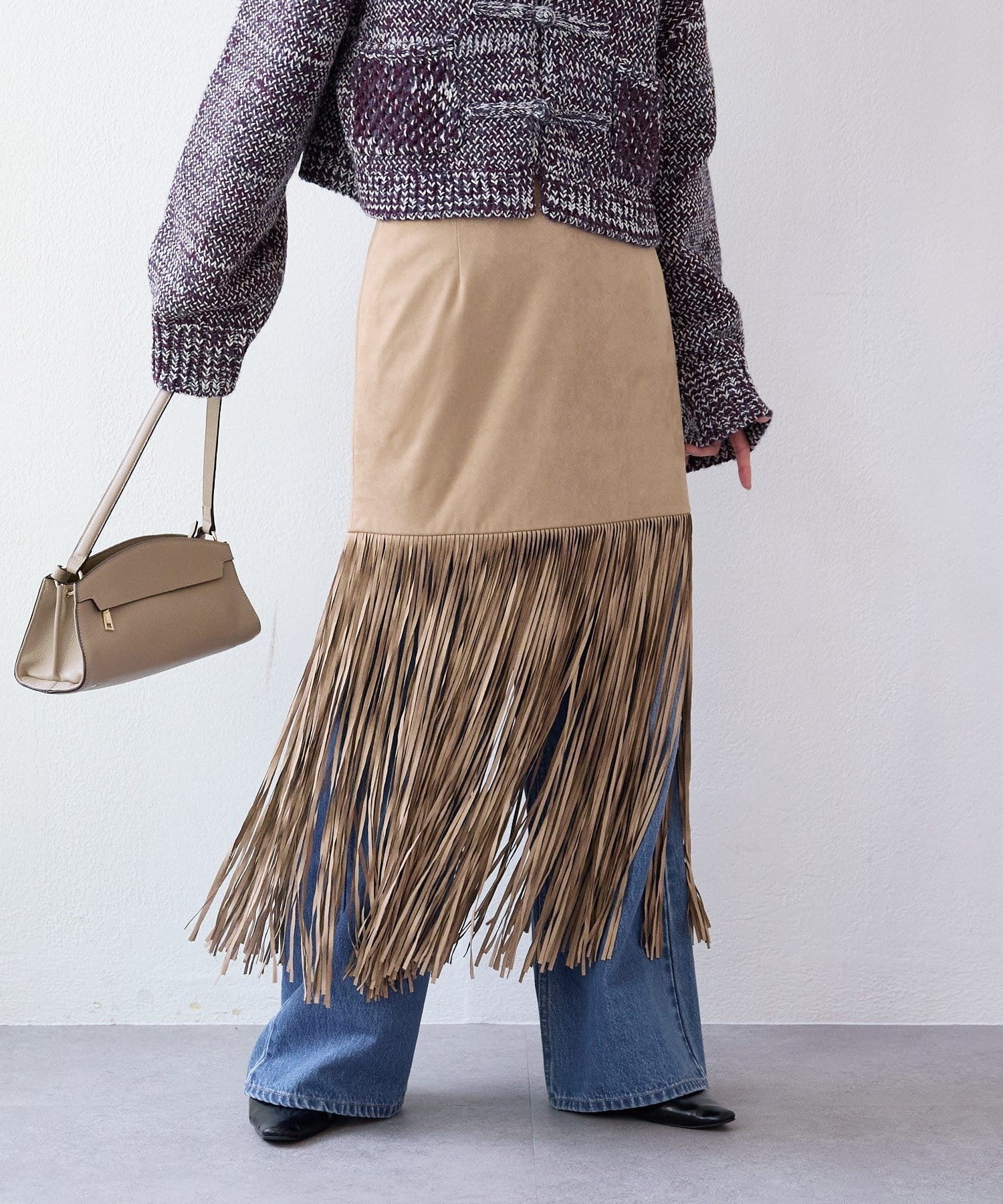 ・大胆なフリンジディテールが目を惹くスカート