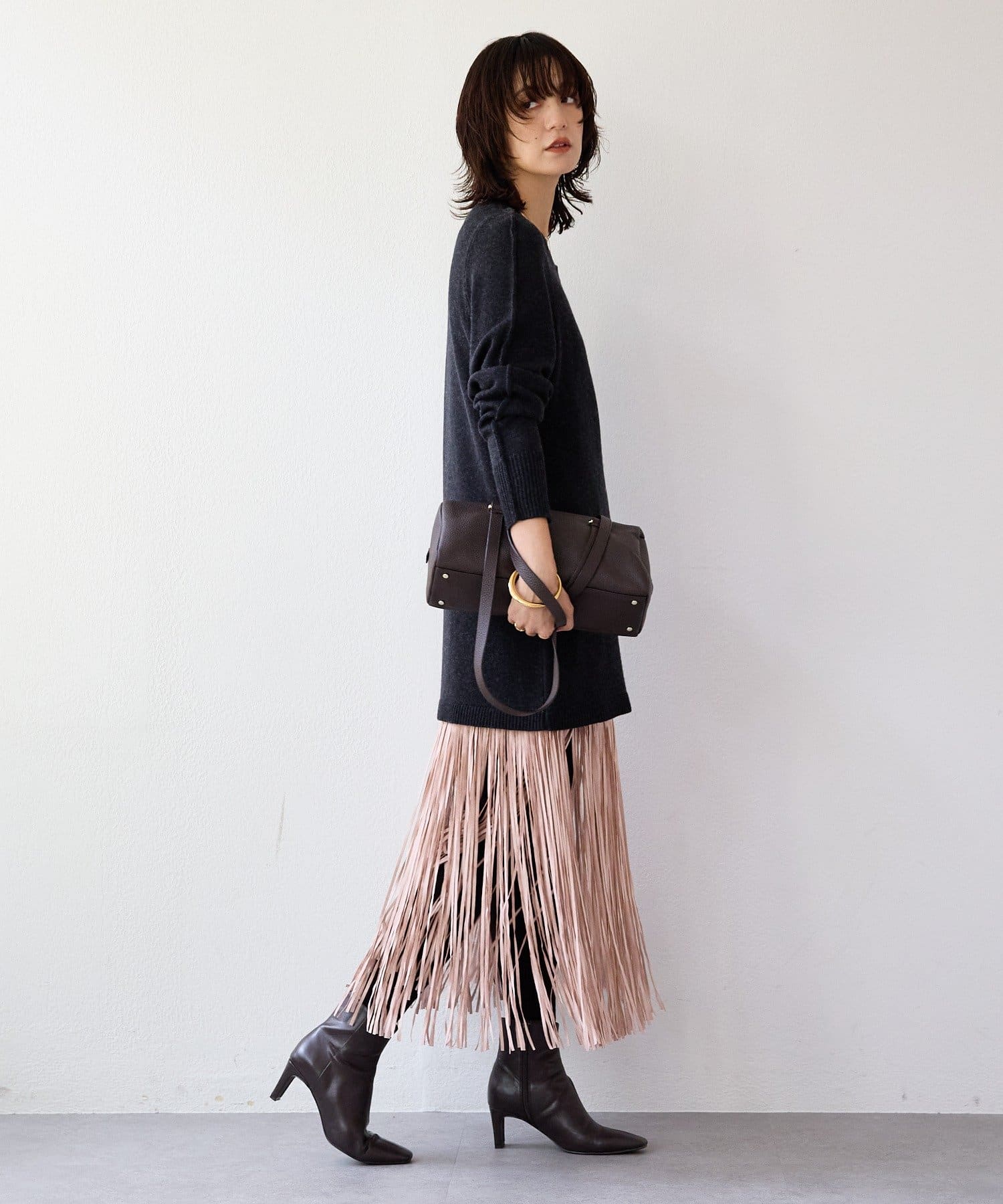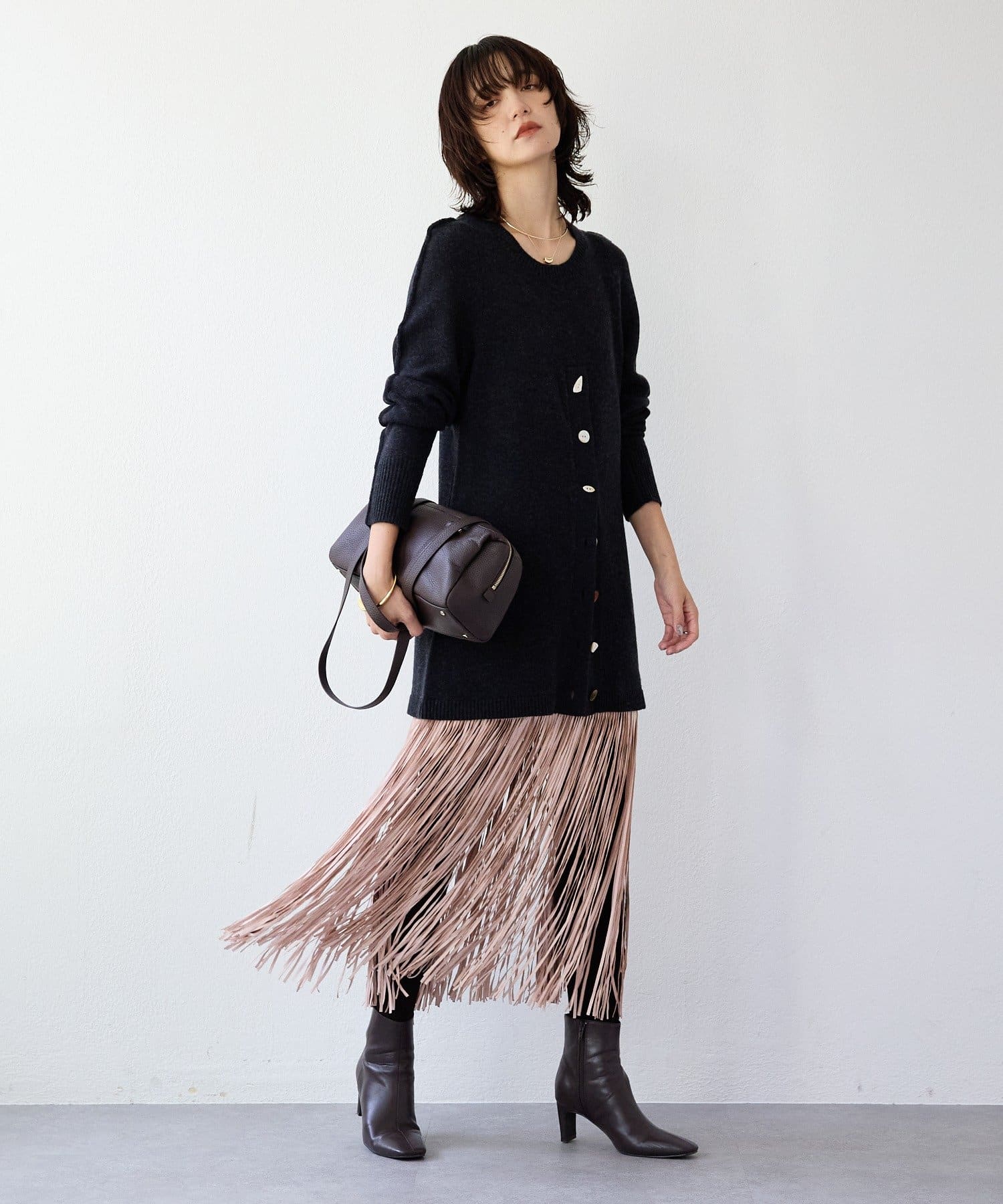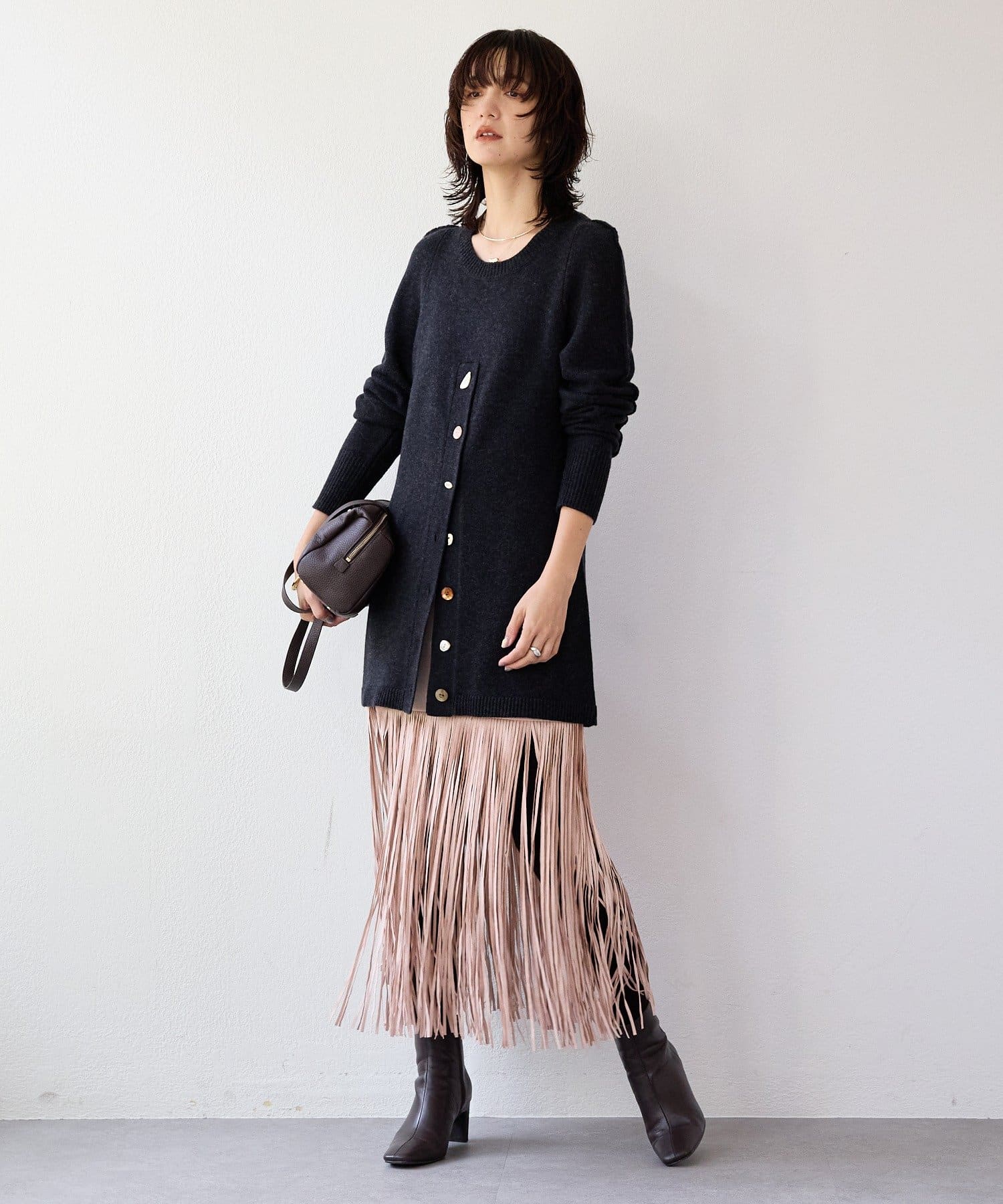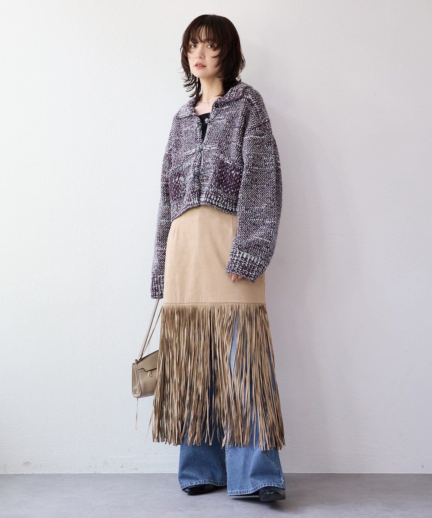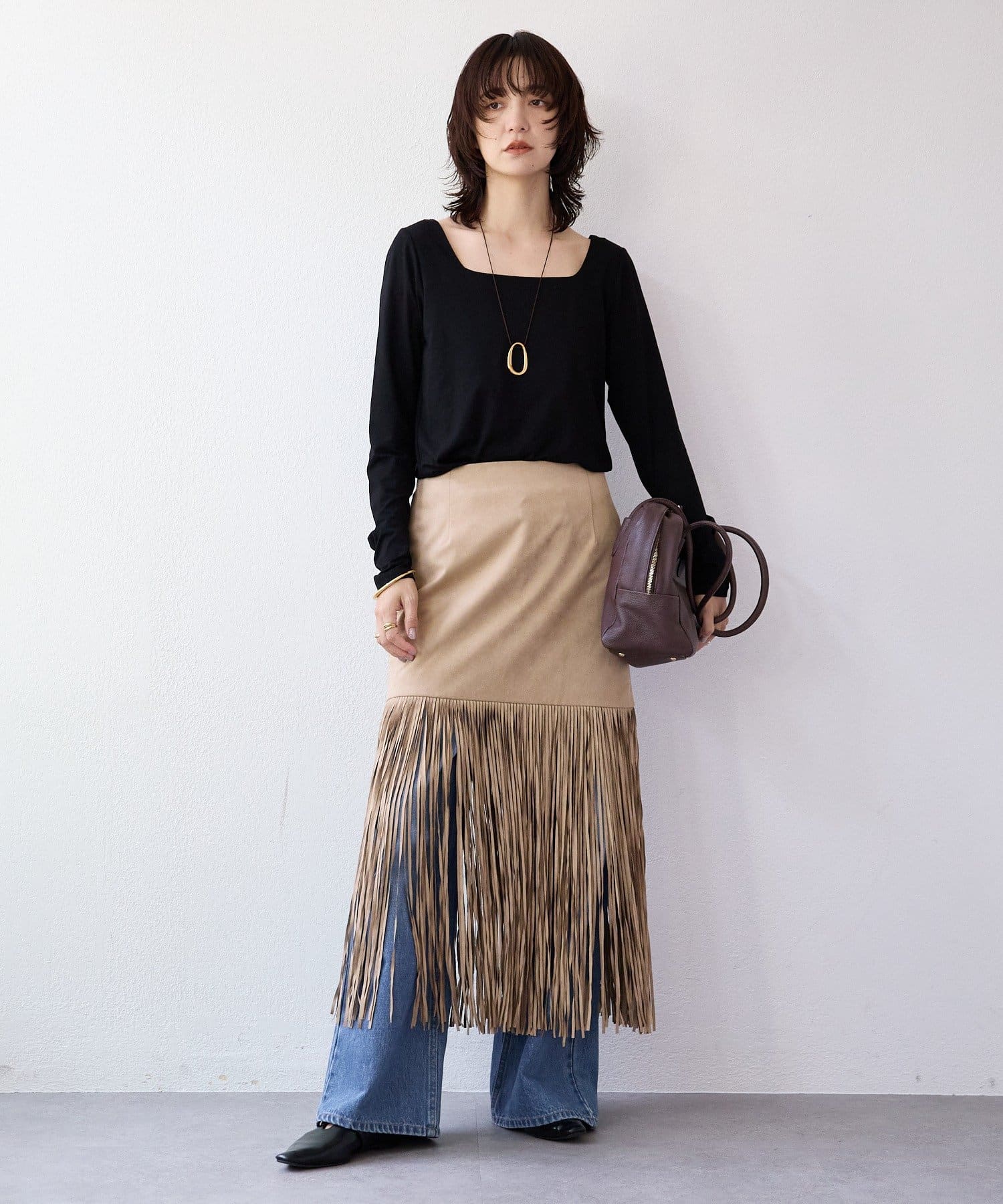 ・大胆なフリンジディテールが目を惹くスカート