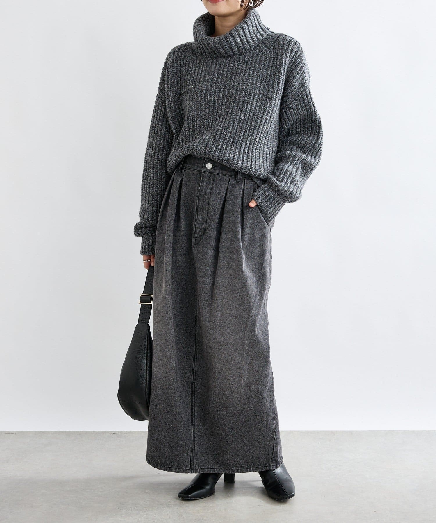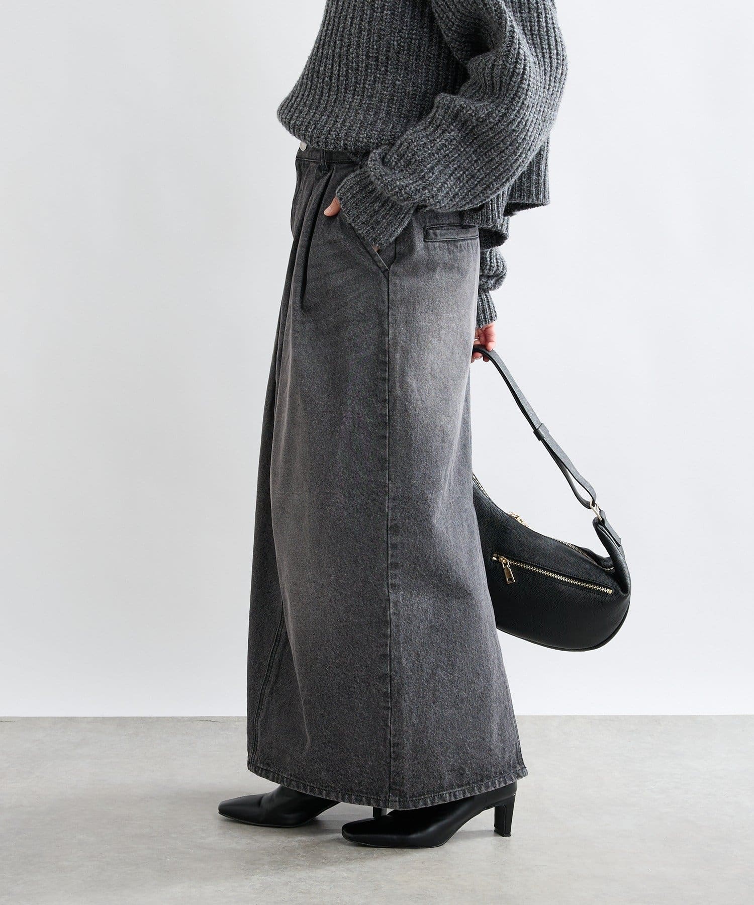 予約【MONN.:.(モン)】タックコクーンマキシスカート