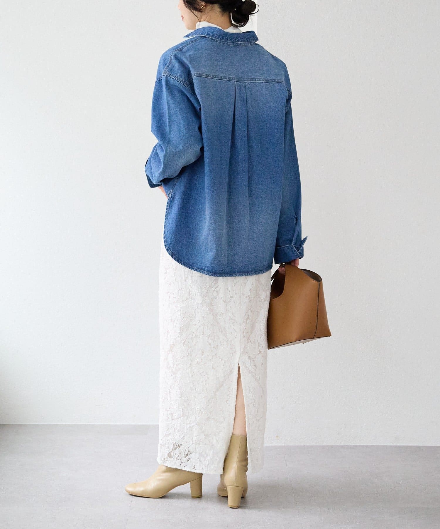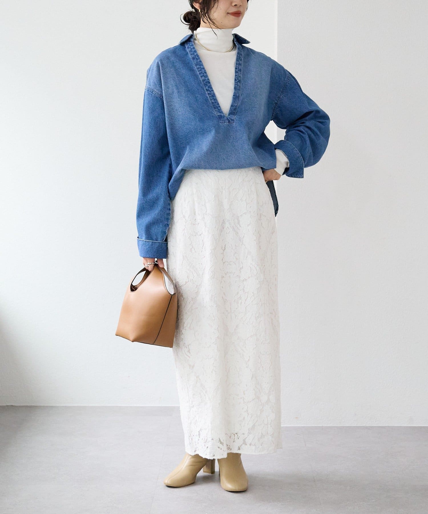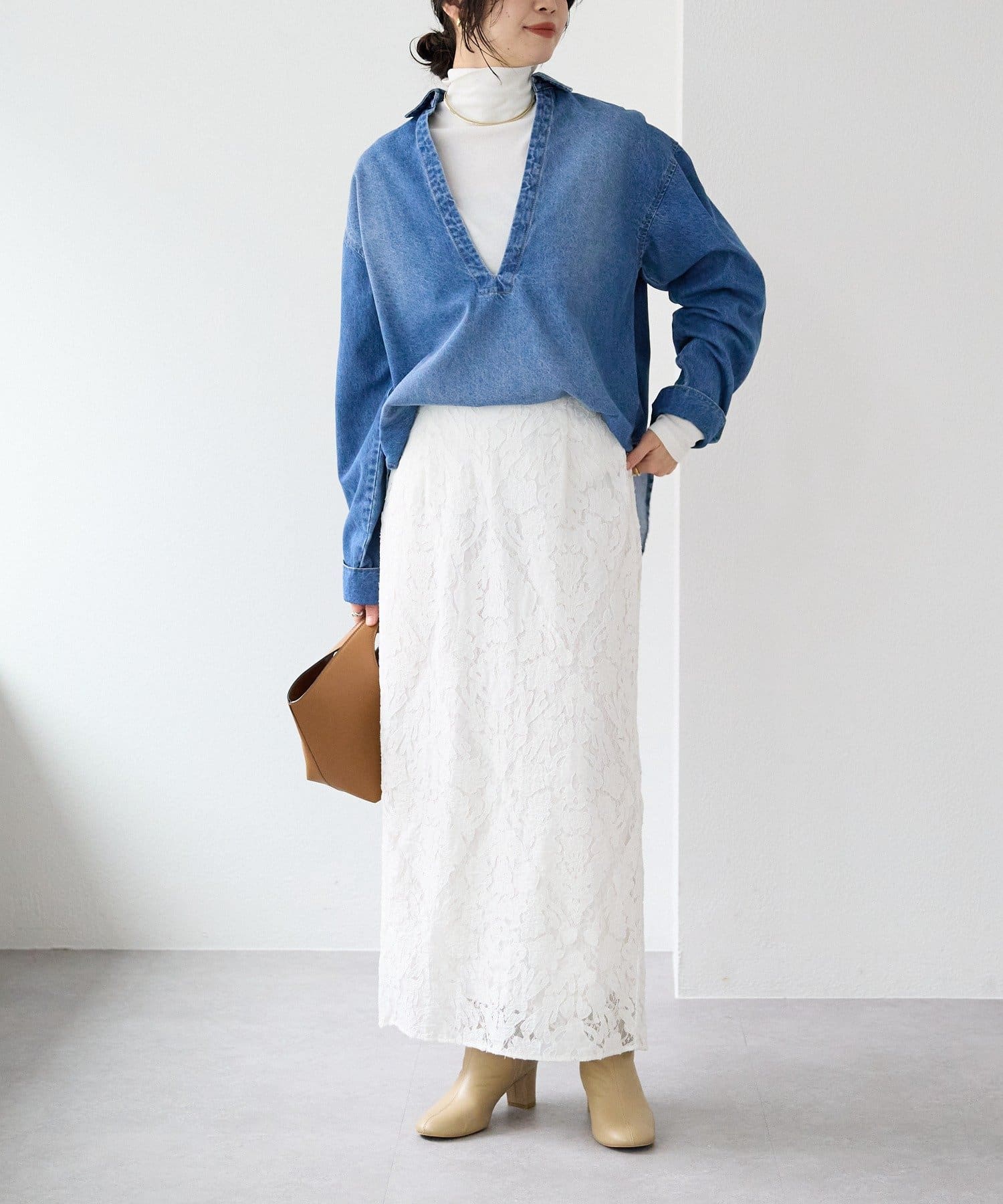 ・トレンドのクラフトムードたっぷりの素材を生かしたミニマルなタイトスカート
