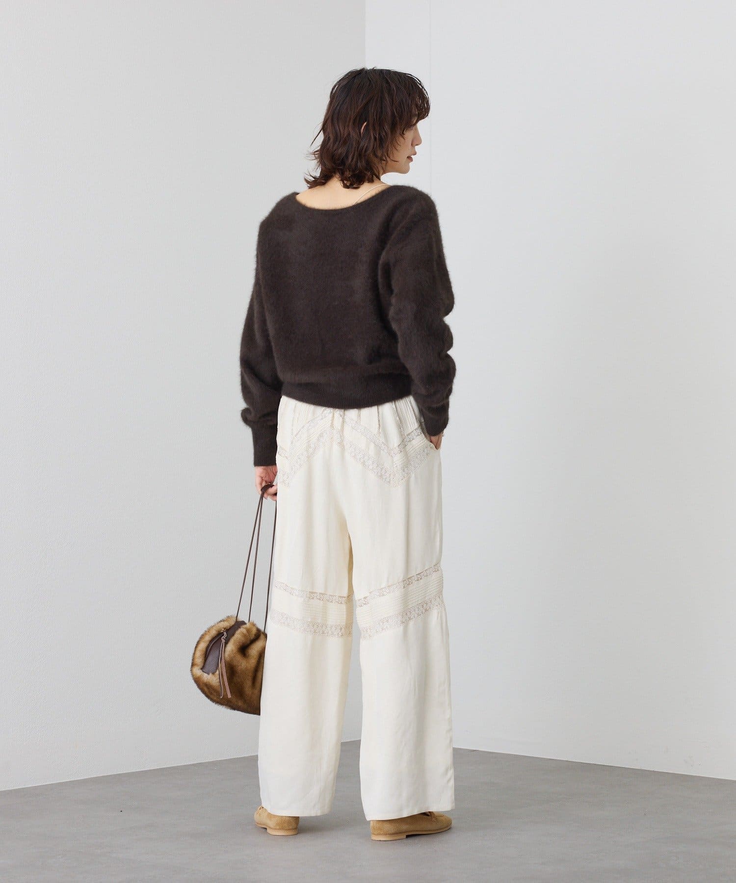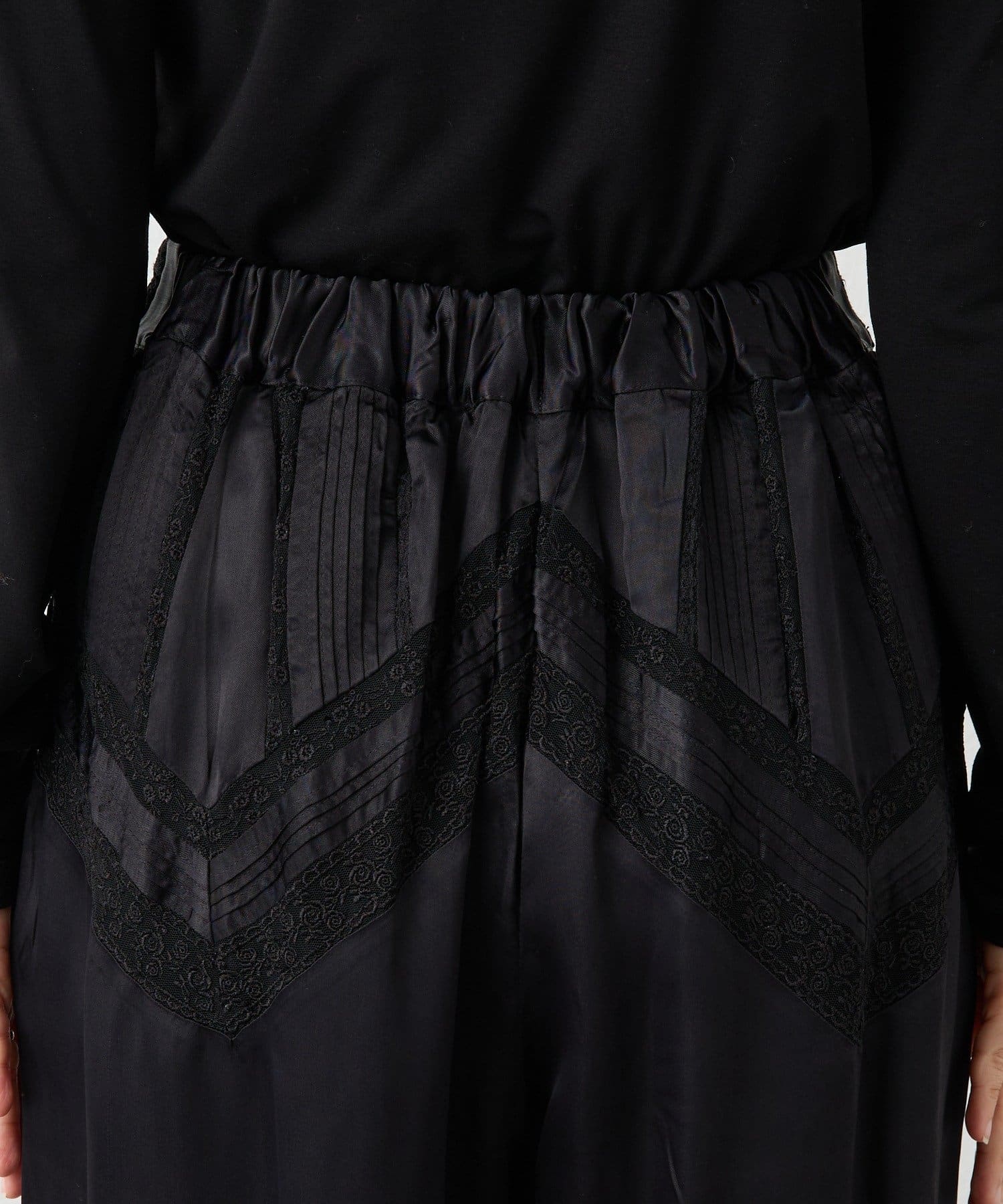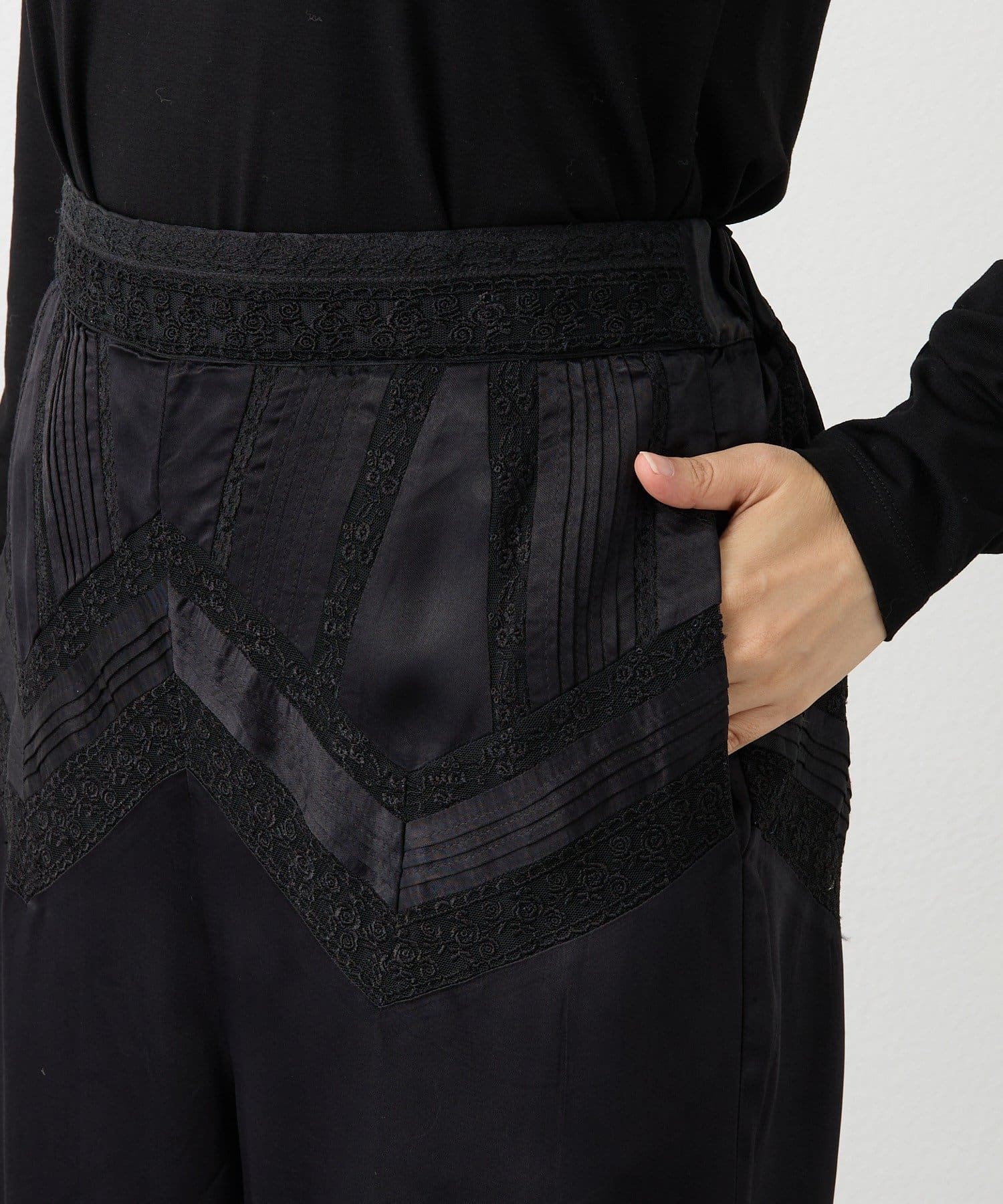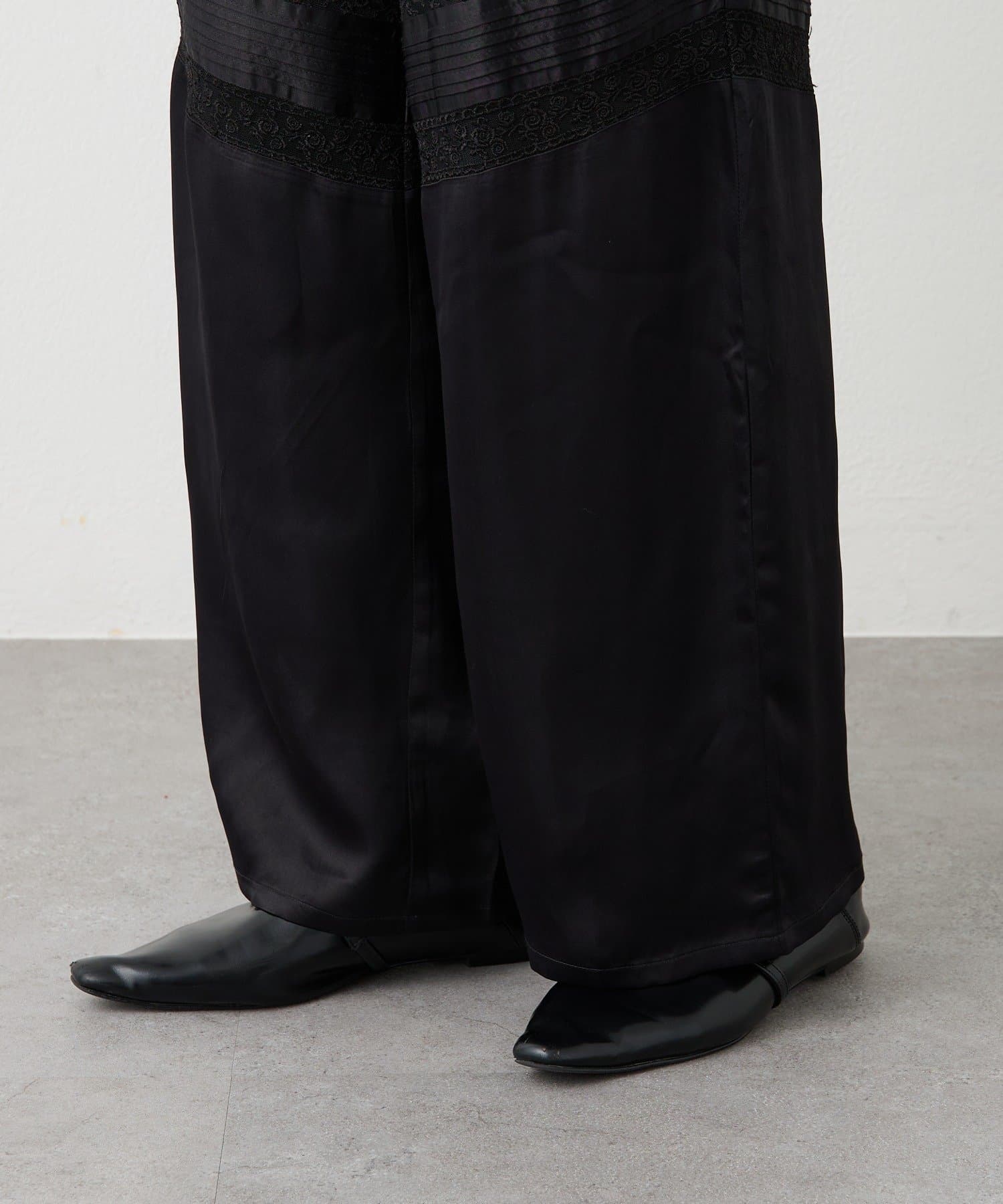 ・ウエスト部分と膝部分にピンタックとレースを切り替えたディテールを入れたイージーパンツ