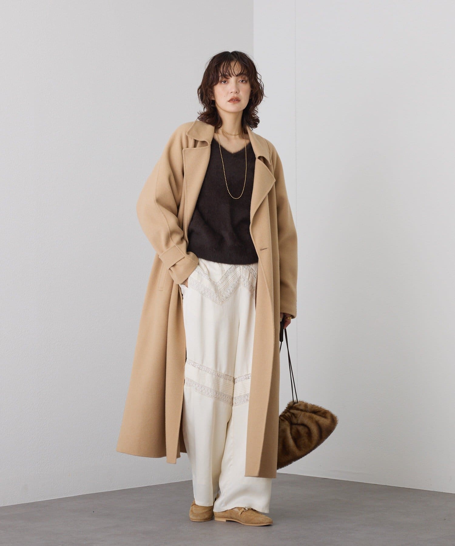 ・素材の光沢感がニットのスタイリングに軽さを出してくれます。