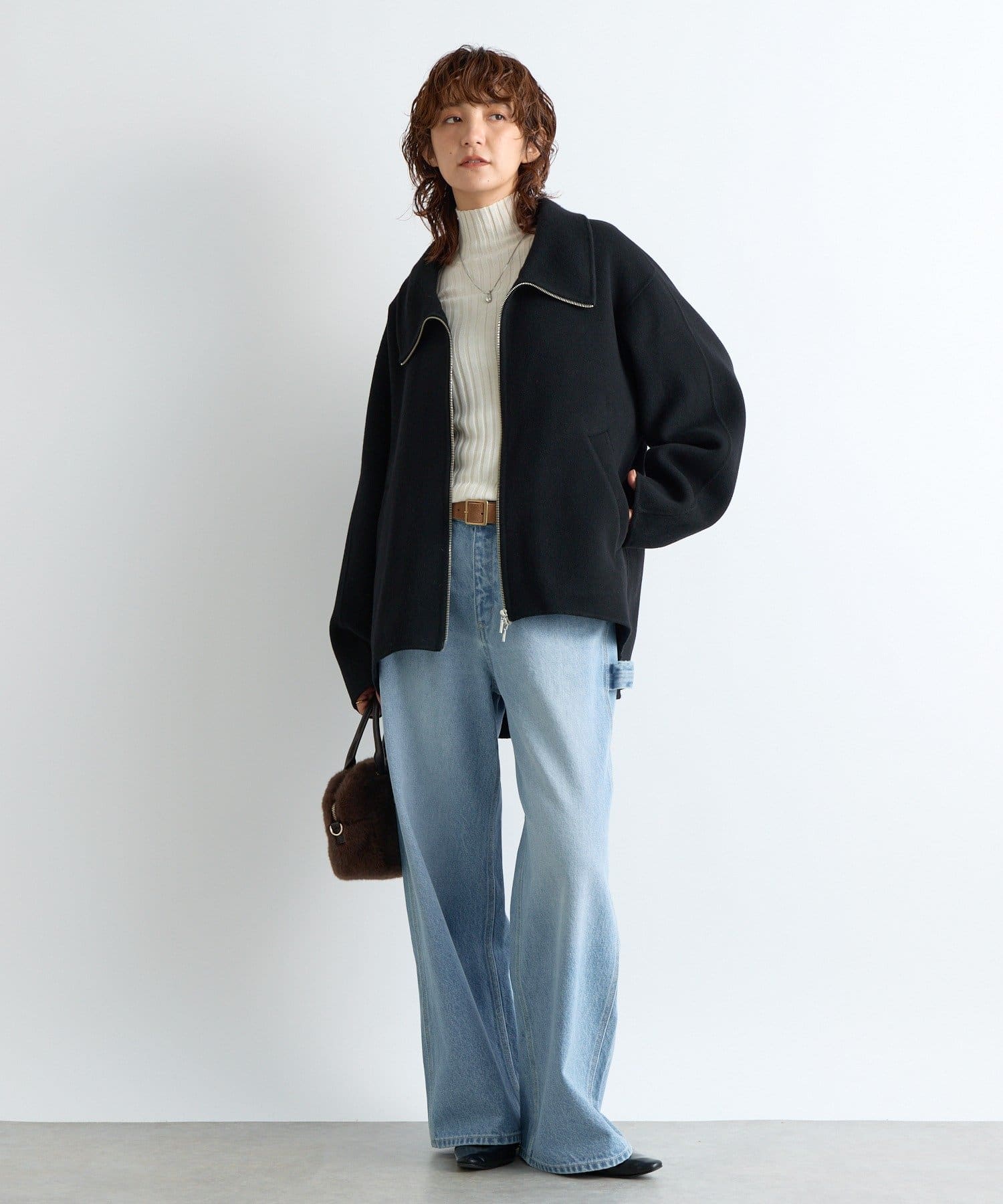 ・冬素材ニット、アウターとのスタイリングにも映える明るいブルーカラーを採用