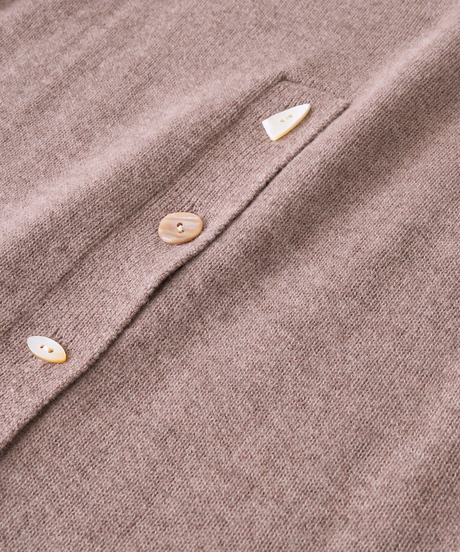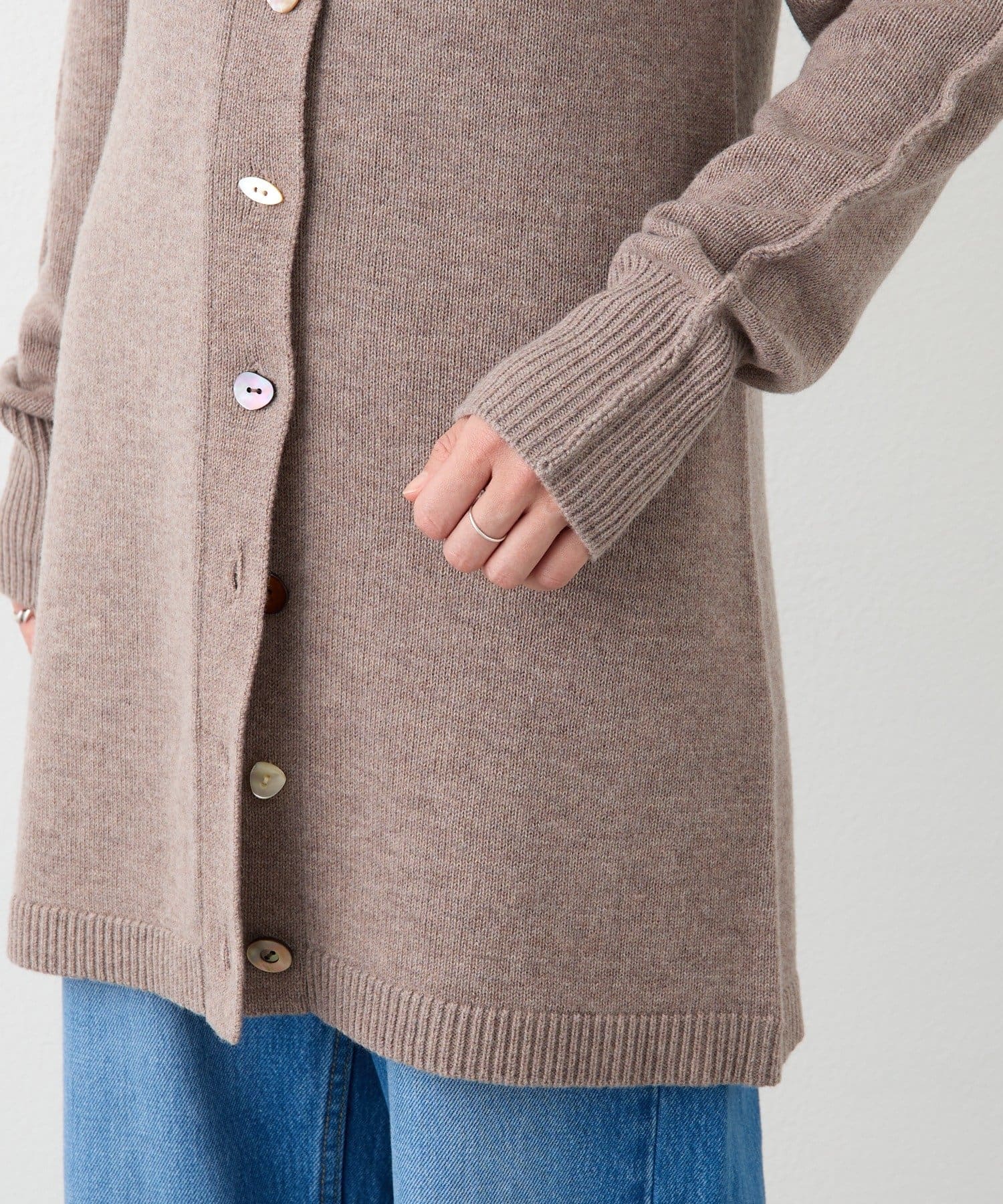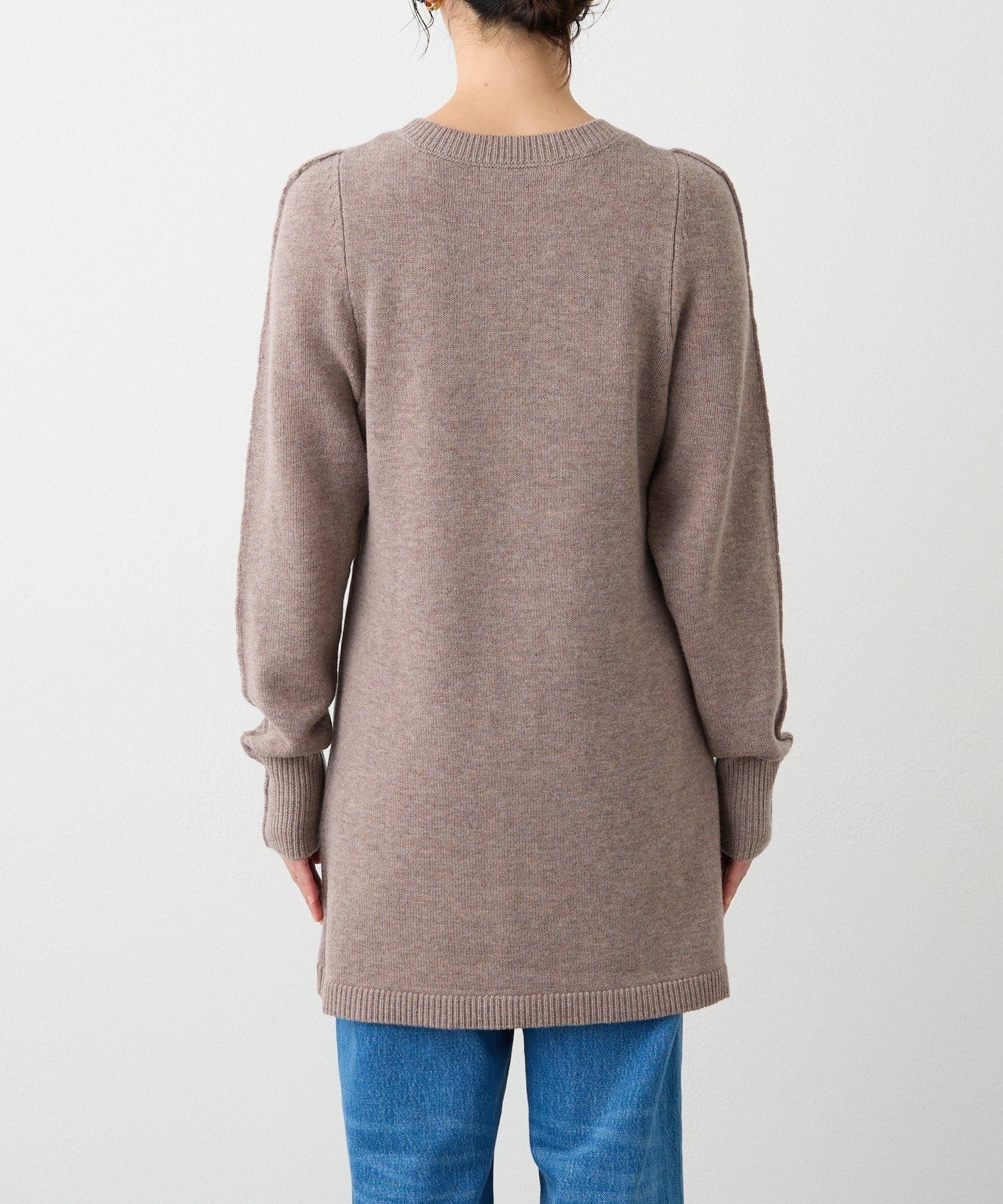 ・前スリットに、種類の違う貝ボタンをつけたディテールがクラフトムード漂うニット