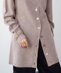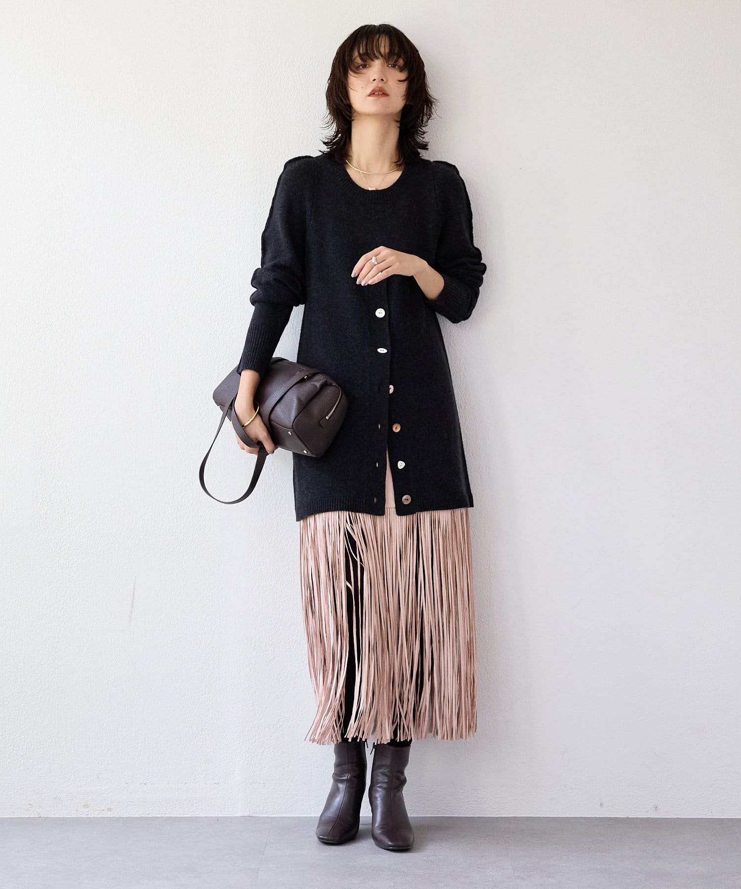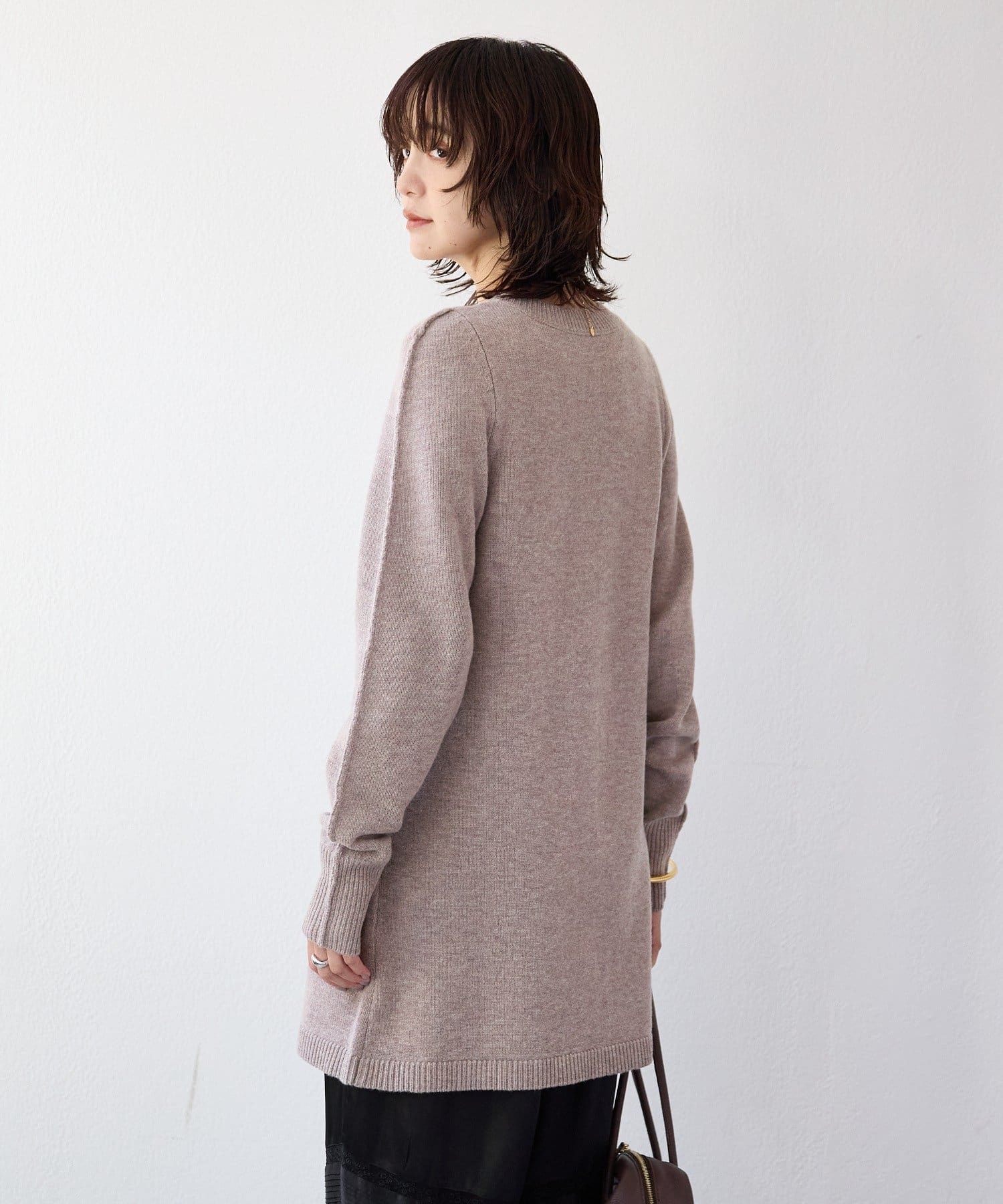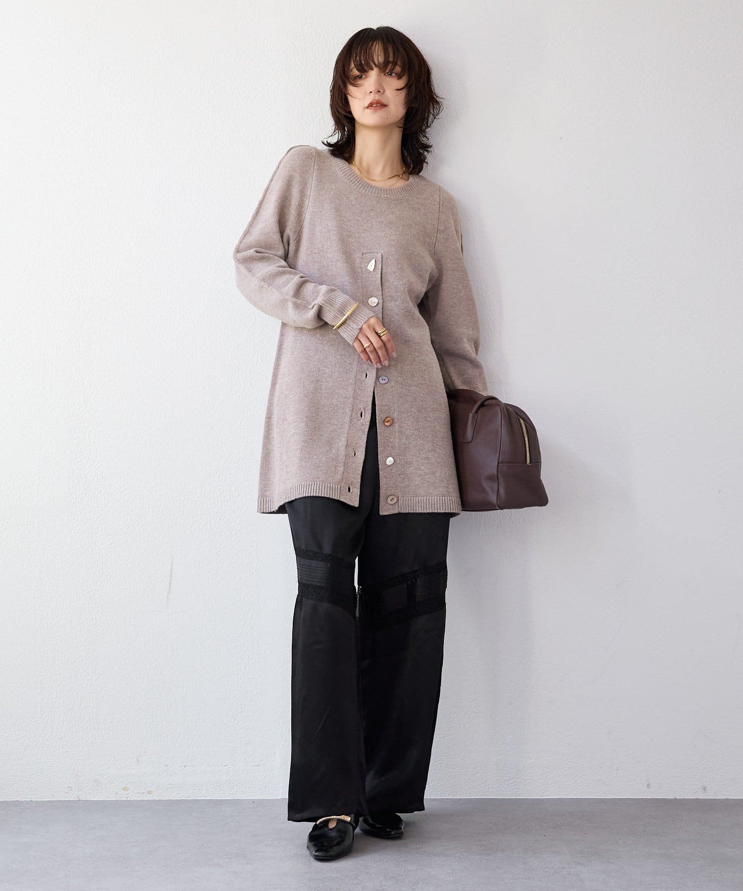 ・前スリットに、種類の違う貝ボタンをつけたディテールがクラフトムード漂うニット