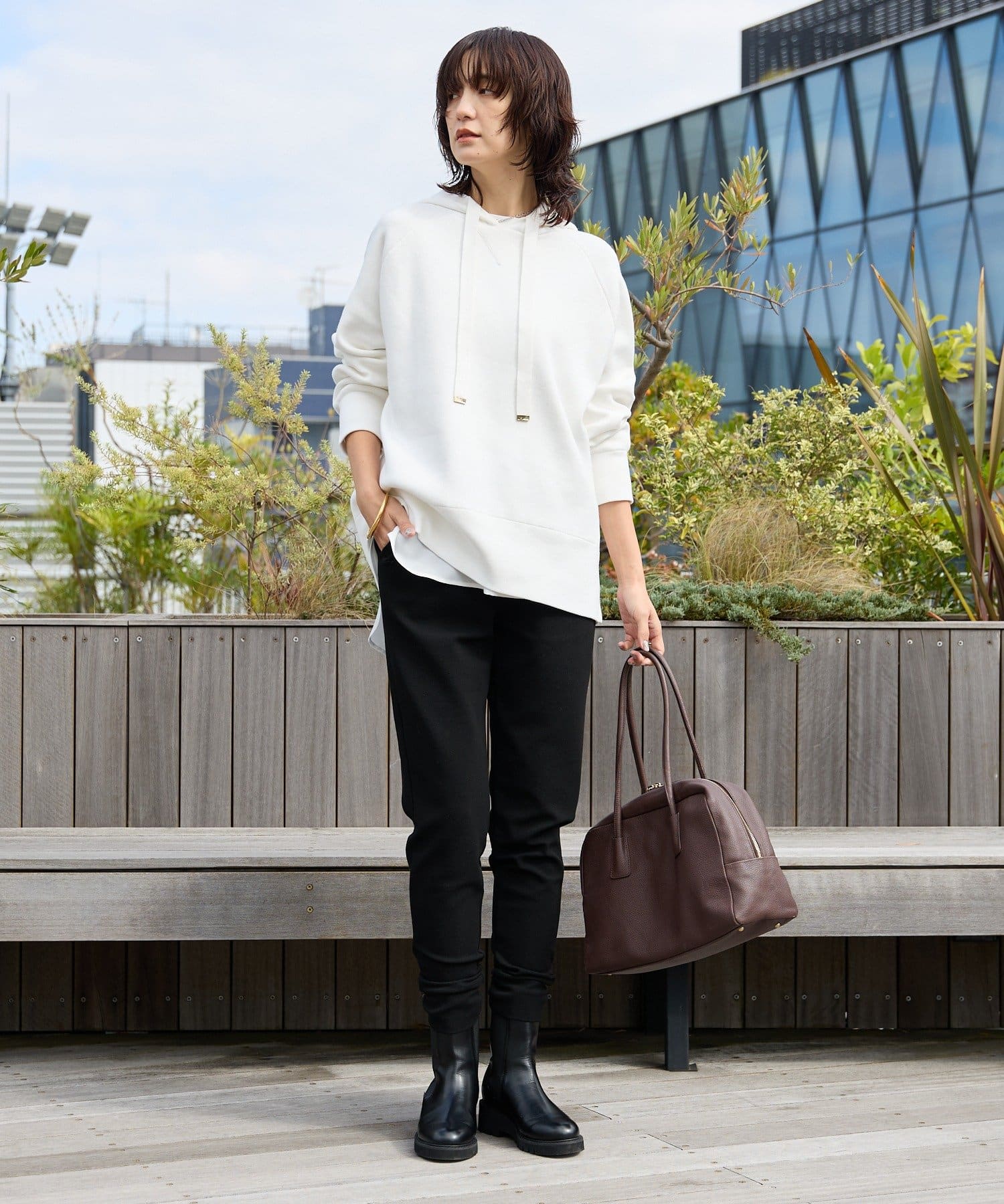 ・オーバーサイズのトップス、アウターともスタイリングがしやすいシルエットバランス