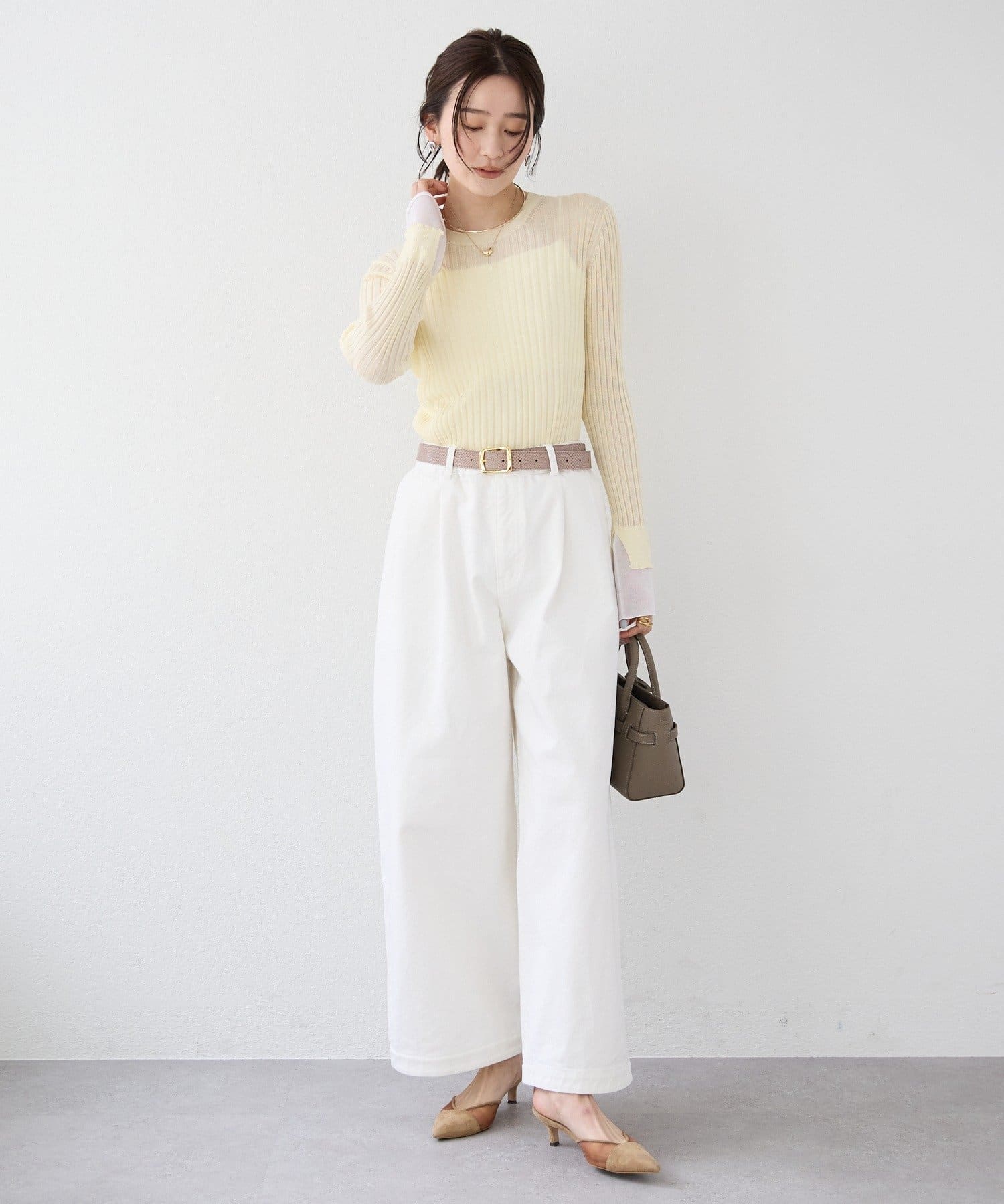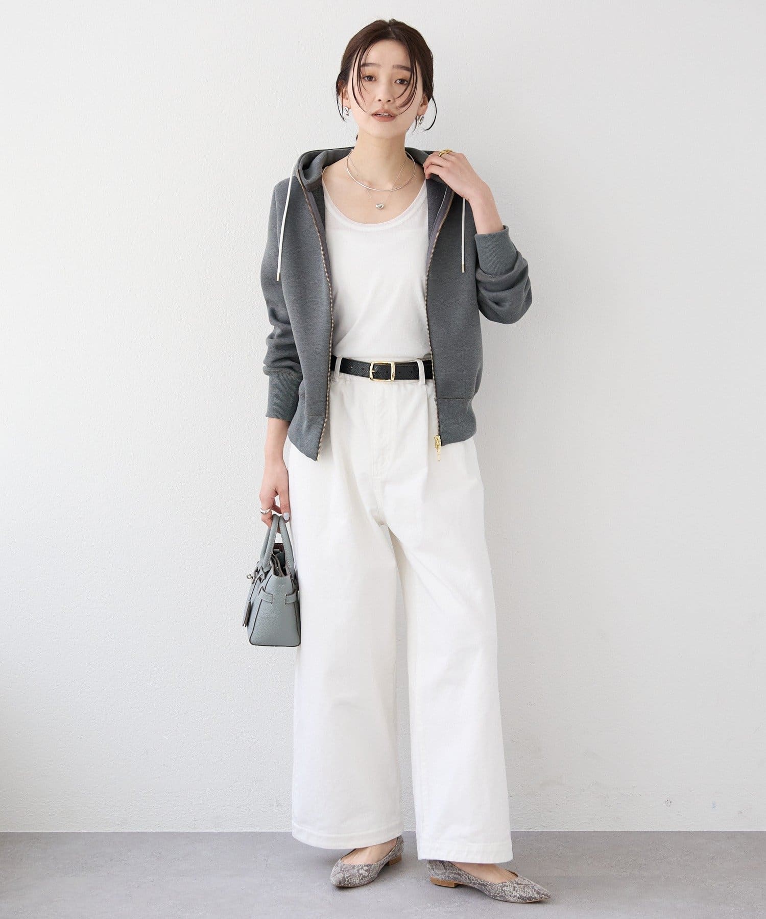 ・ウエスト部分にはベルトループをつけておりベルトを合わせたスタイリングもおすすめ