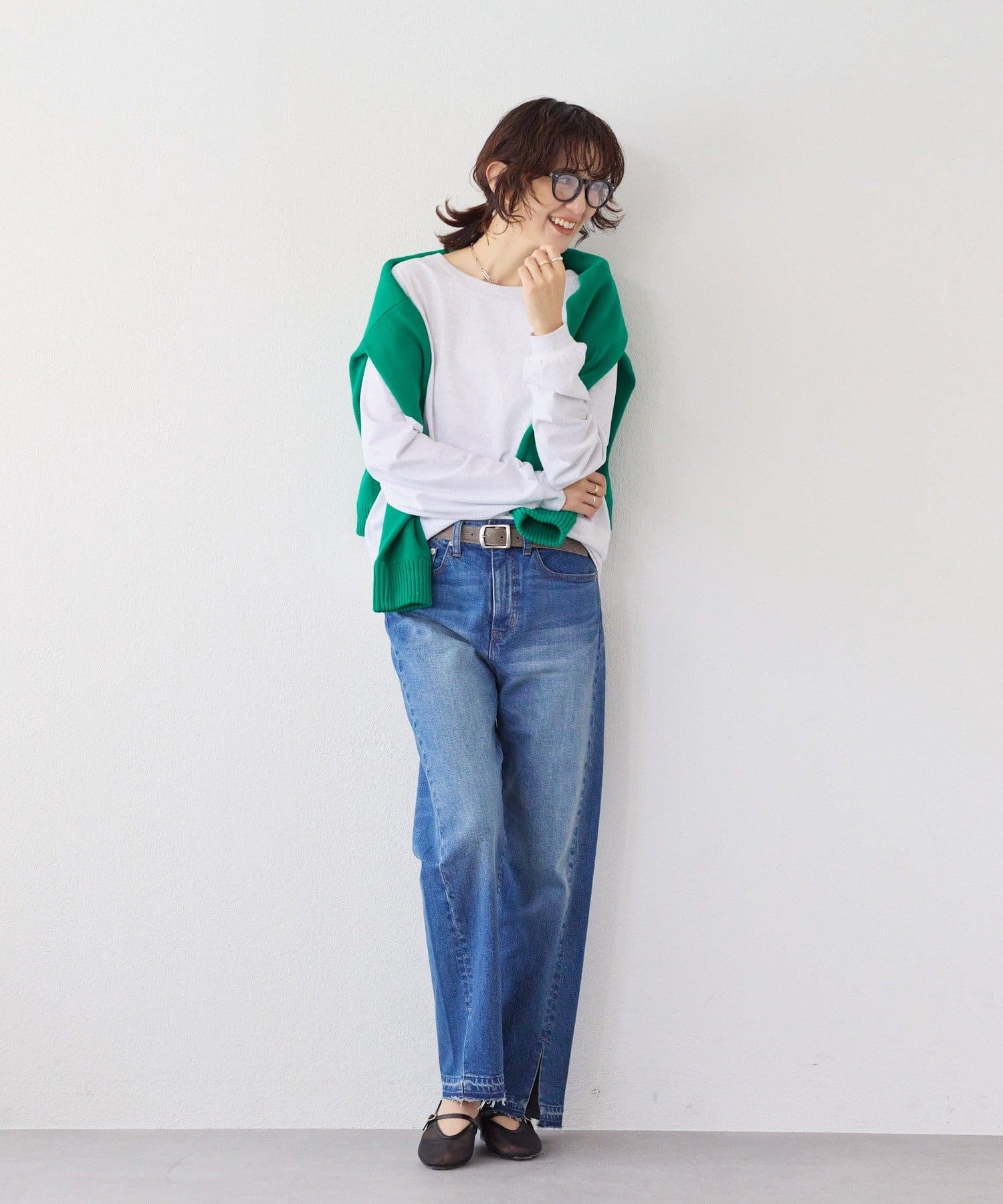・デニムからスラックスまで、幅広いテイストのボトムとスタイリングがしやすいデザイン。