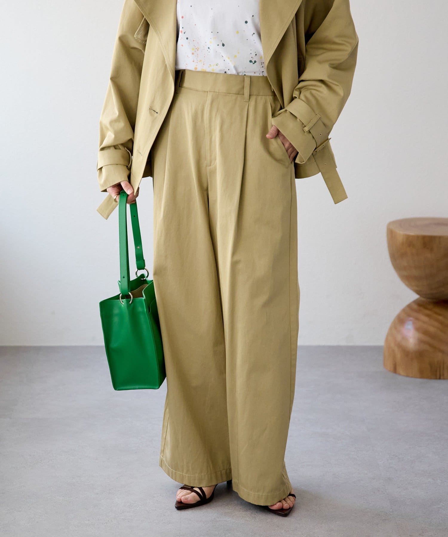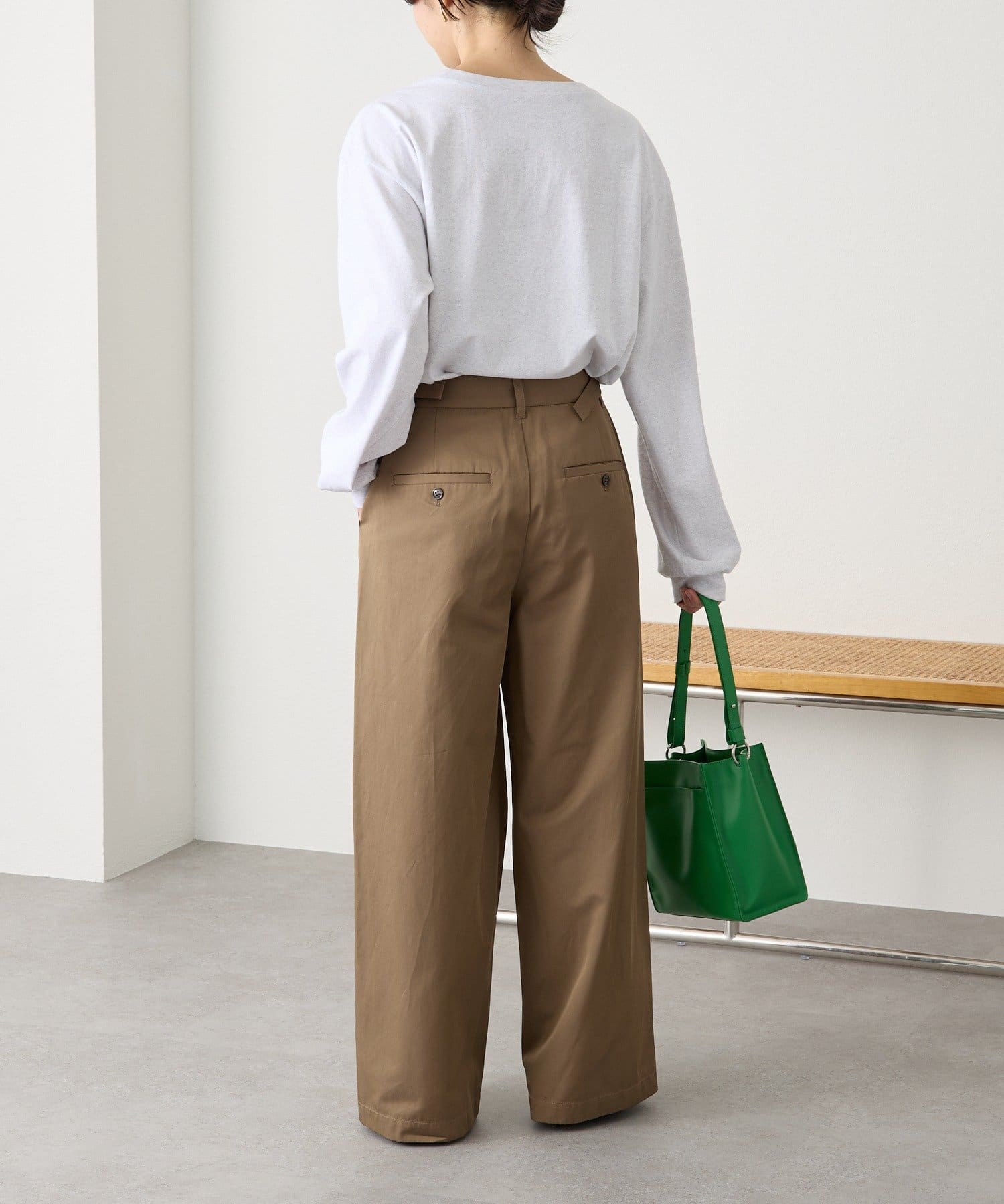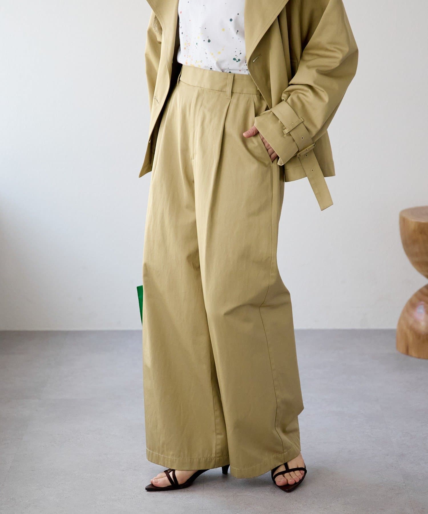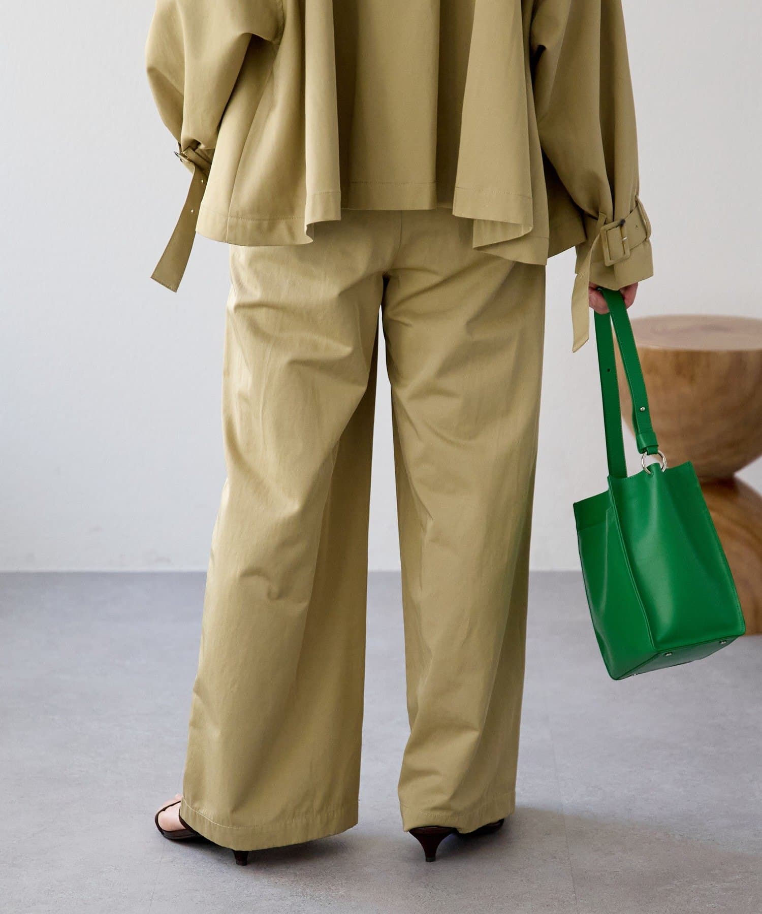 ・ワイドシルエットでありながらも落ち感がある生地ですっきりとしたシルエット