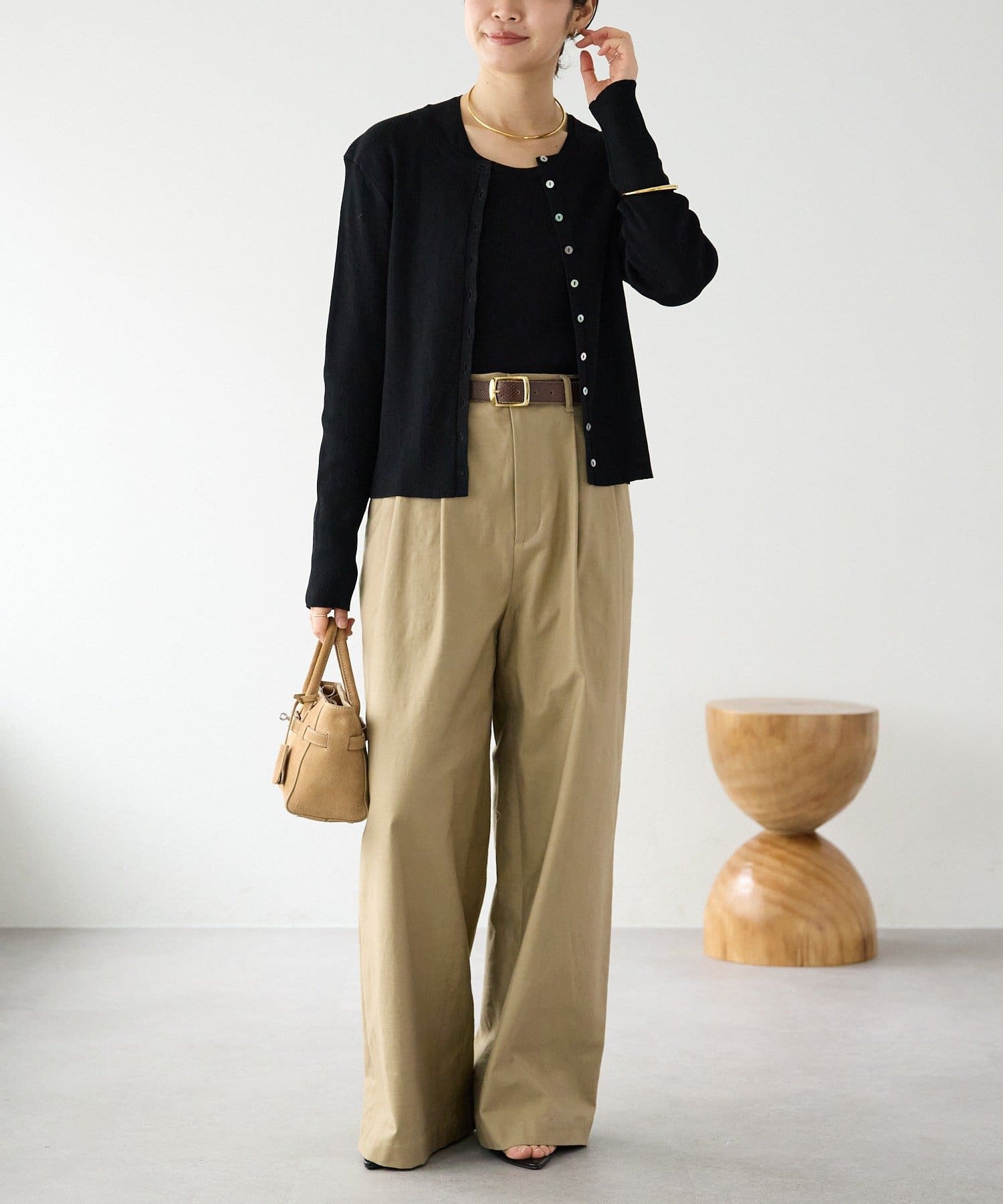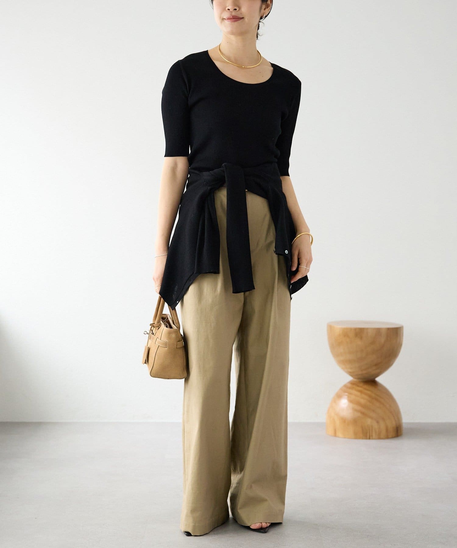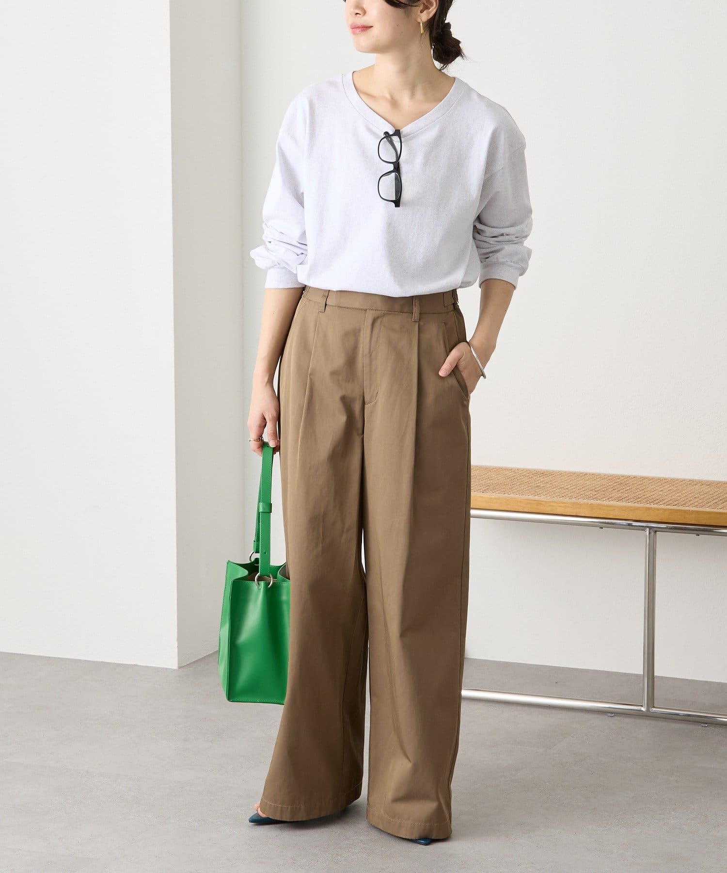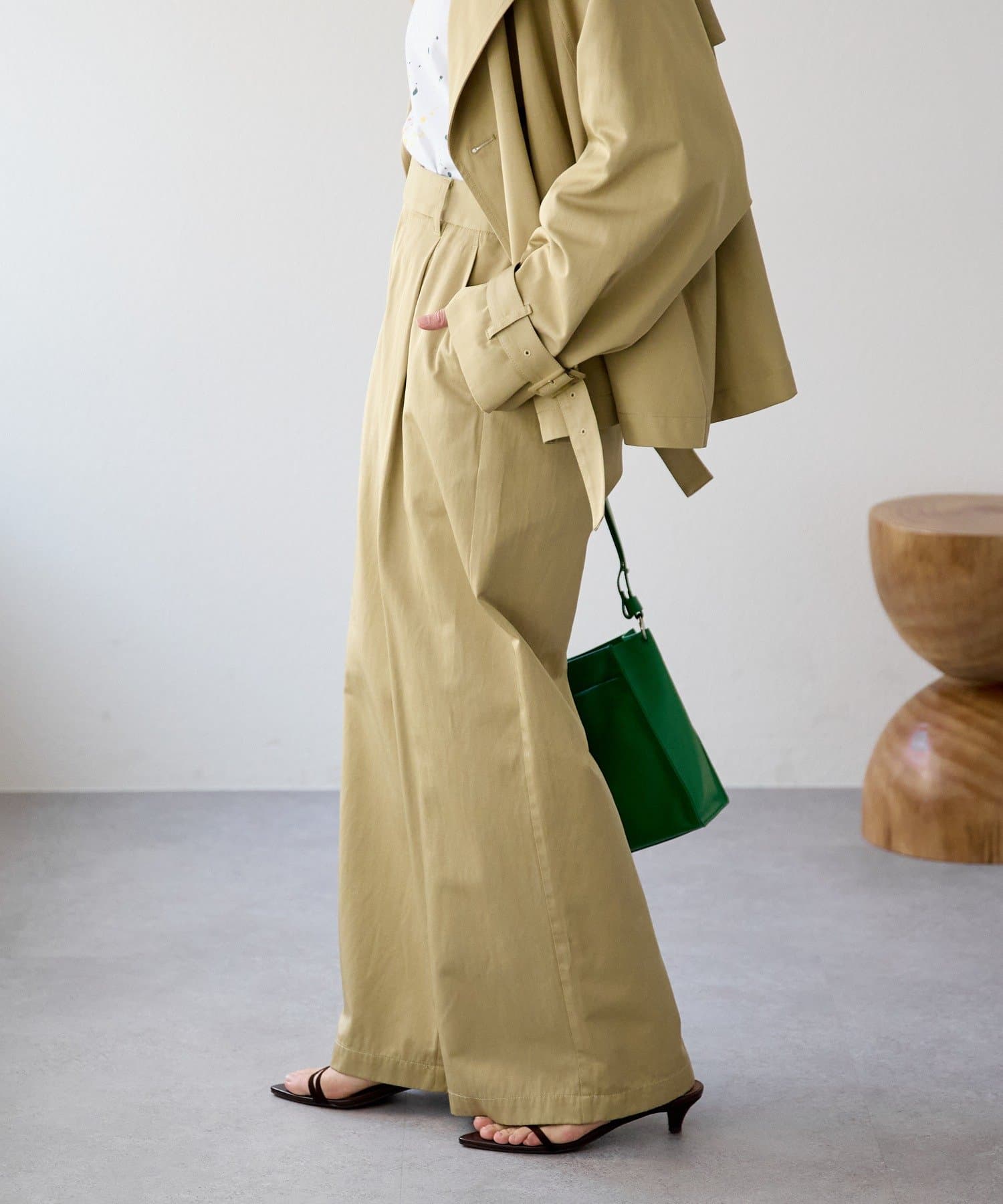 ・ワイドシルエットでありながらも落ち感がある生地ですっきりとしたシルエット