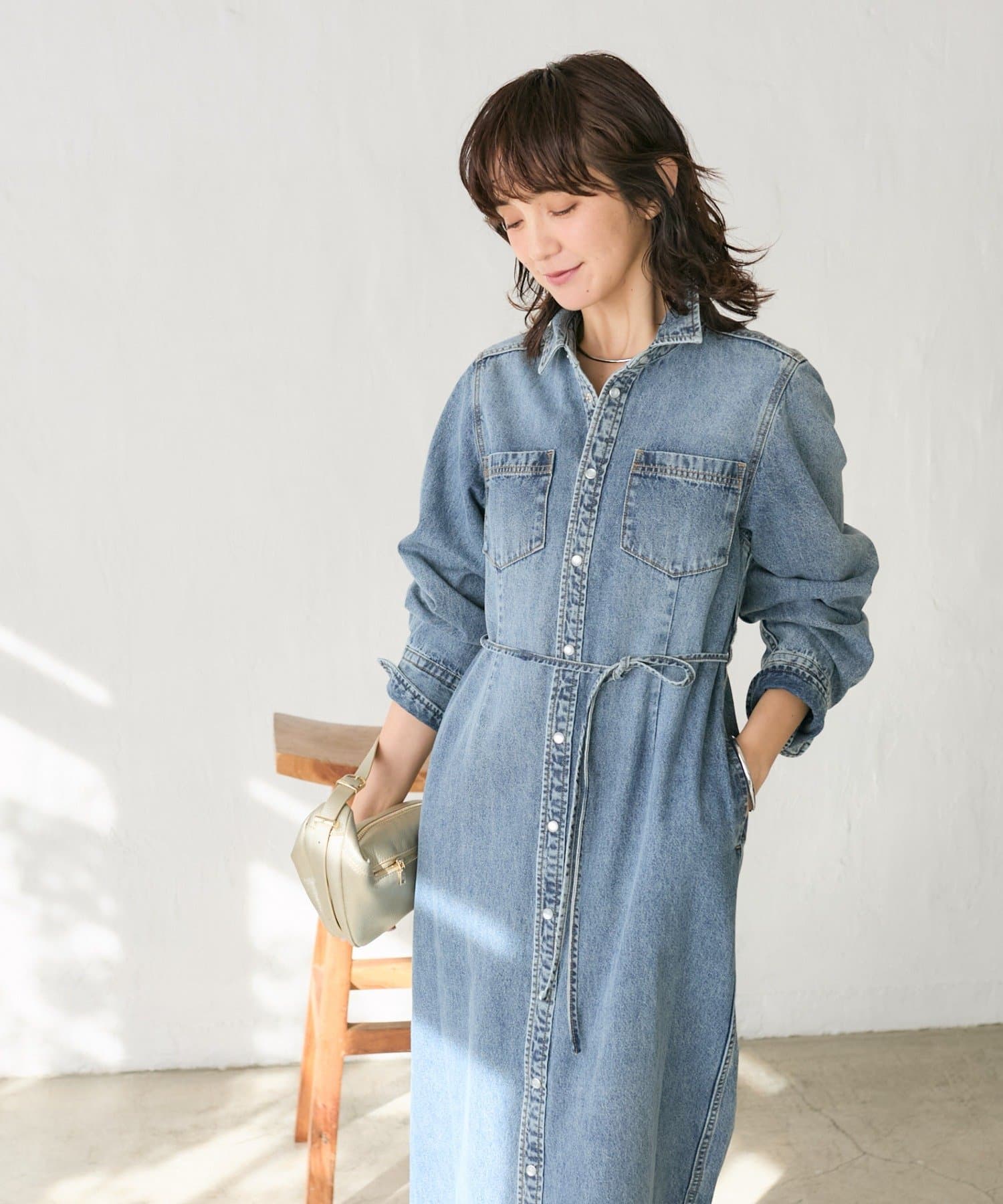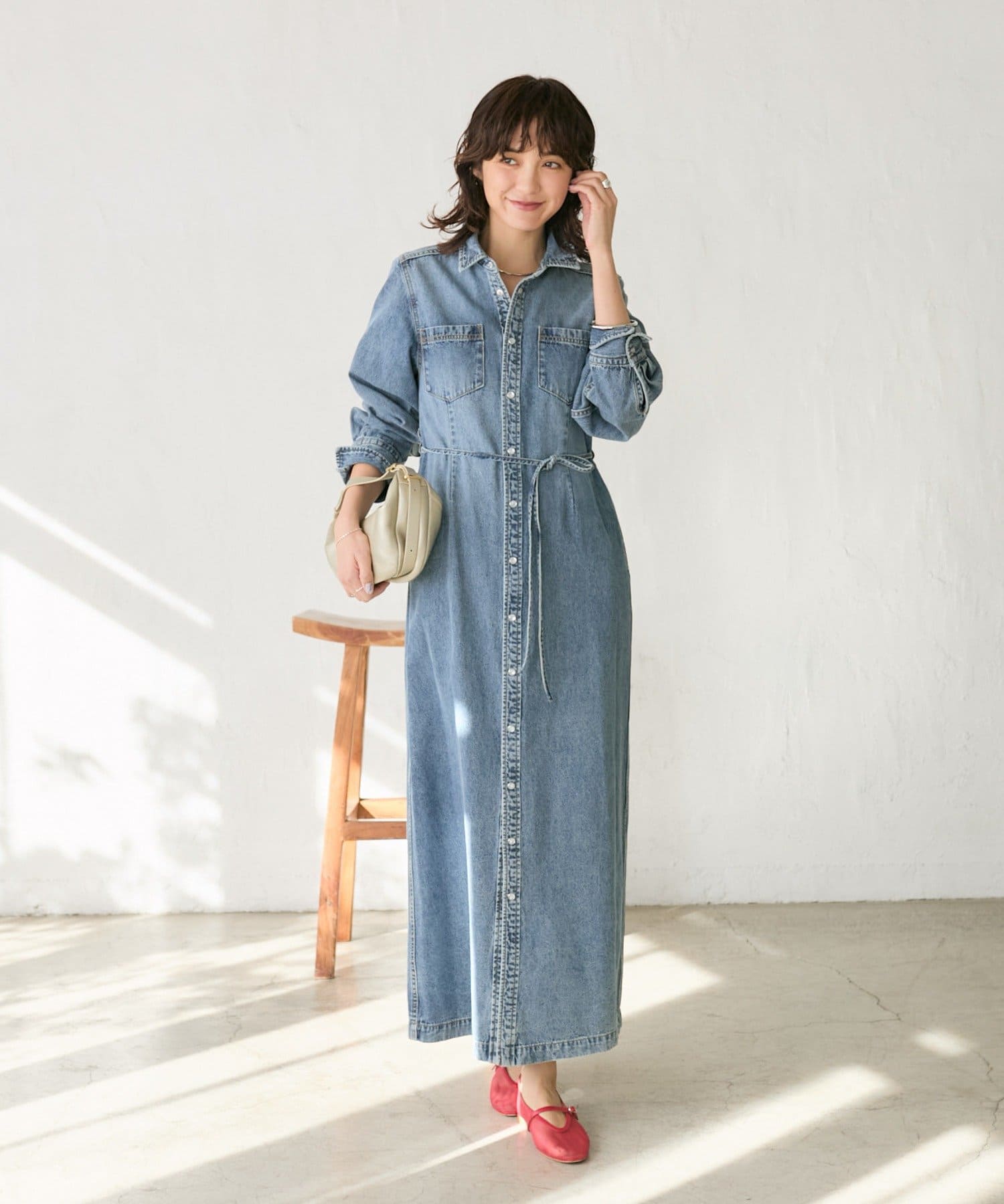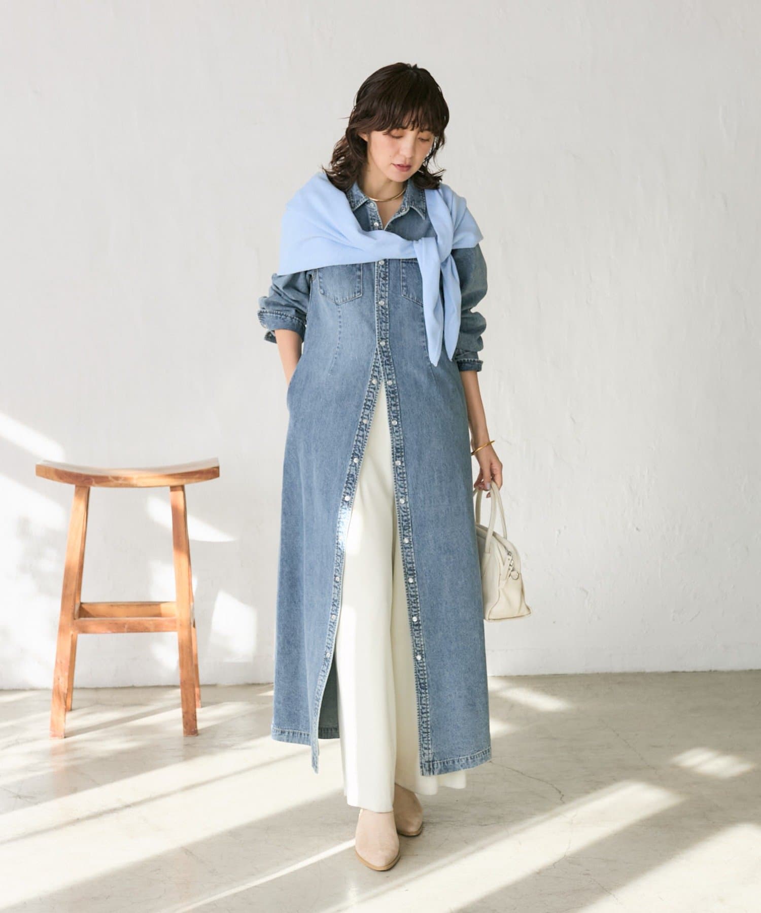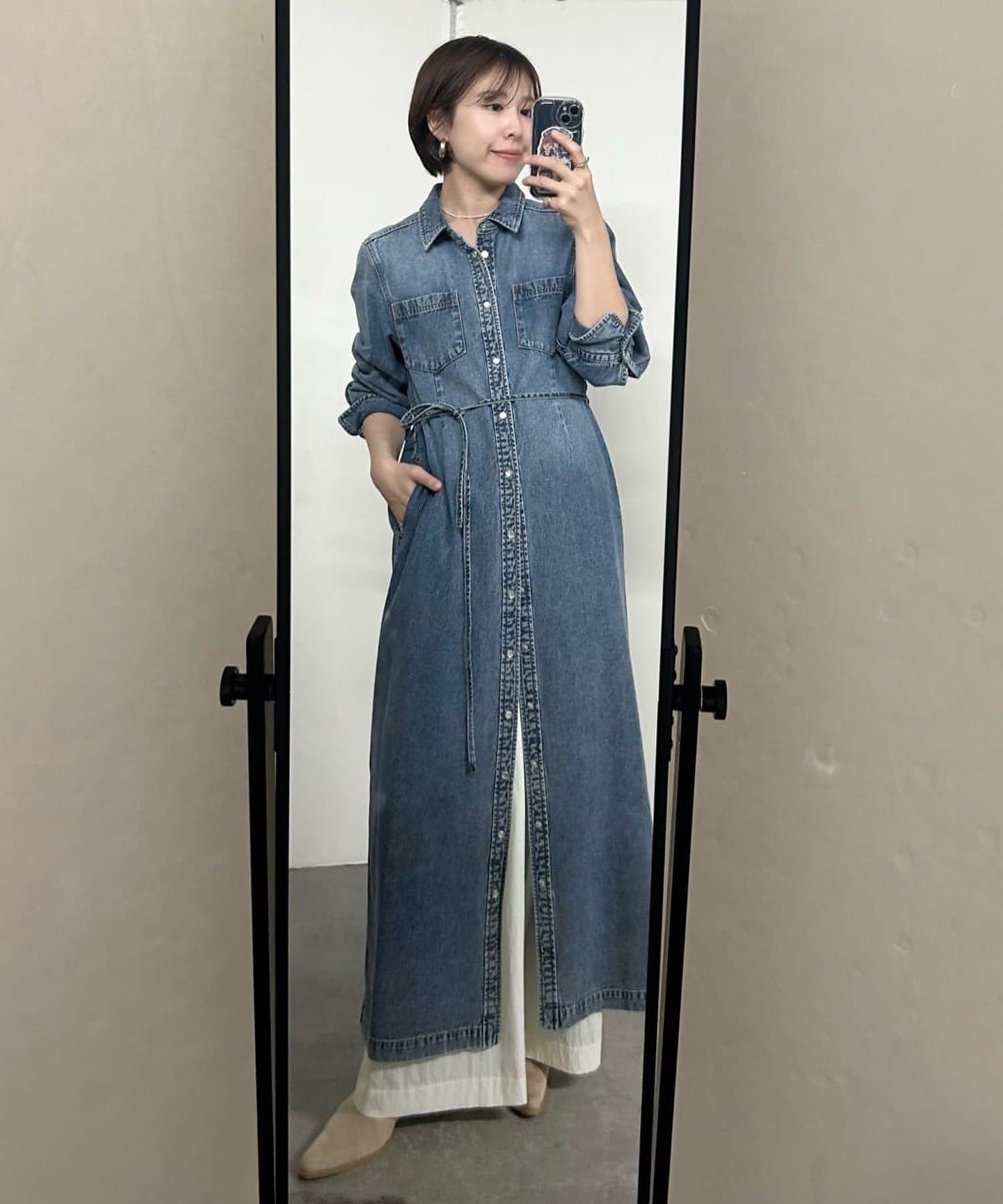 ・ワンピースとしても、羽織としても、様々な着こなしができるデニムワンピース
