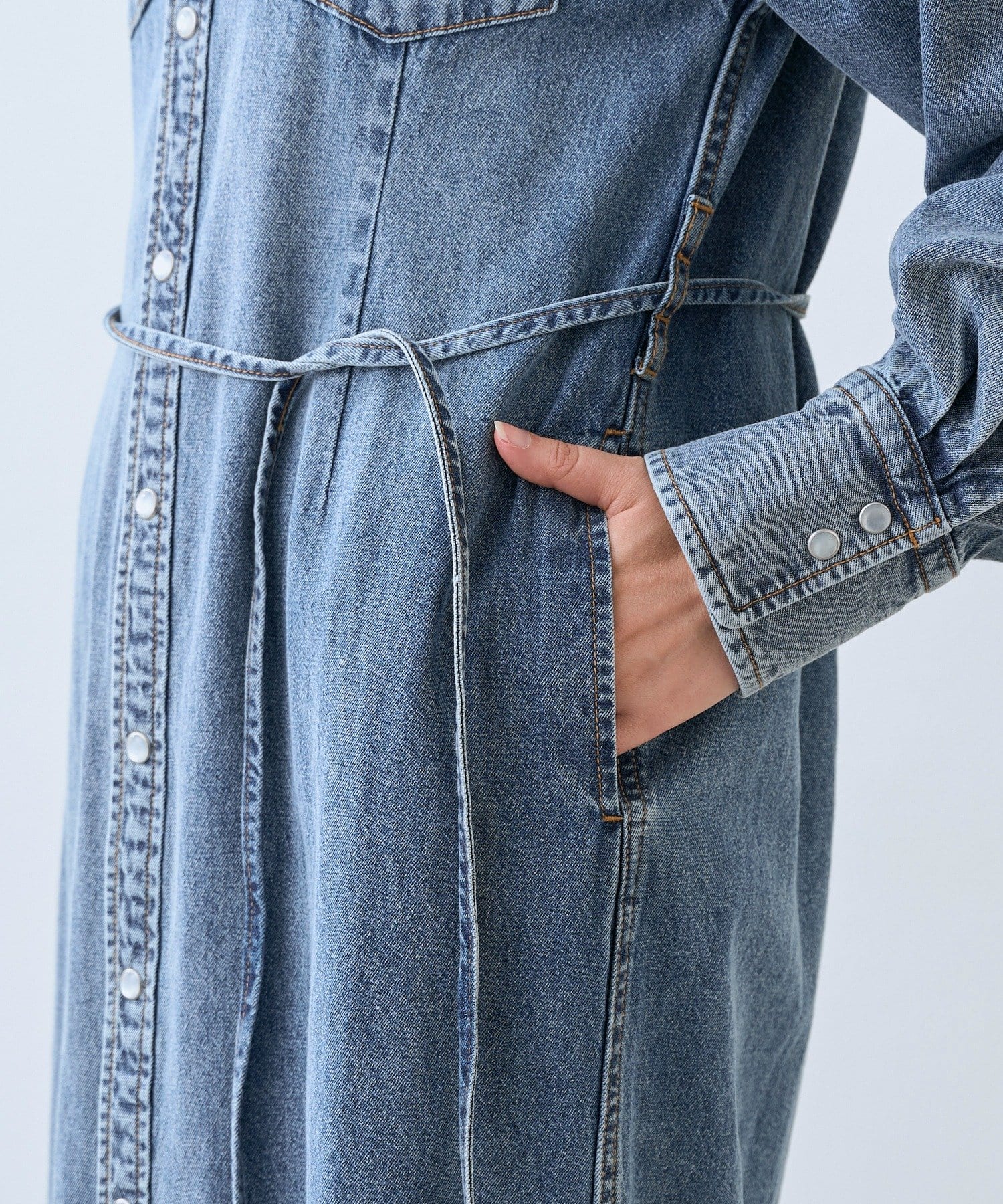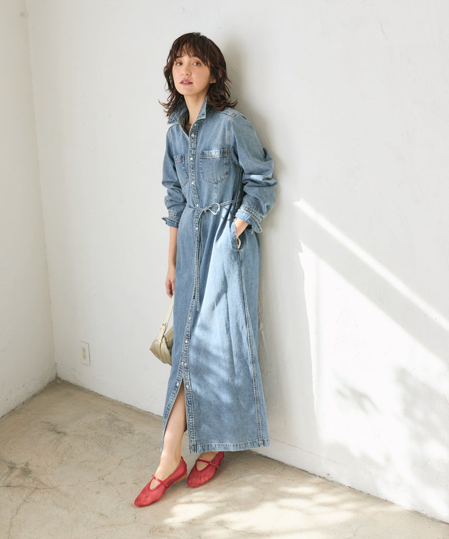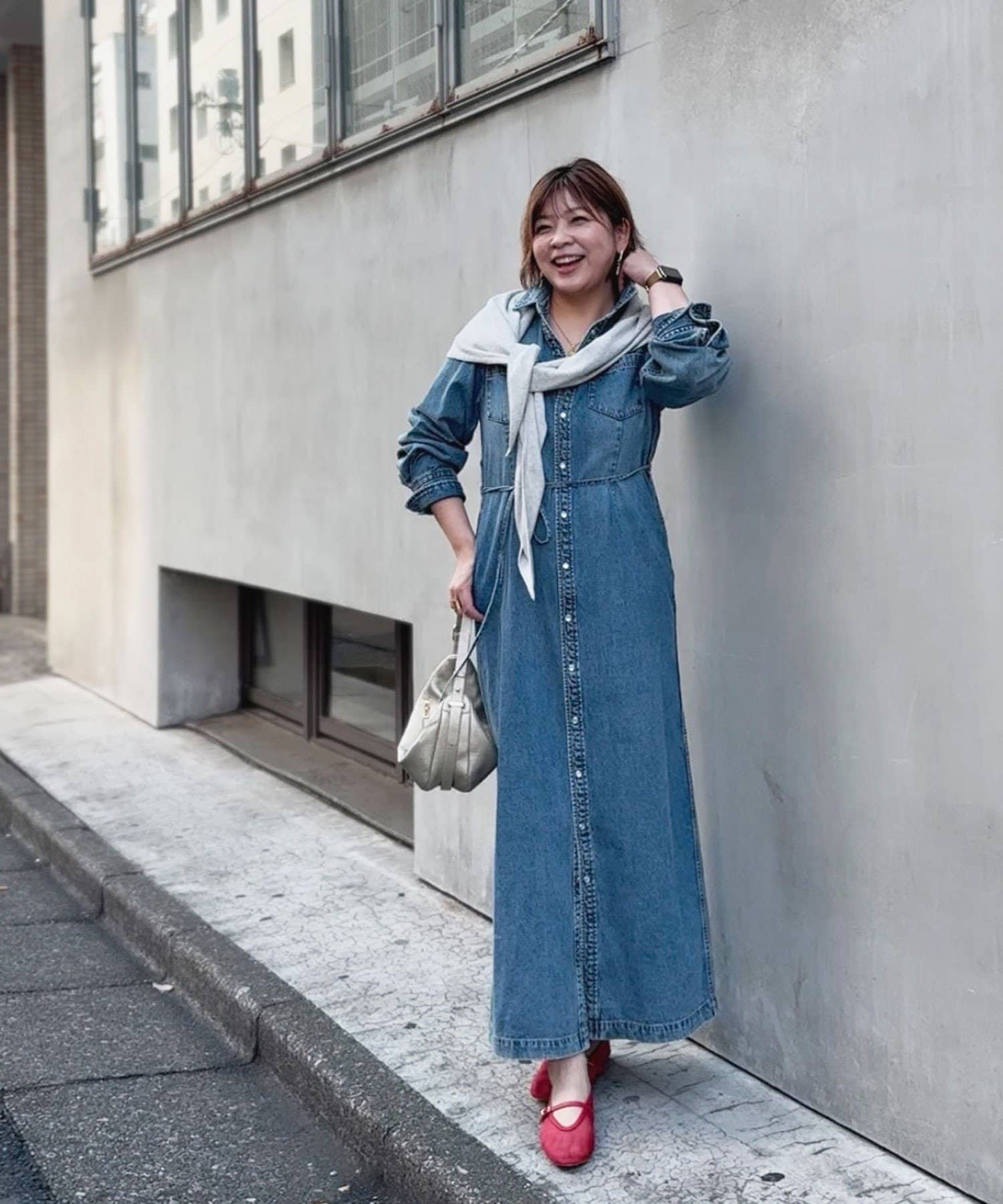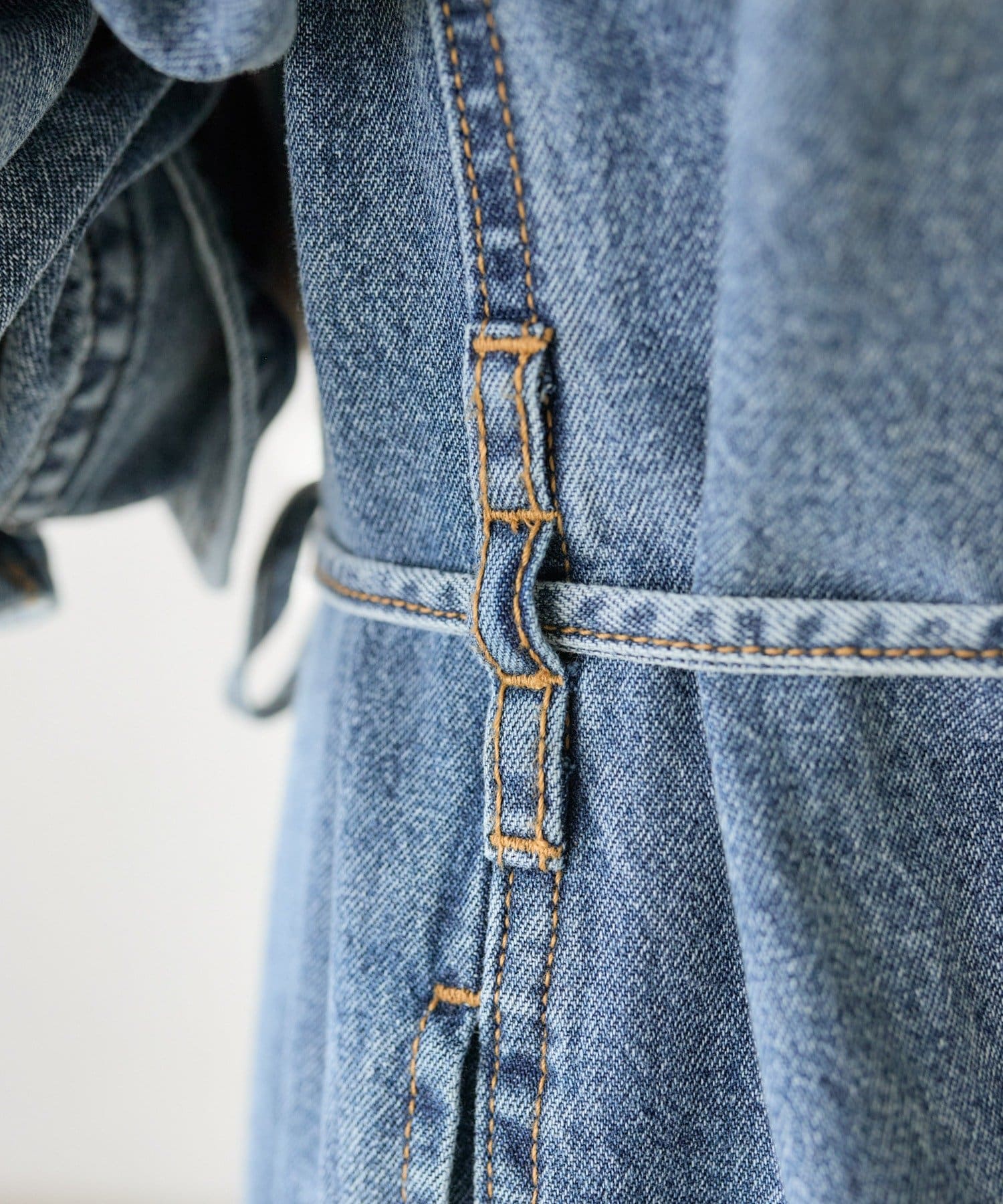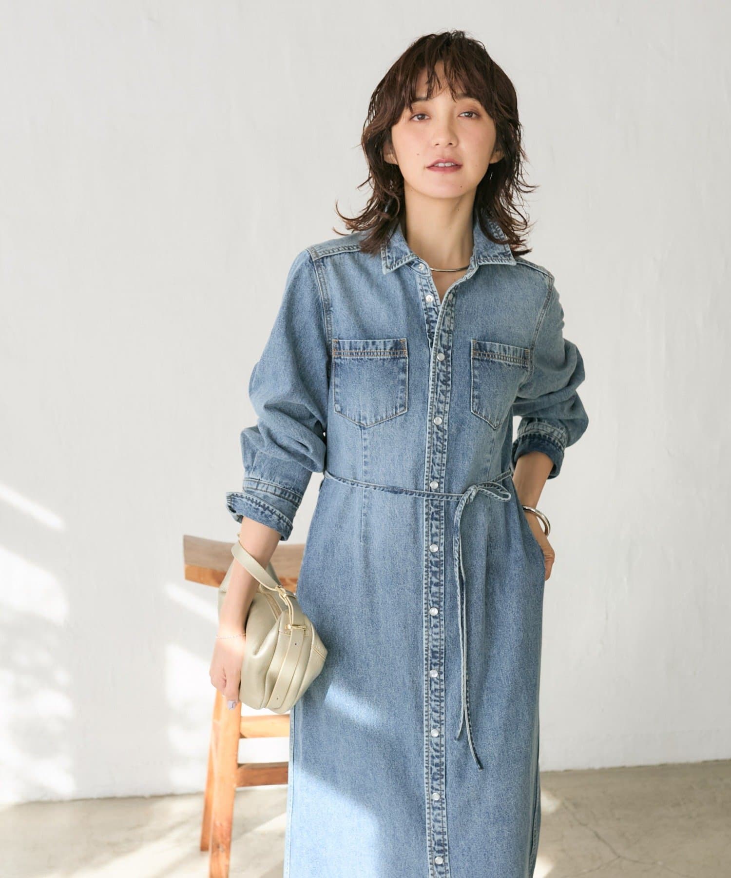 ・ワンピースとしても、羽織としても、様々な着こなしができるデニムワンピース