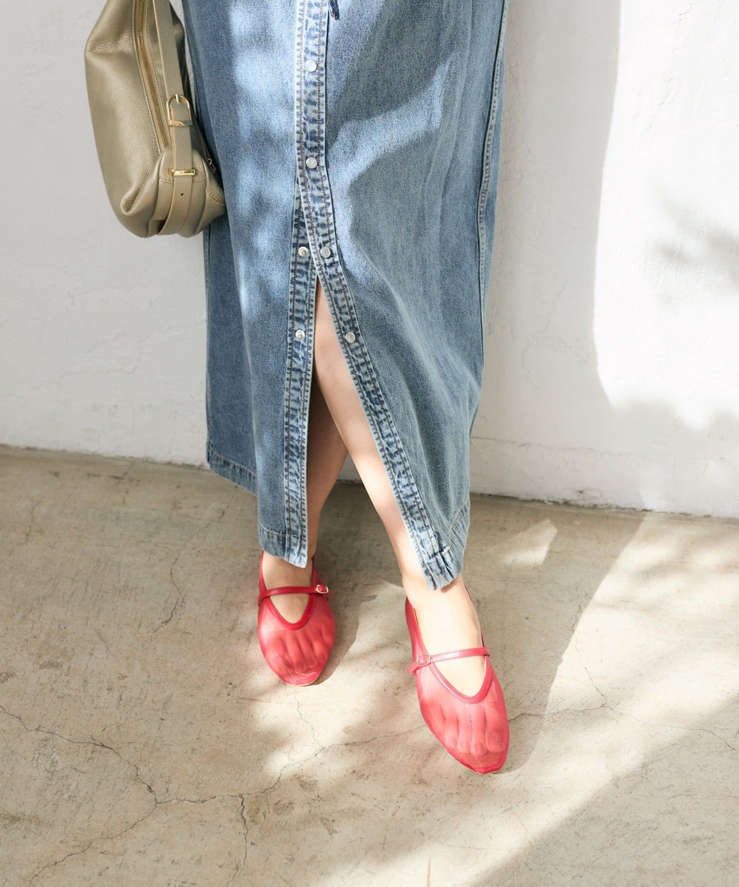 ①デニムなのにカジュアルすぎへん。洗練されたデニム素材で高見えします。