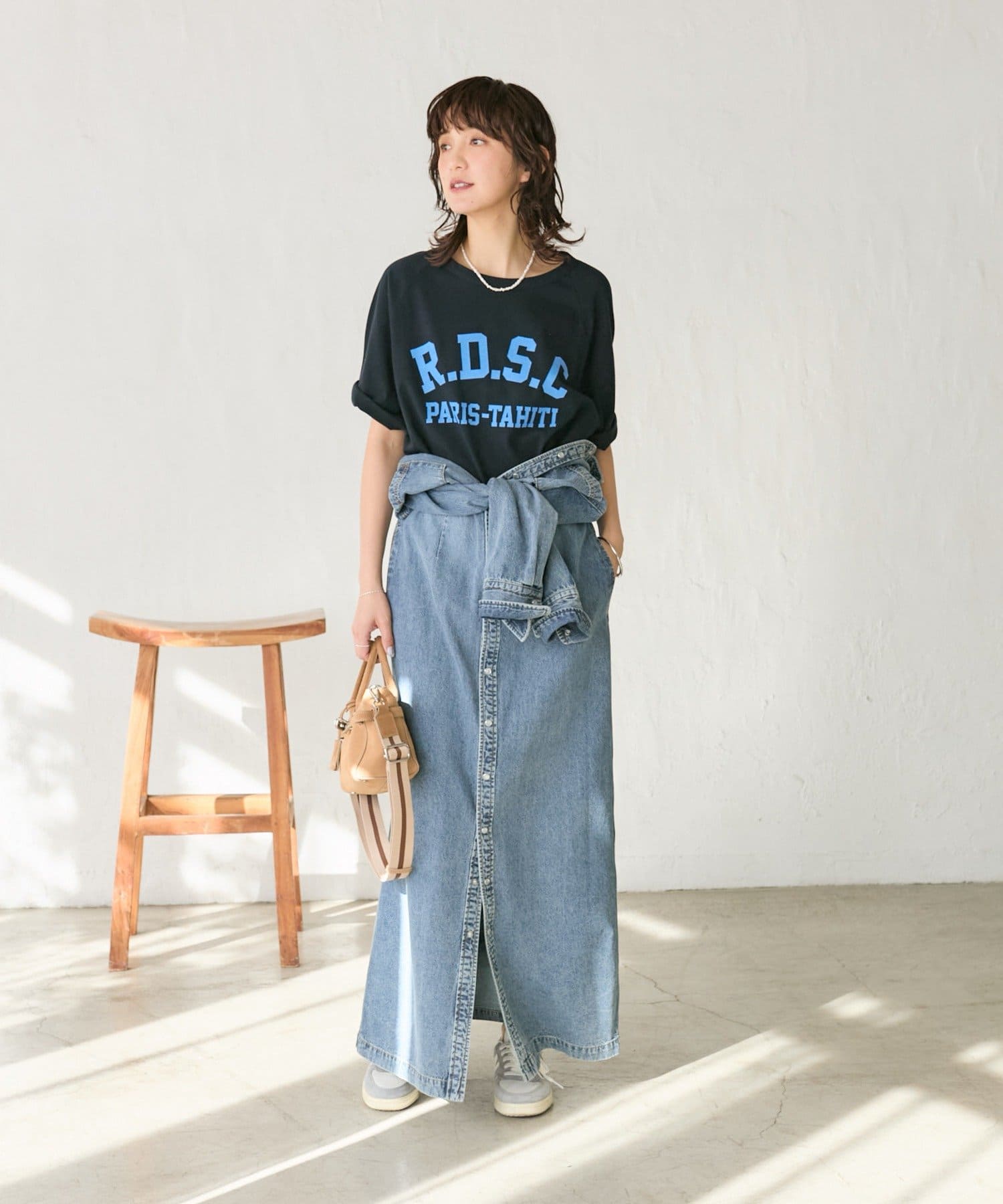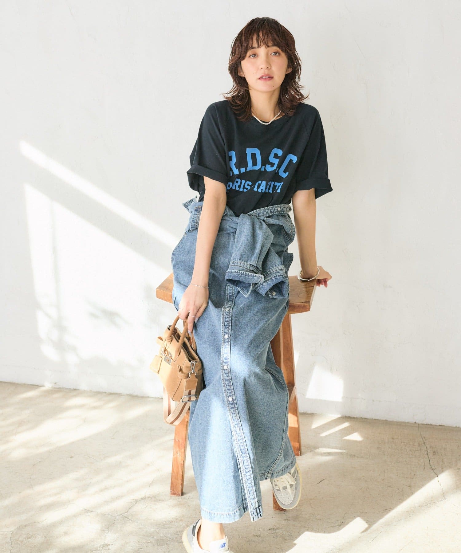 ②大人が着ても“ラフになりすぎない”きれいめ設計。型はセットインにして華奢見え効果抜群です。