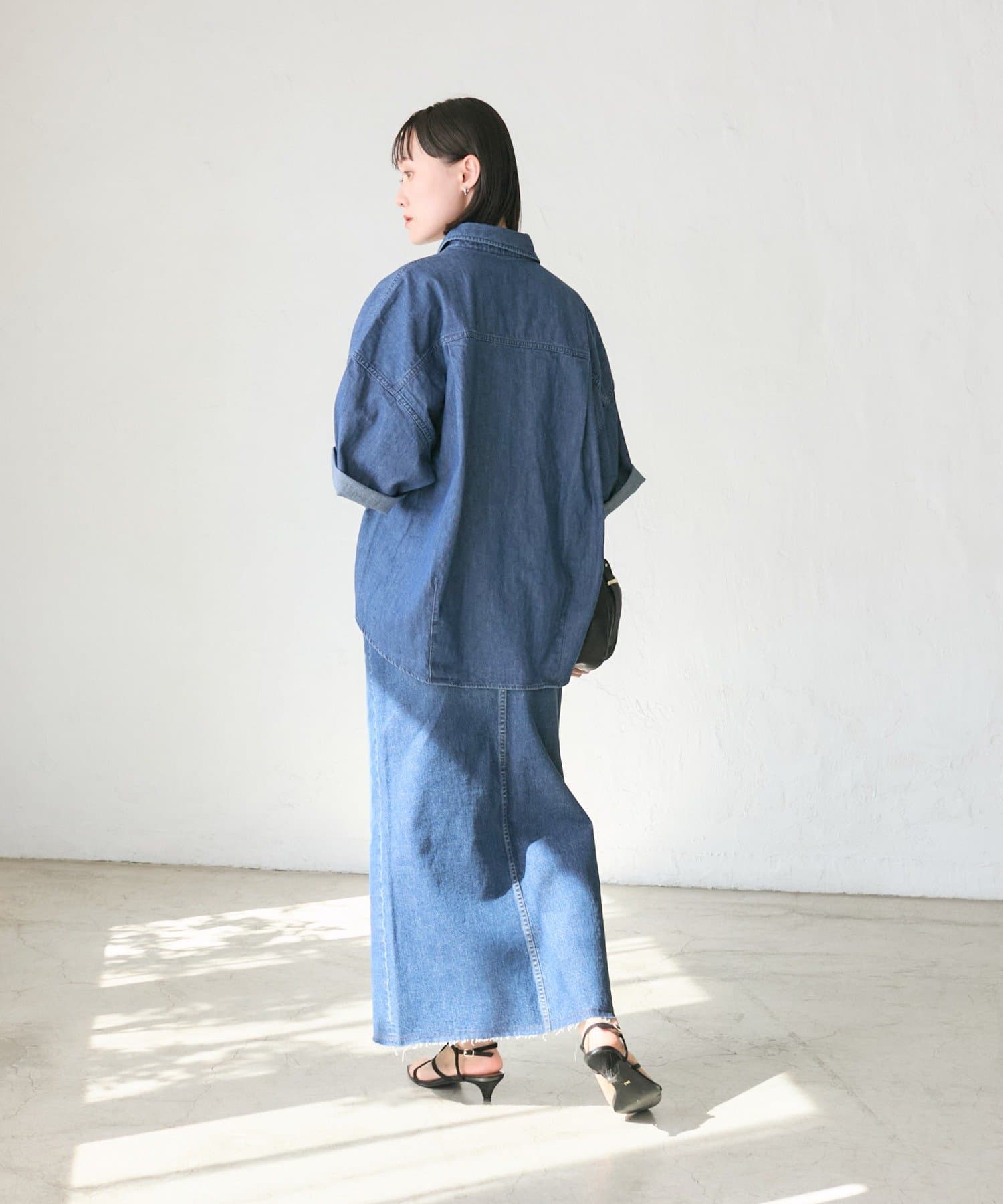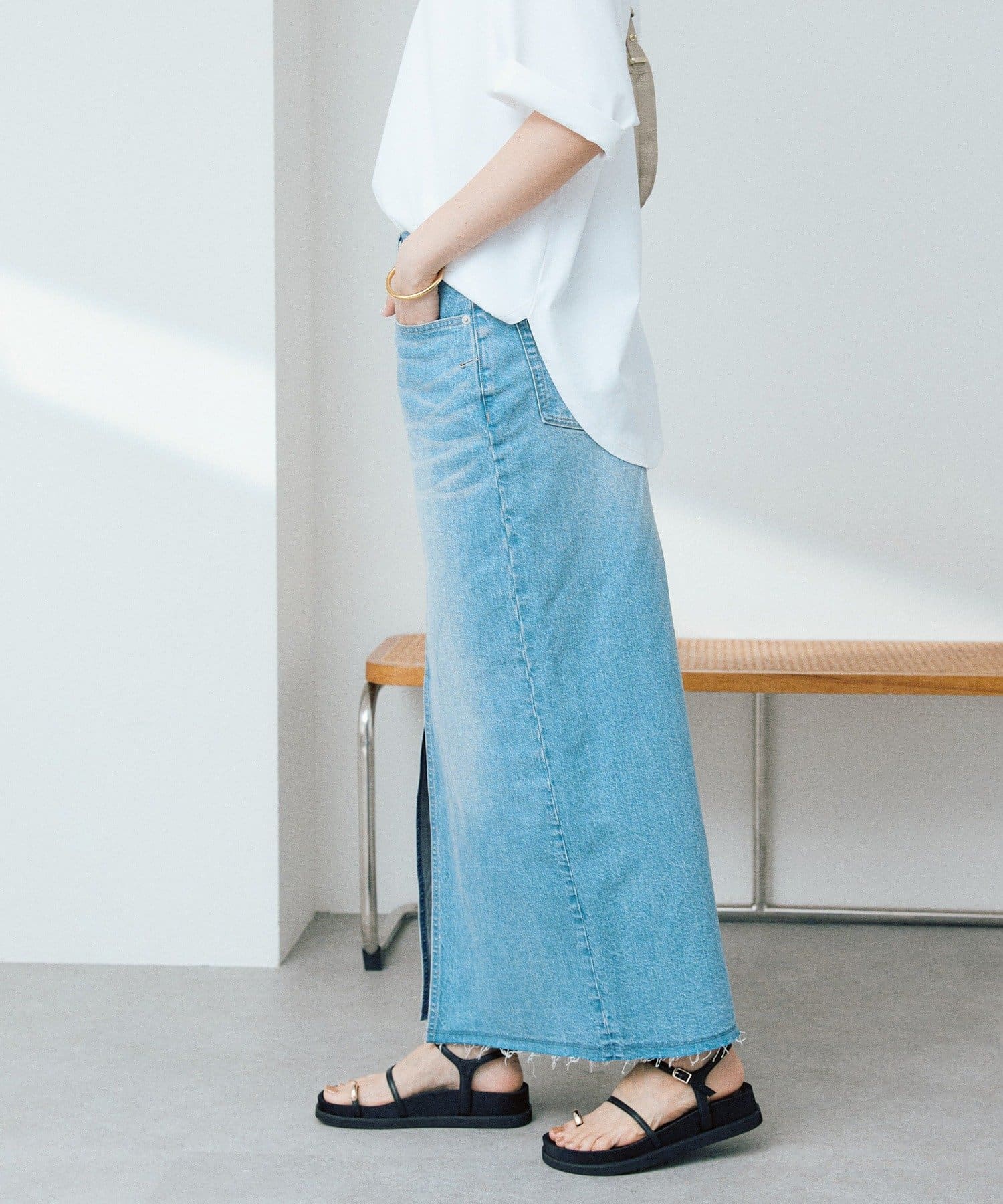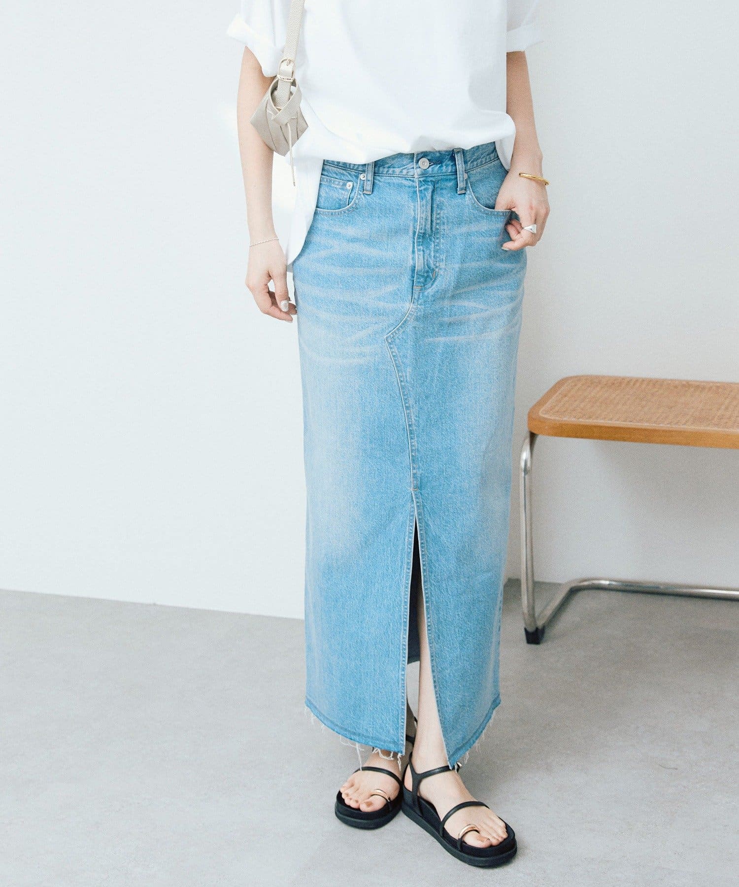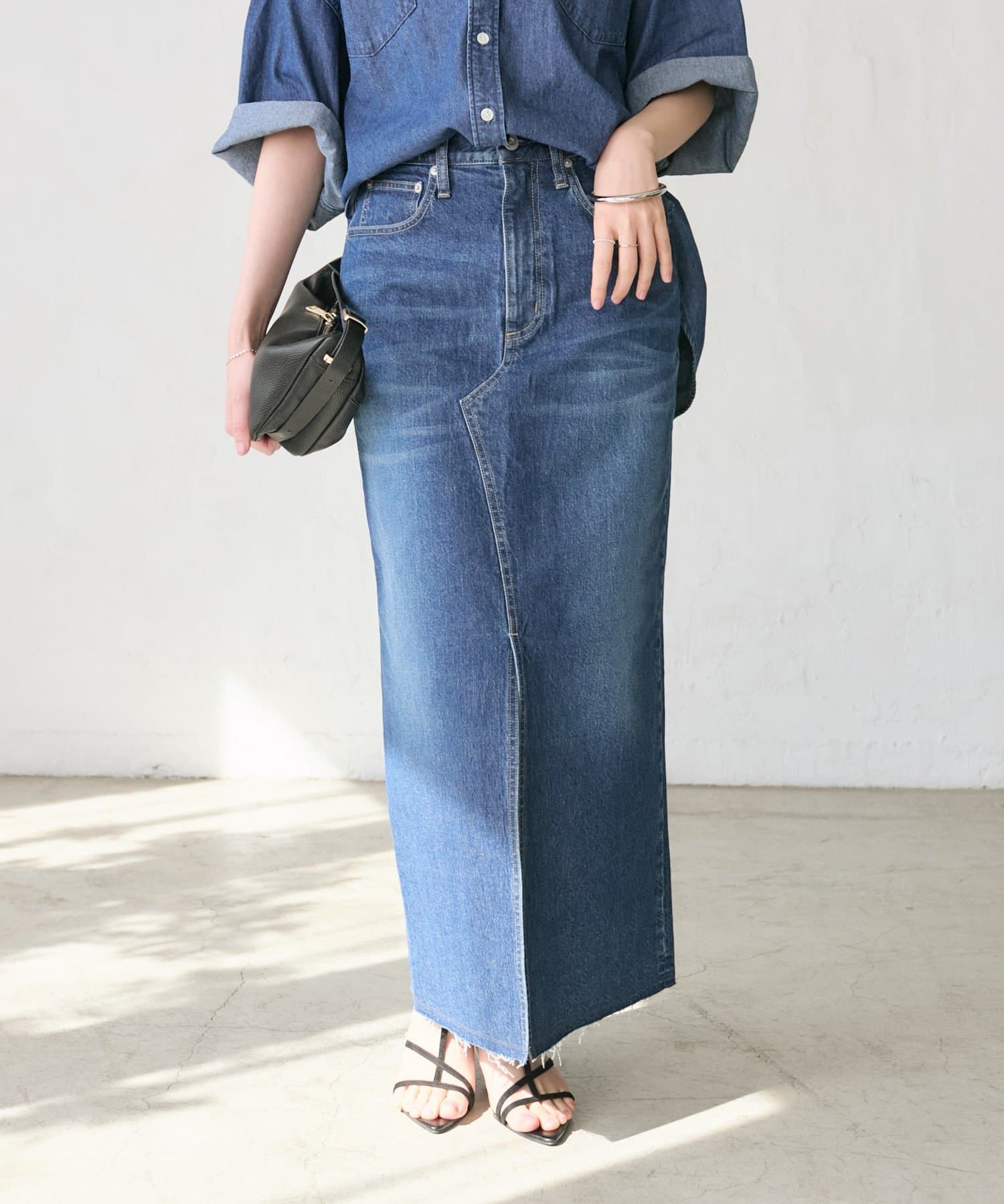 女性らしくすっきりと着こなせるデニムスカート