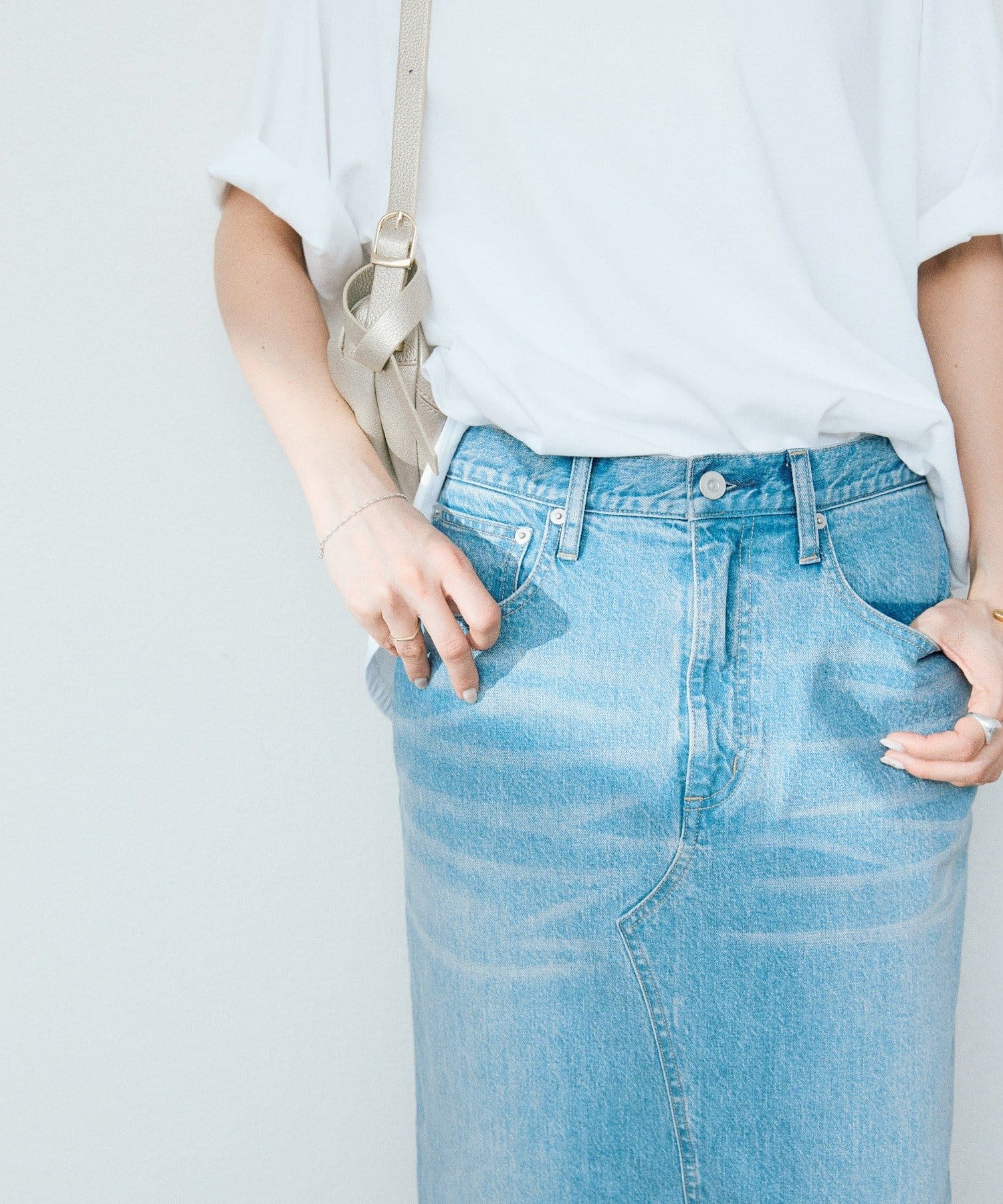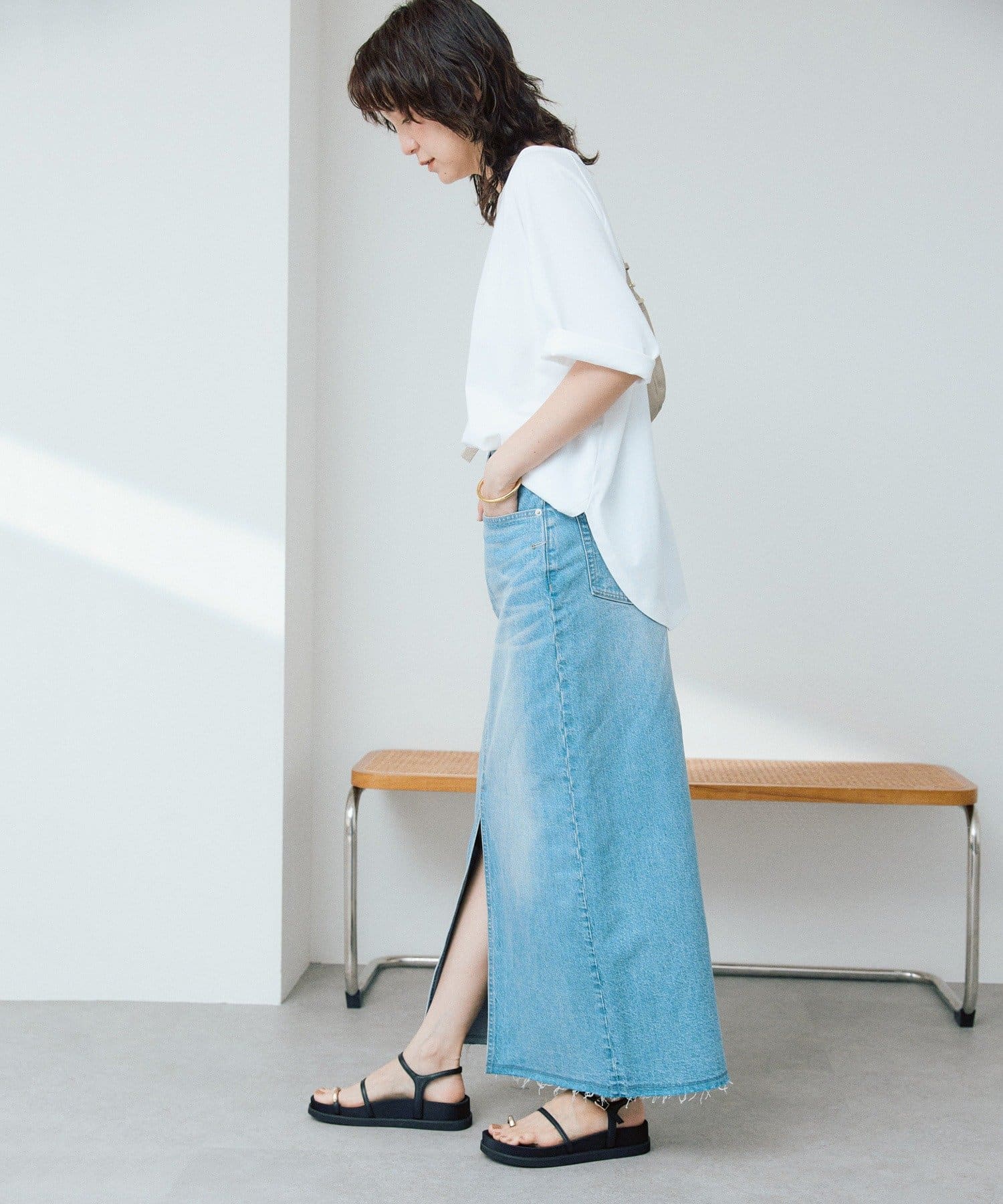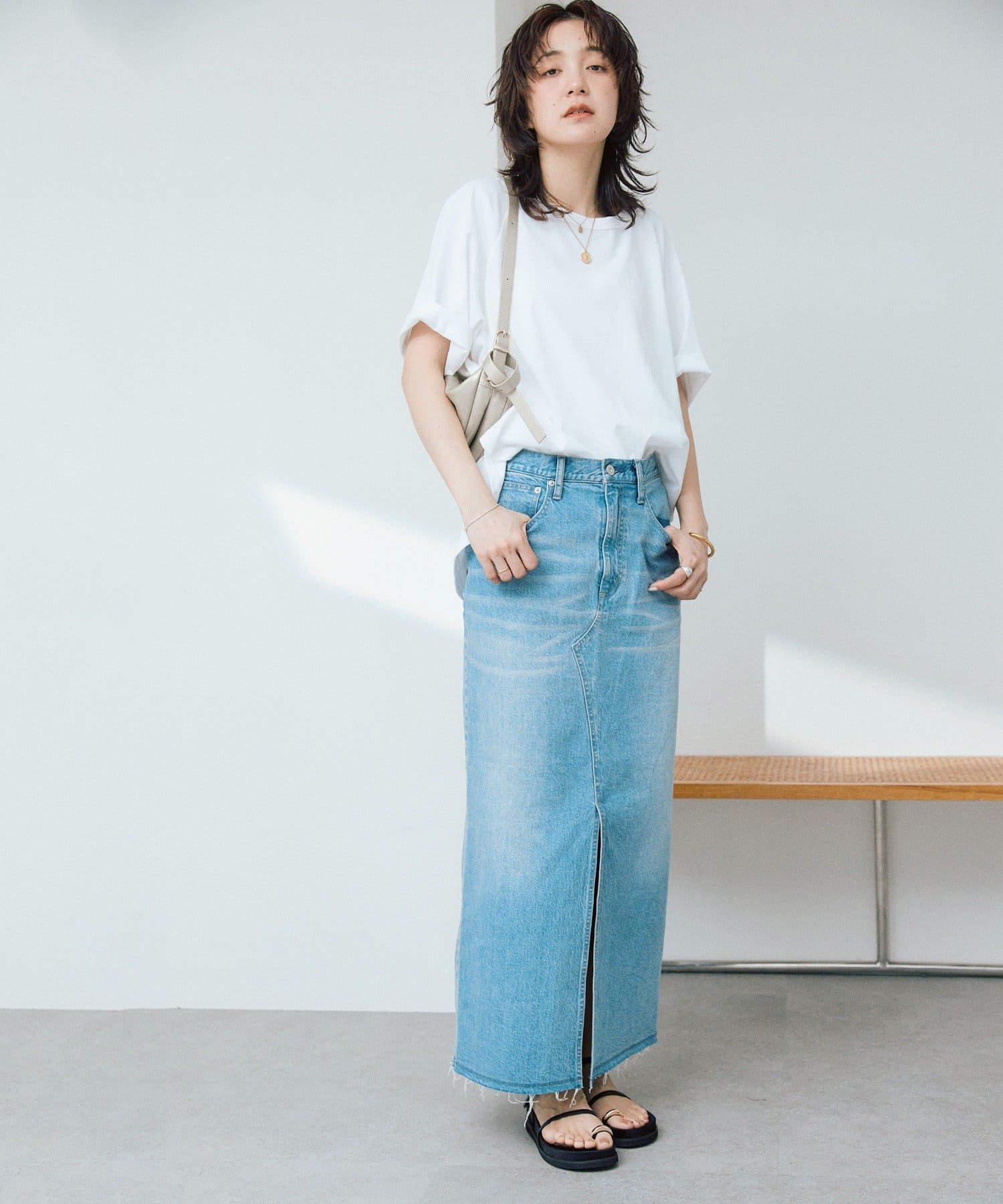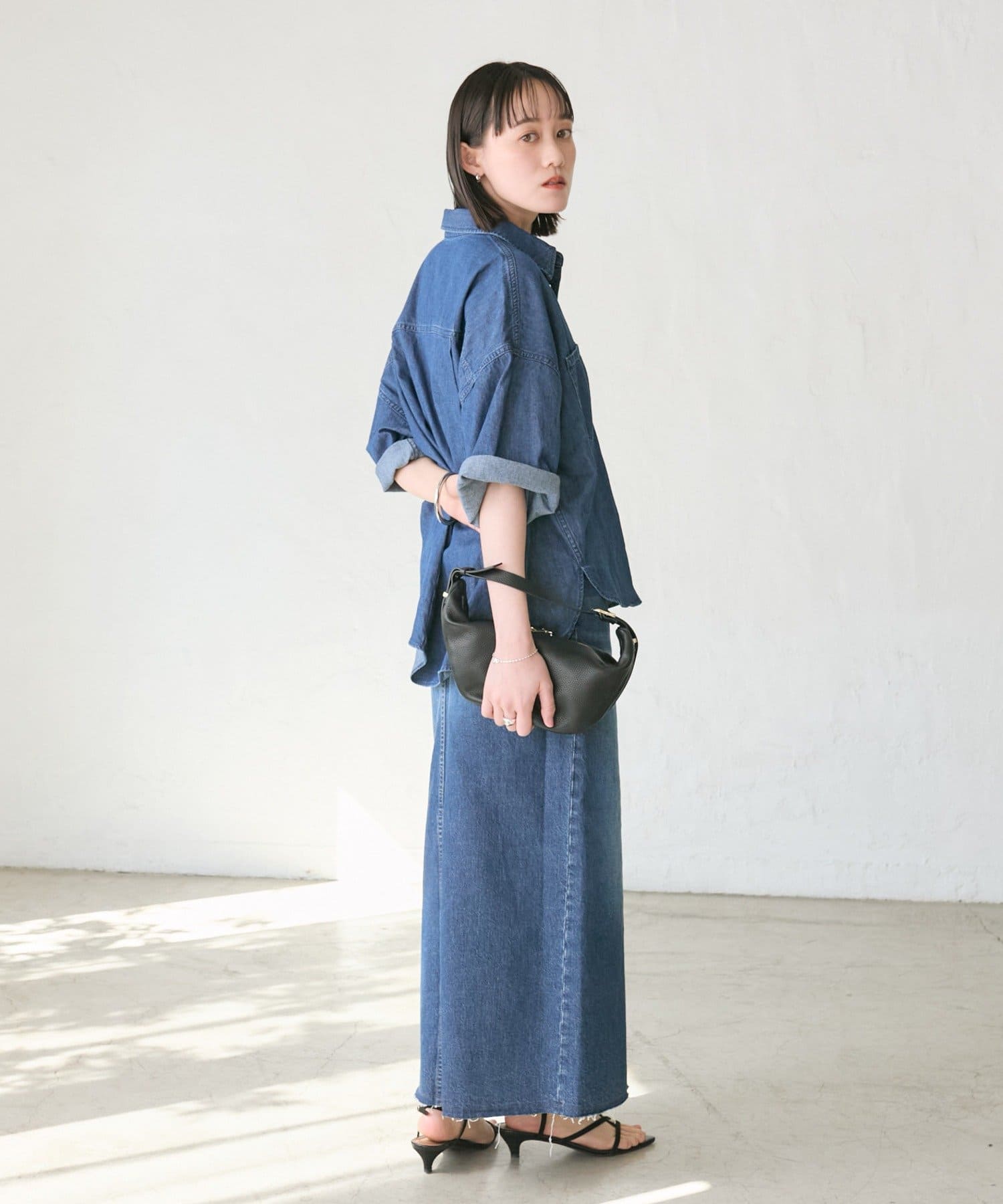 女性らしくすっきりと着こなせるデニムスカート