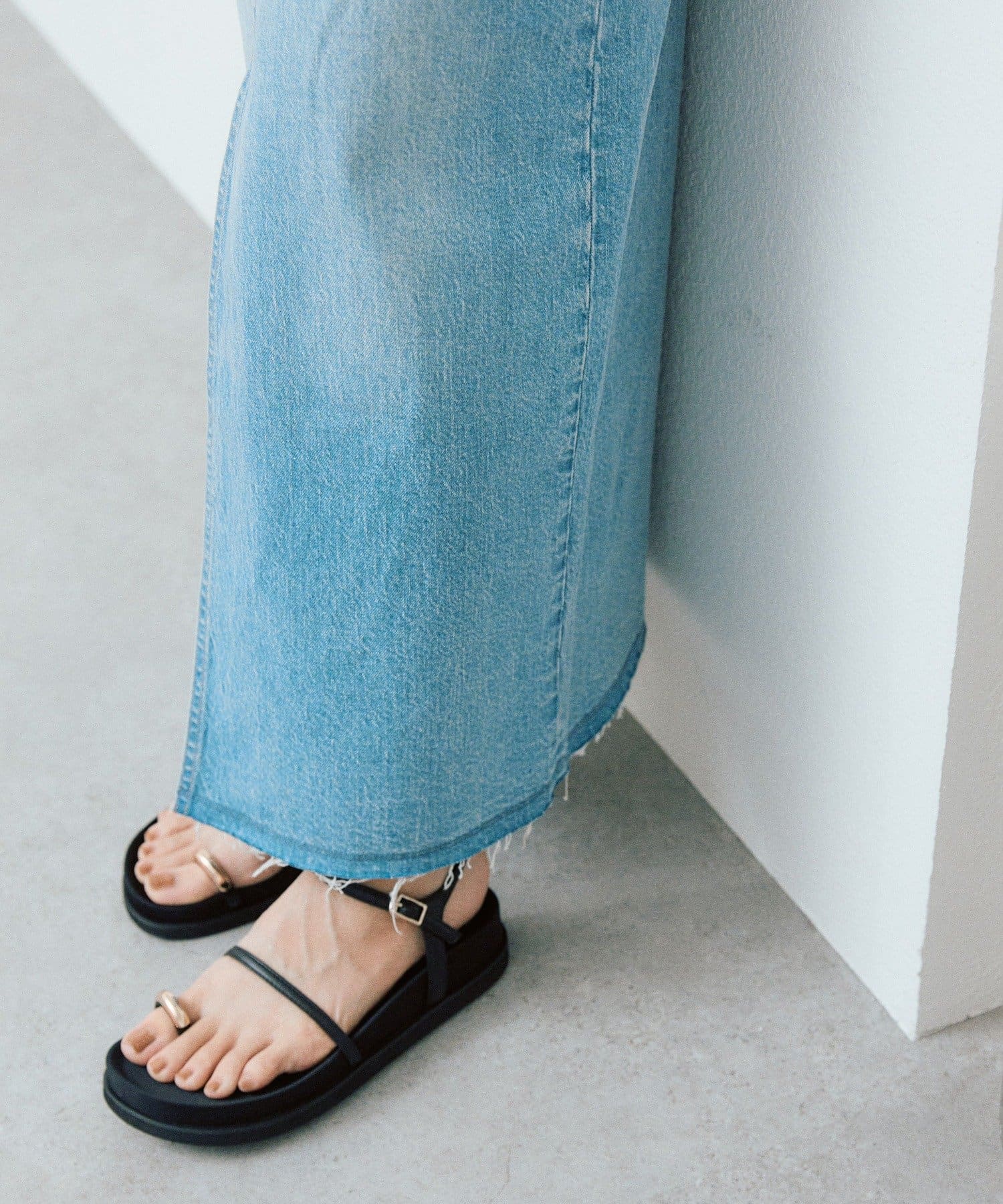 ・裾は切りっぱなしの使用で軽快な印象に